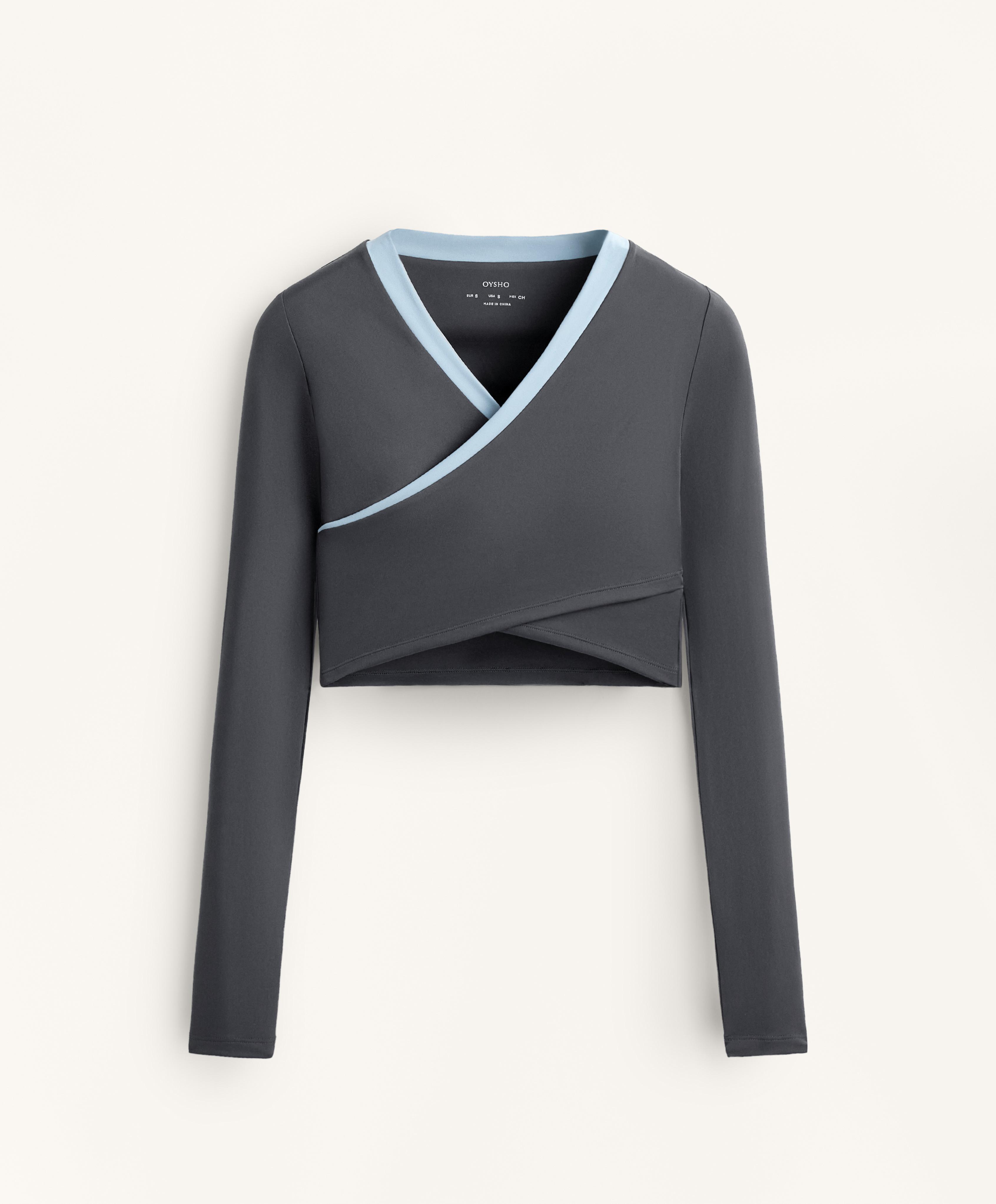 Oysho Топ с длинным рукавом и контрастными деталями, асфальтовый
