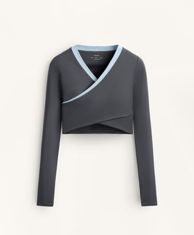 Tank top Comfortlux с длинным рукавом, перекрестным вырезом и встроенным бюстгальтером с легкими съемными чашками-подкладками. Контрастная ткань в области выреза. Воздухопроницаемая, высокопрочная и быстросохнущая ткань.