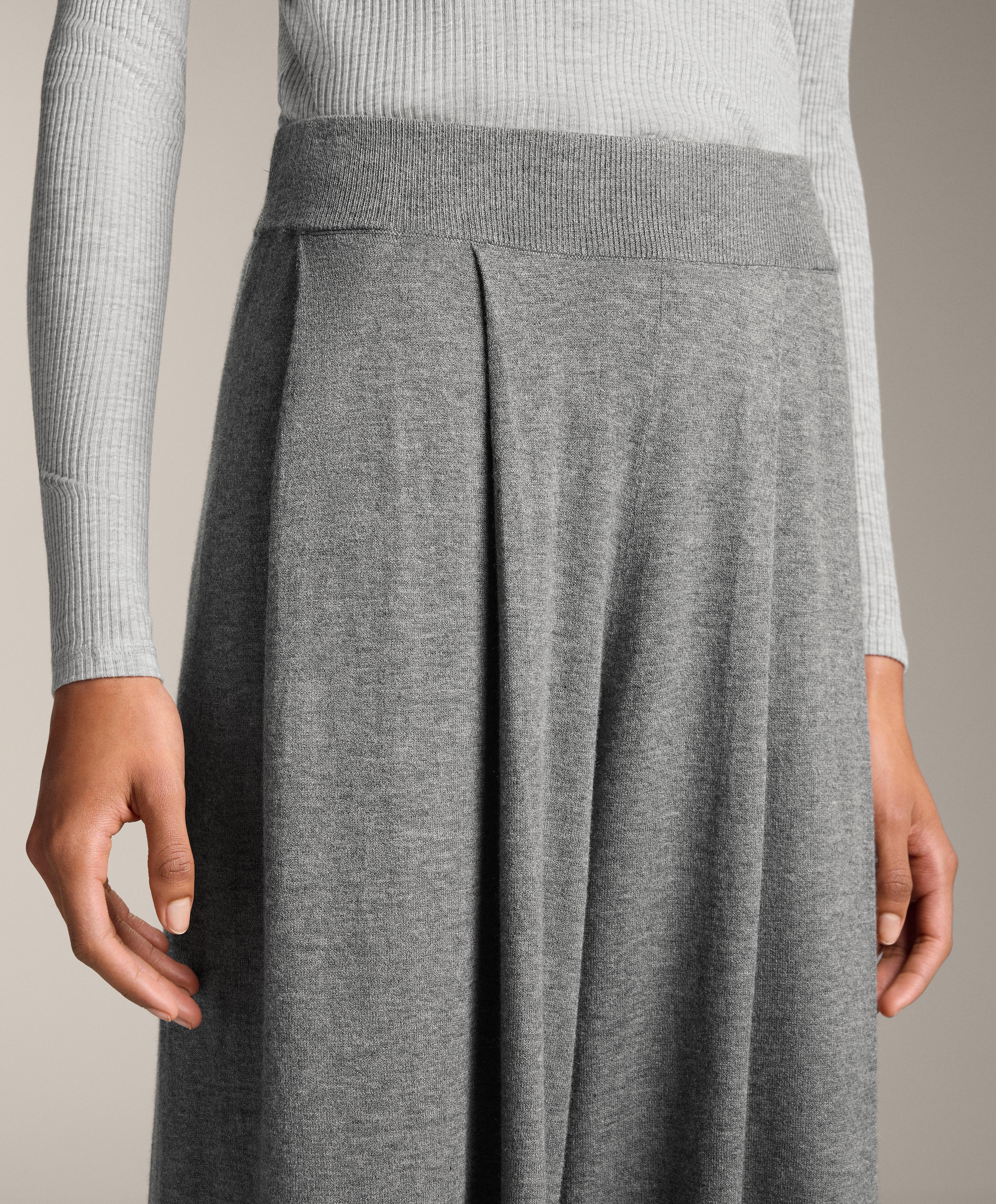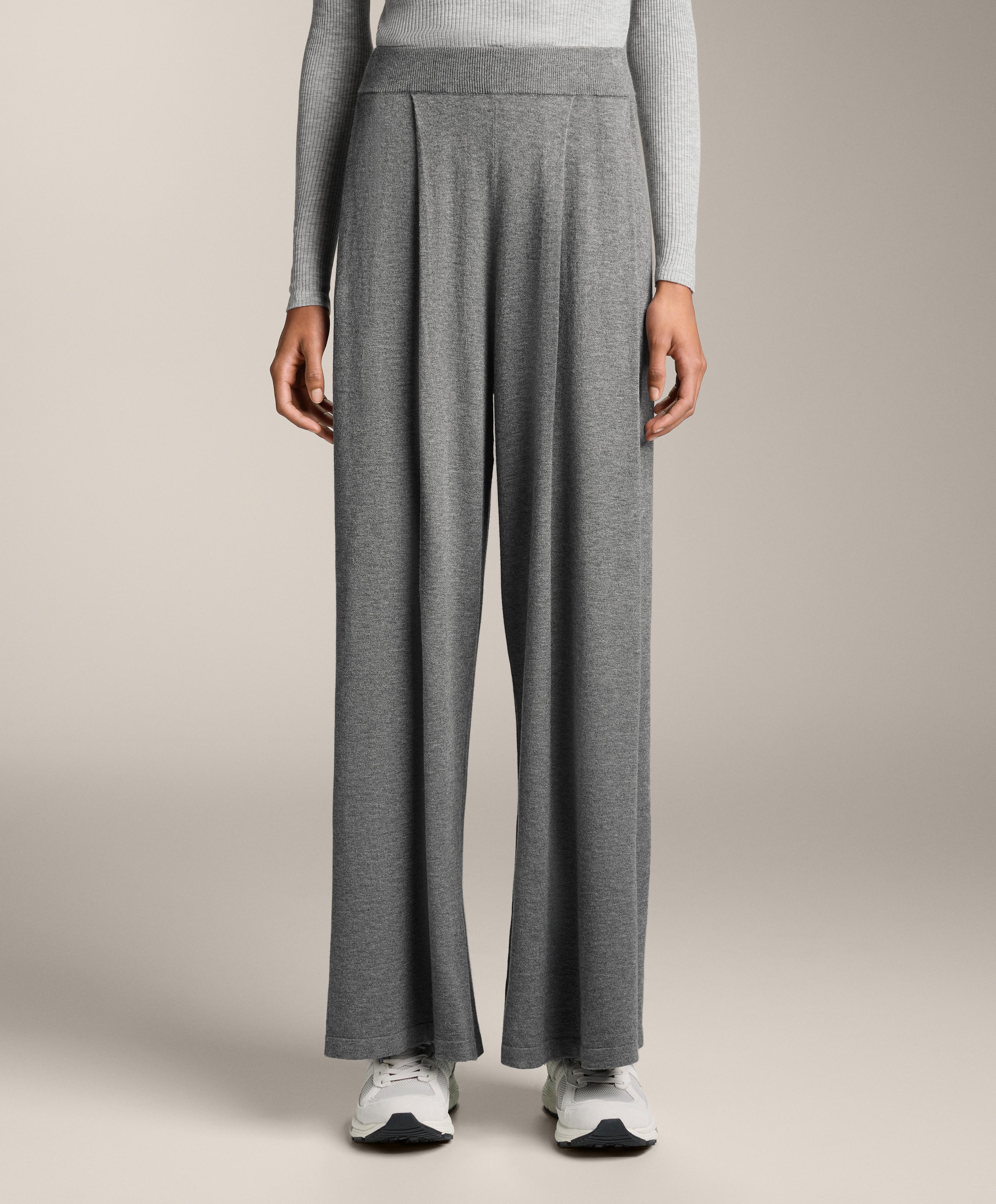 Широкие прямые трикотажные брюки с регулируемым поясом на резинке. Талия отделана резинкой.