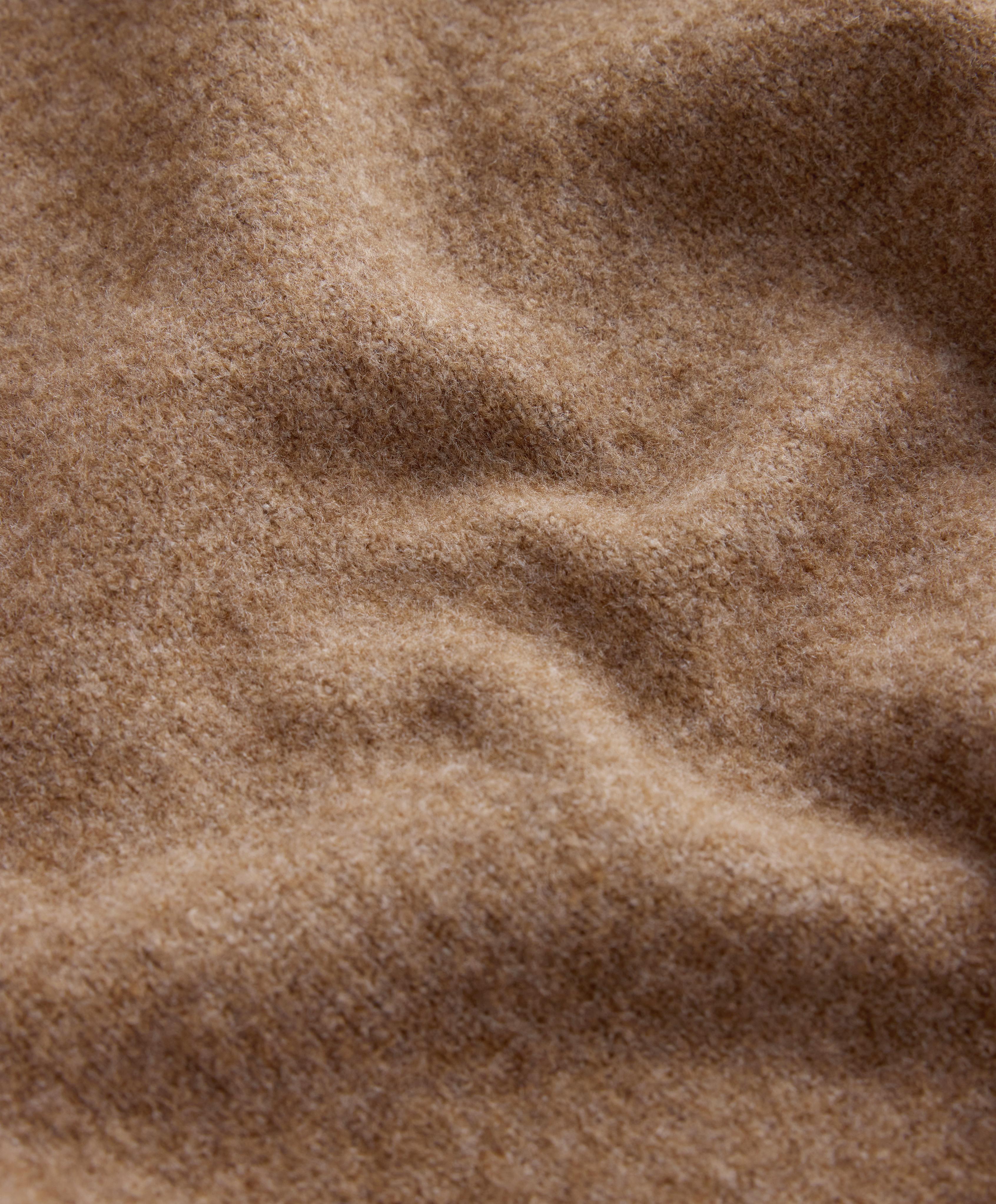 Джемпер свободного кроя с воротником-поло и резинкой на манжетах и подоле.