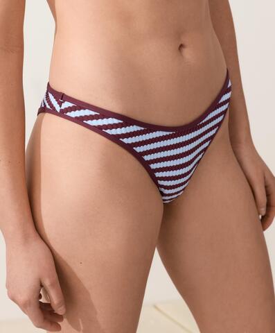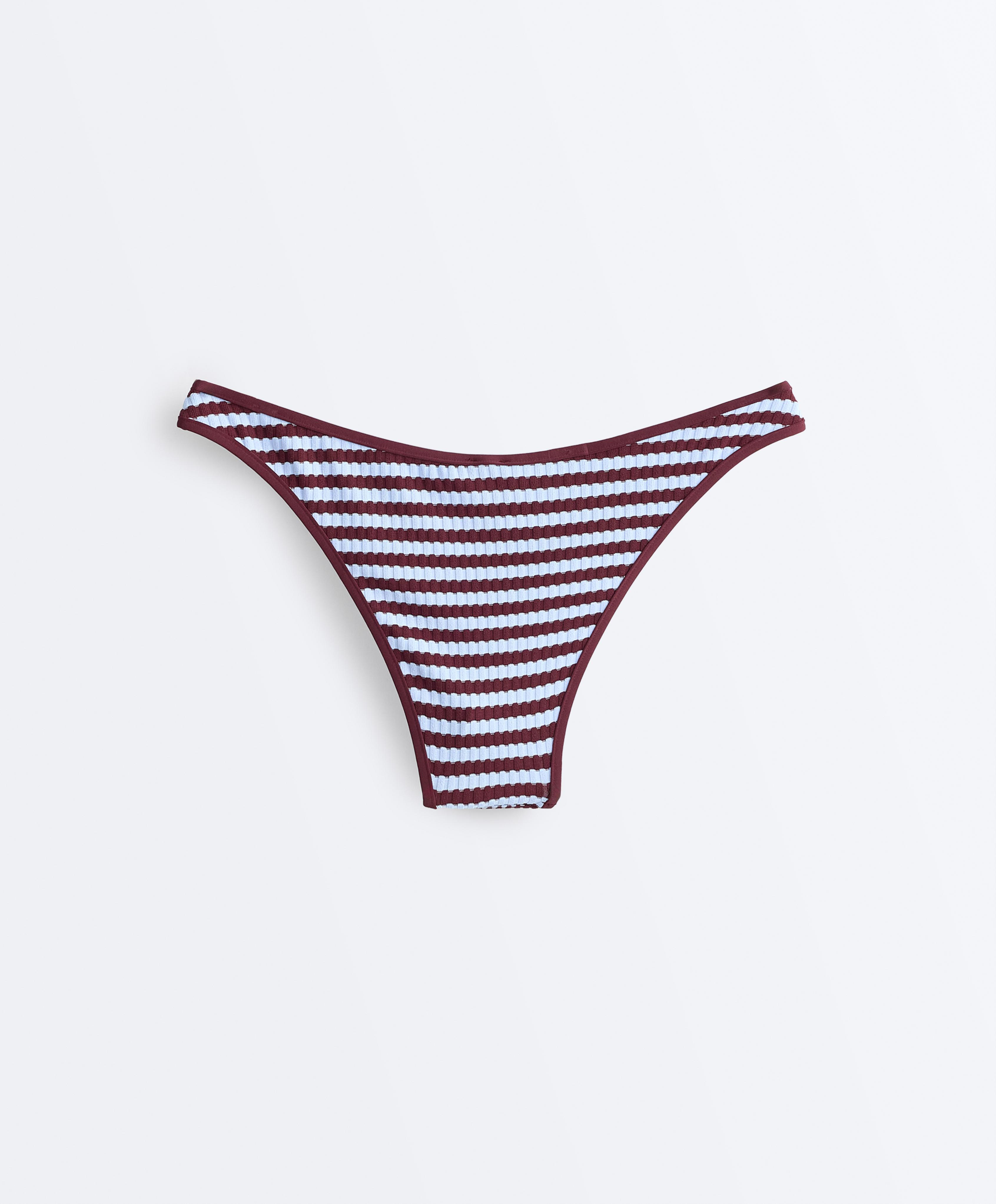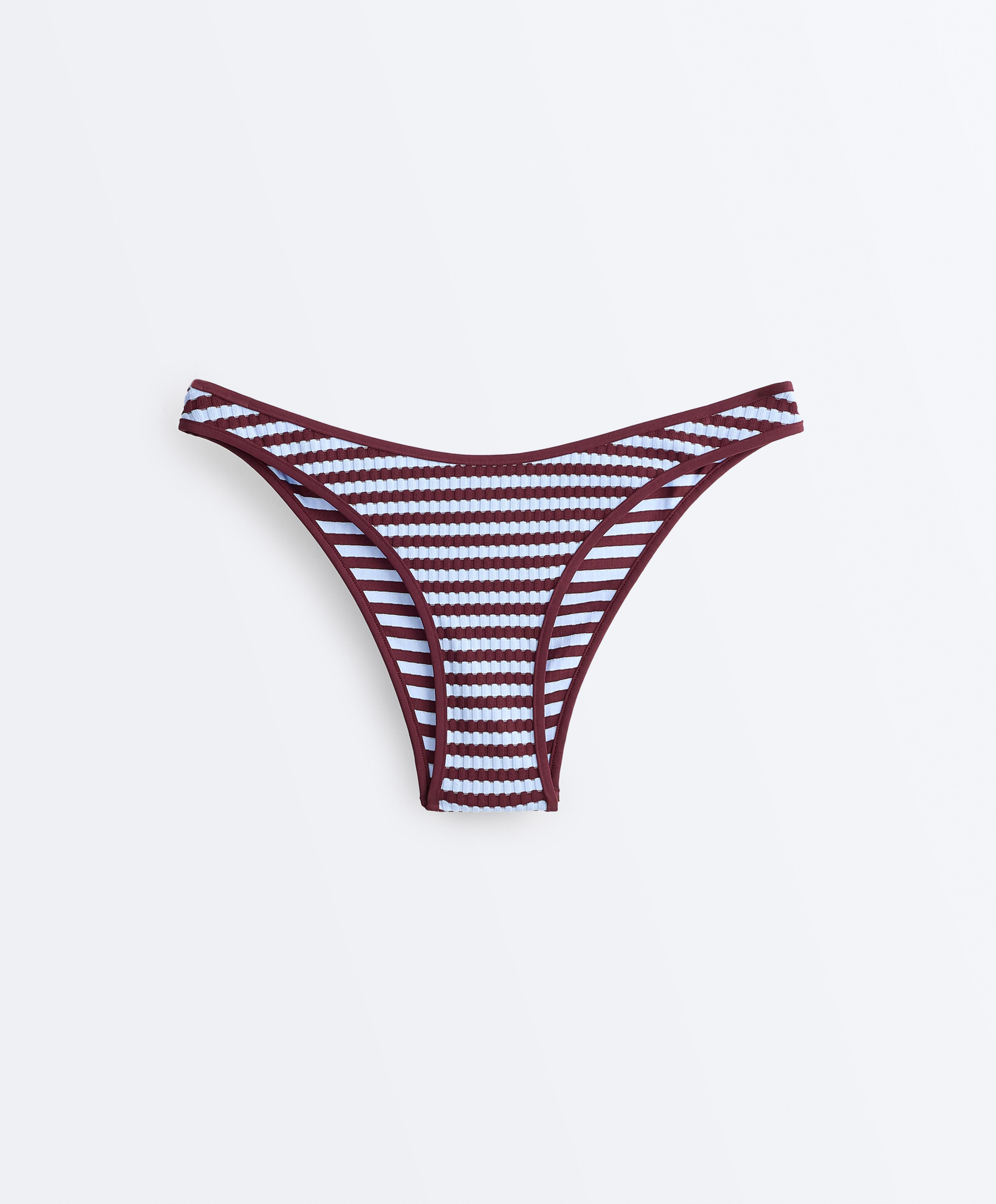 Трусики-бикини средней степени закрытости из фактурной полосатой ткани.
