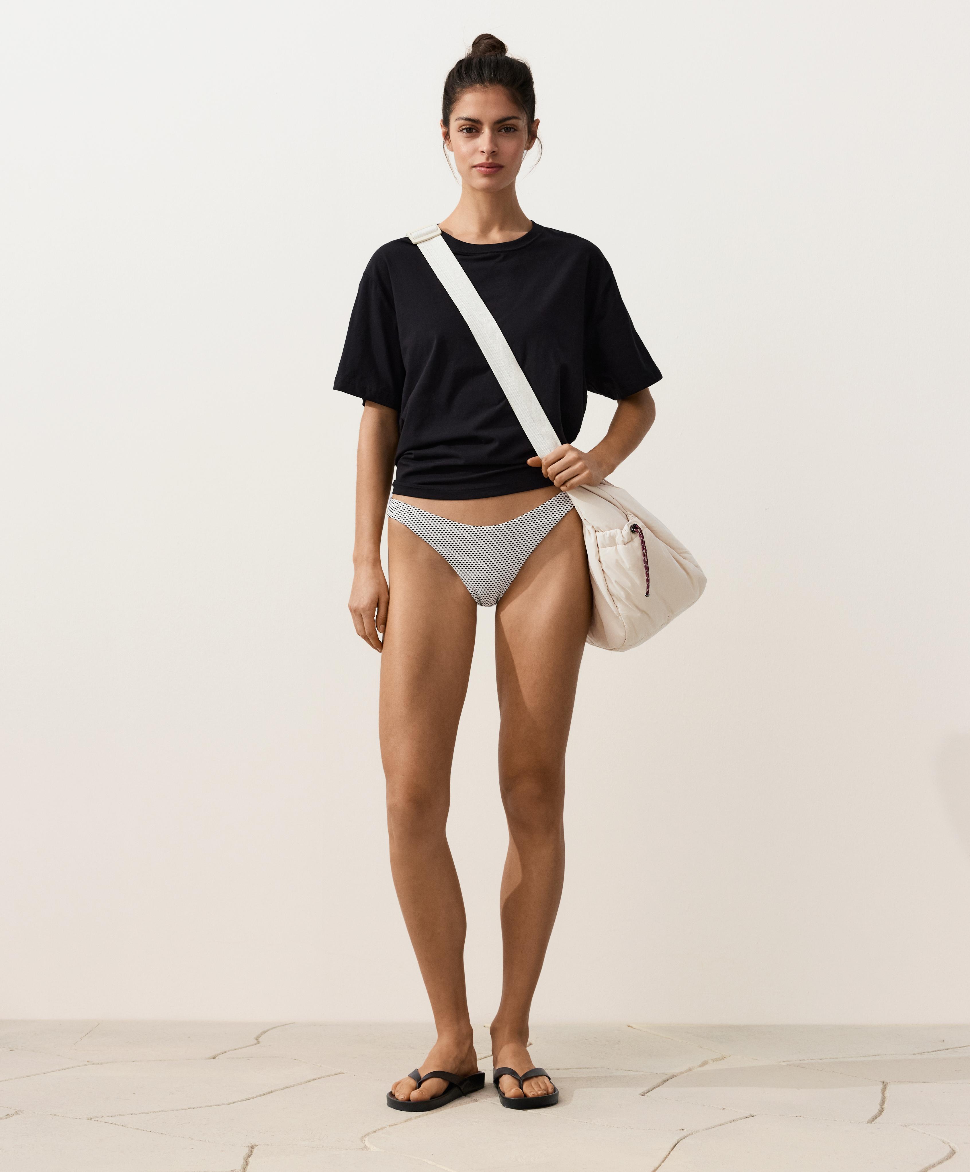 OYSHO Трусики-бикини с жаккардовым узором в горошек, U-образным вырезом, светлый экрю