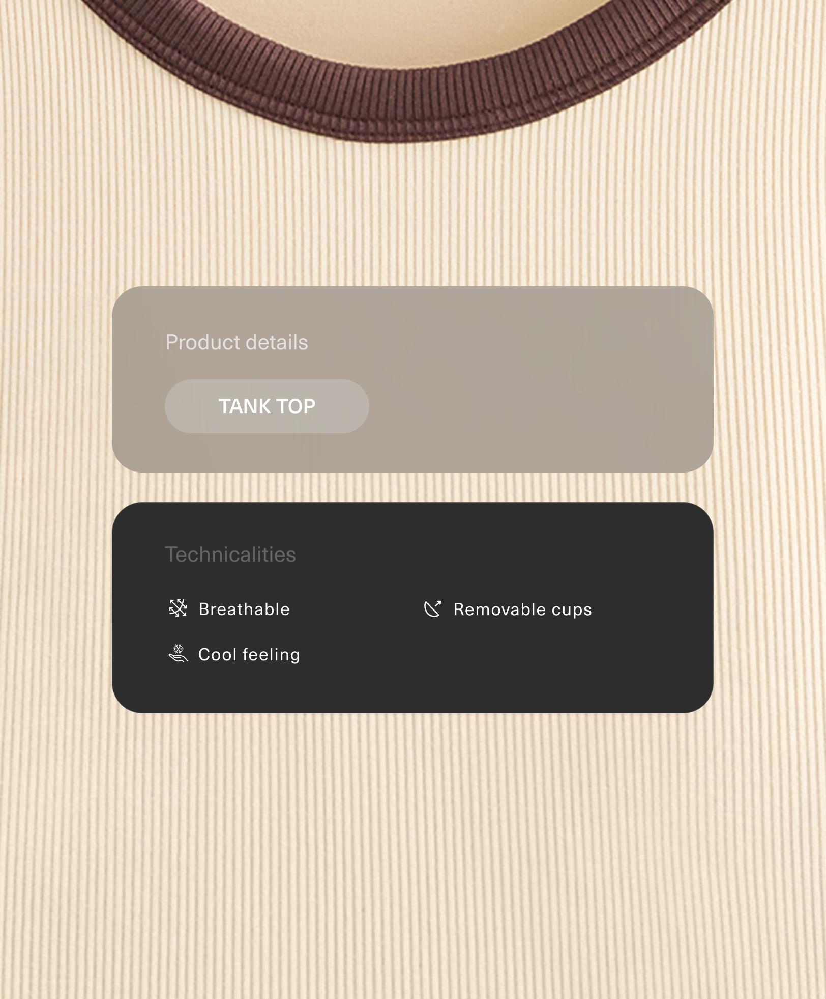 Удлиненный Tank top в рубчик со встроенным бюстгальтером и съемными чашками с легкой подкладкой. Воздухопроницаемая ткань из смесового модала с прохладным прикосновением.