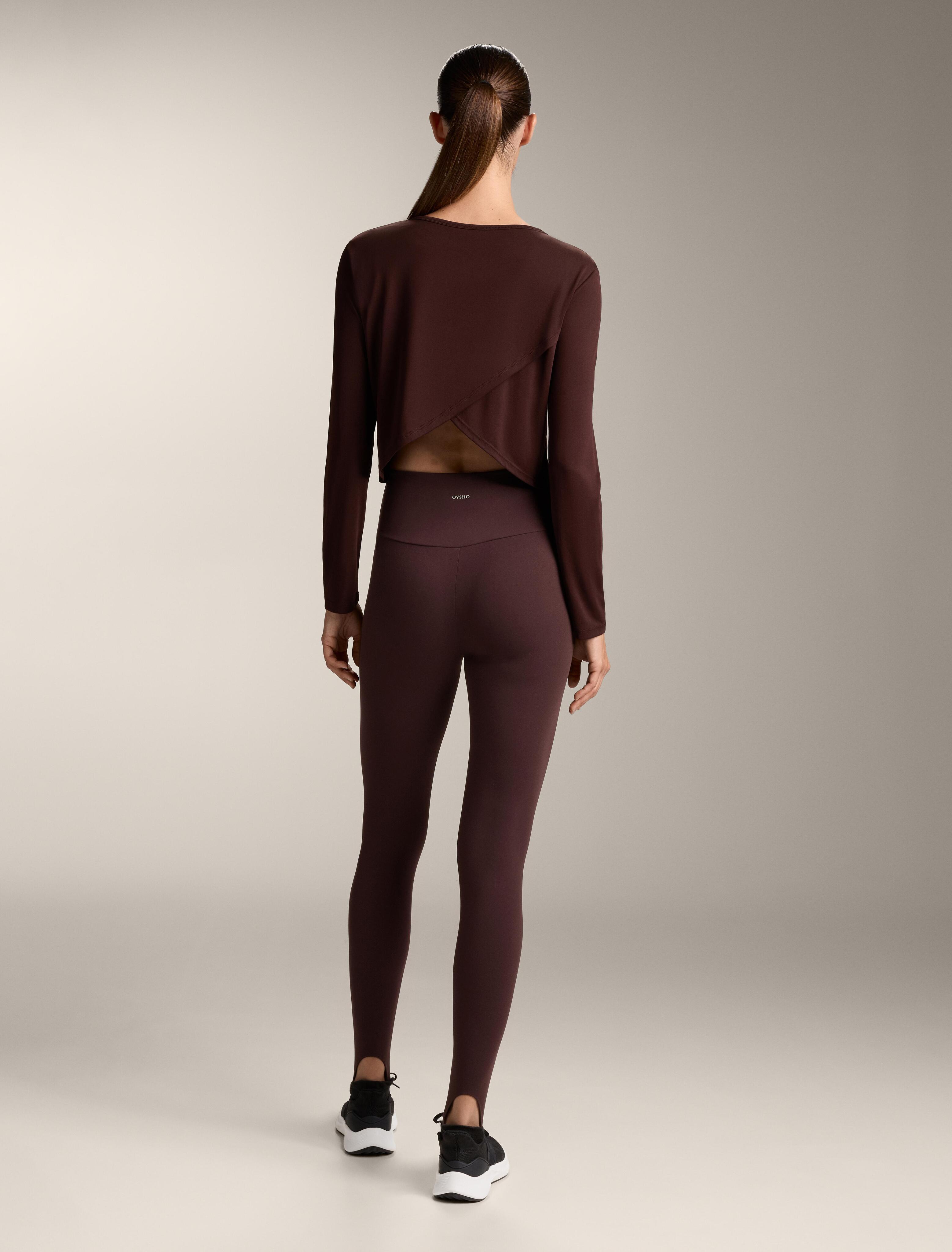 Oysho Укороченная футболка с перекрестной спинкой, шоколадный