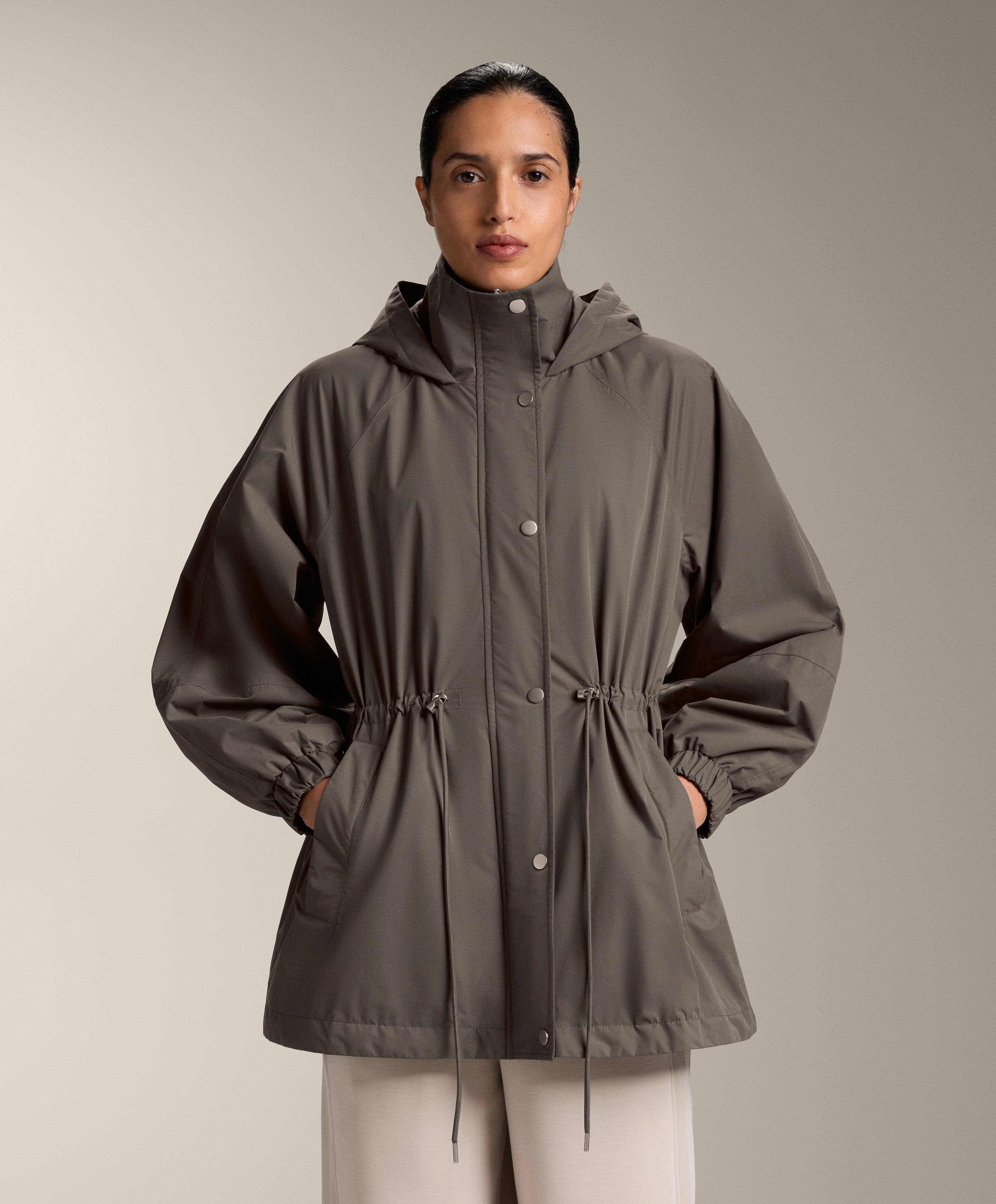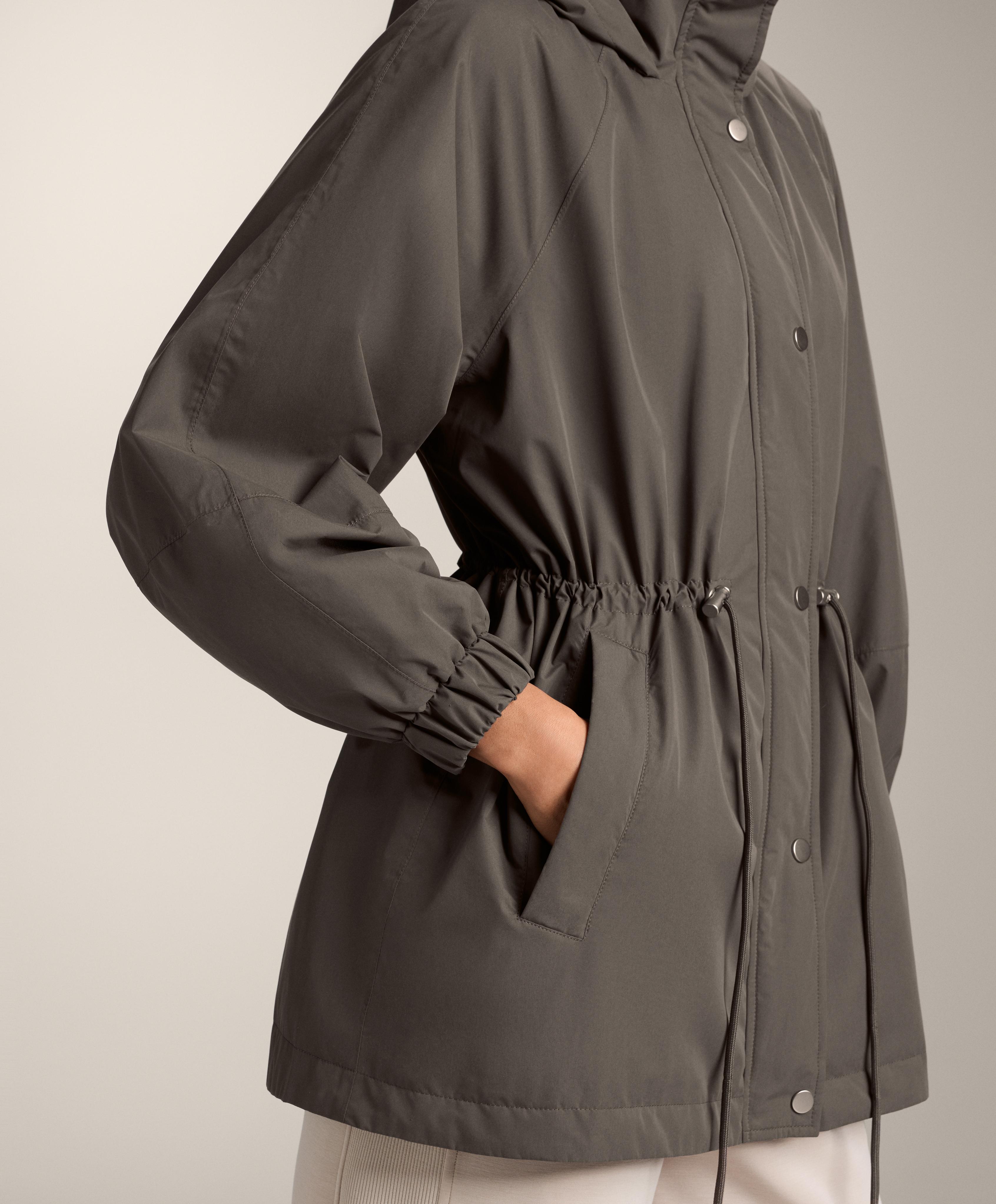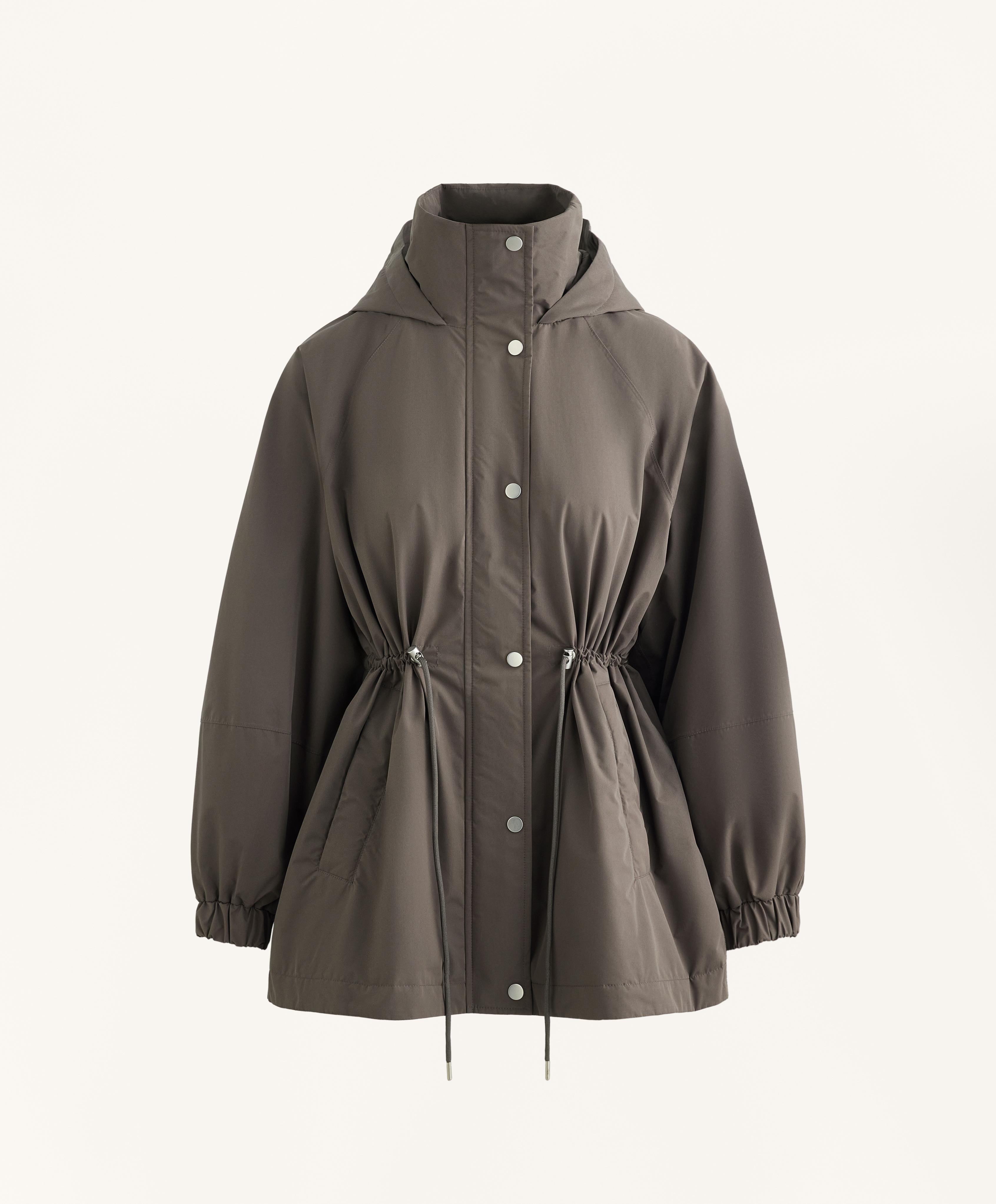 Застежка спереди на кнопки и регулировка на кулиске по талии. Высокий воротник с капюшоном. Боковые карманы с начесом внутри. Водонепроницаемая и ветрозащитная ткань с термозапаянными швами.