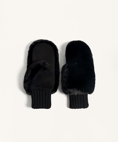 Oysho Варежки из искусственного меха с эластичными манжетами, черный