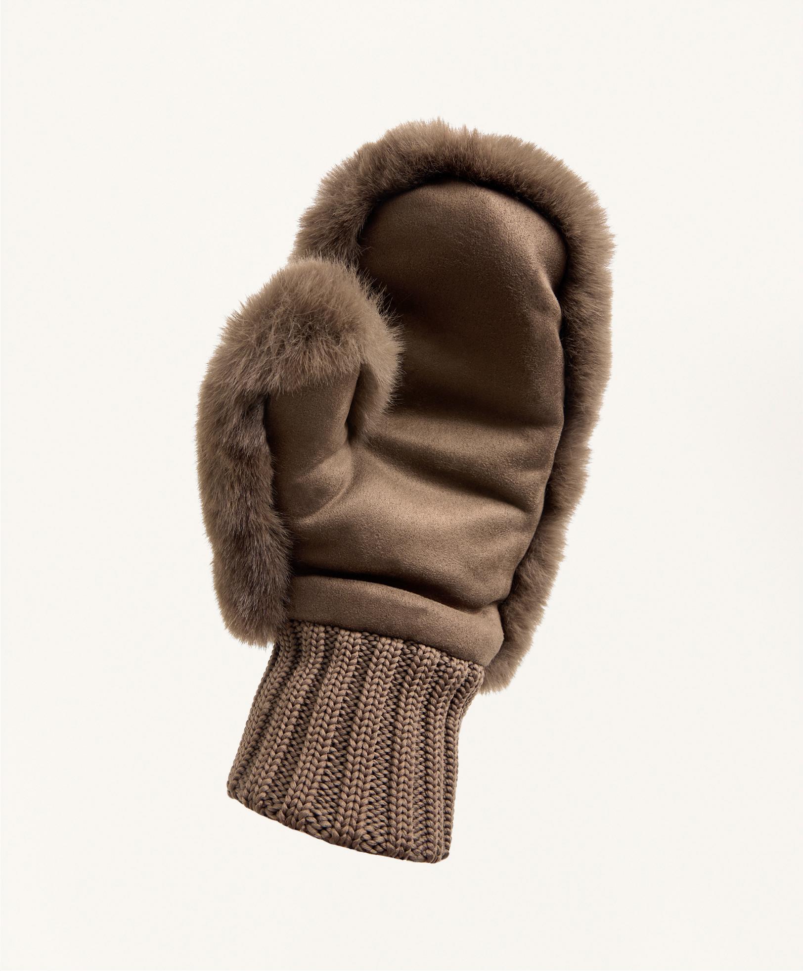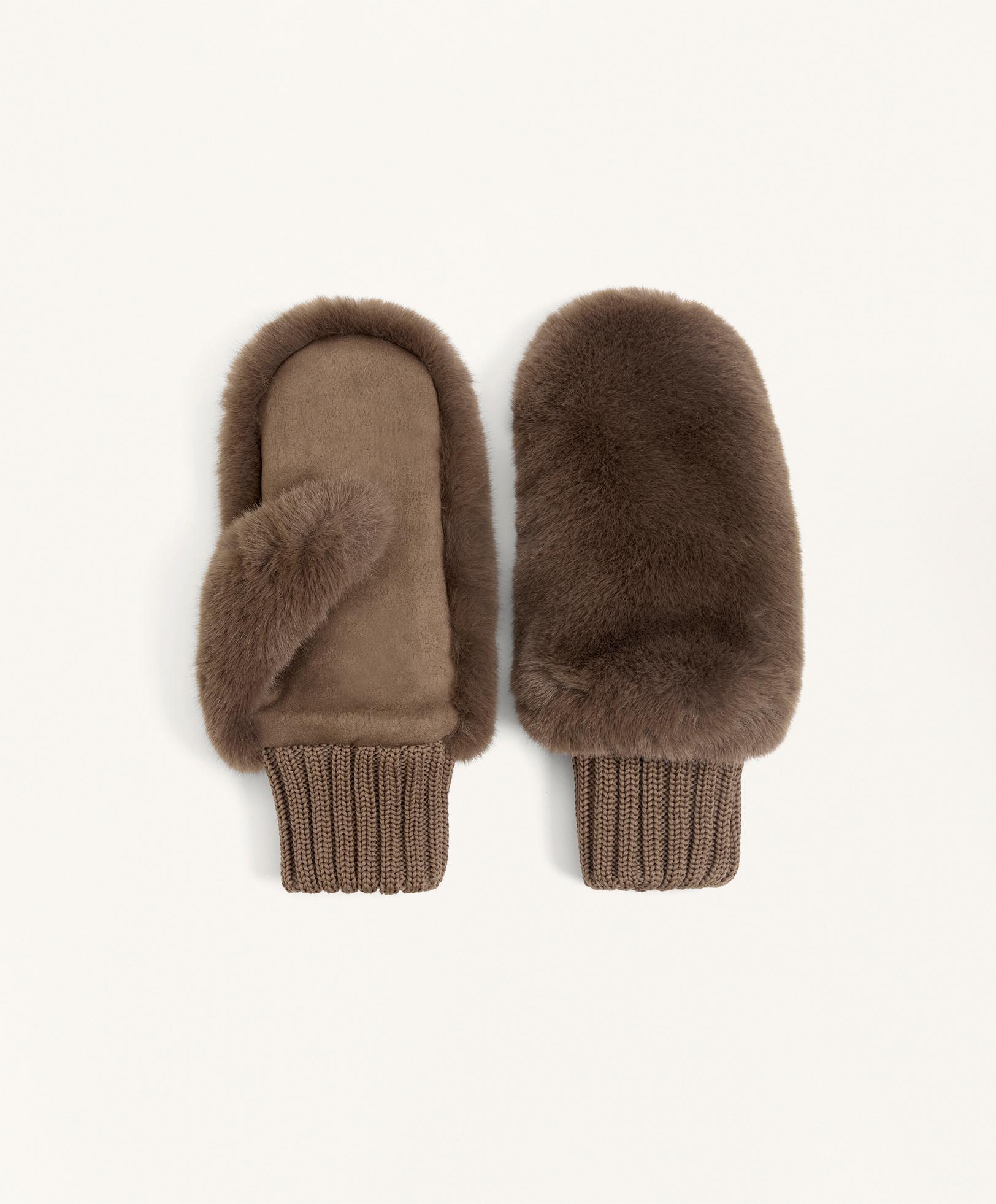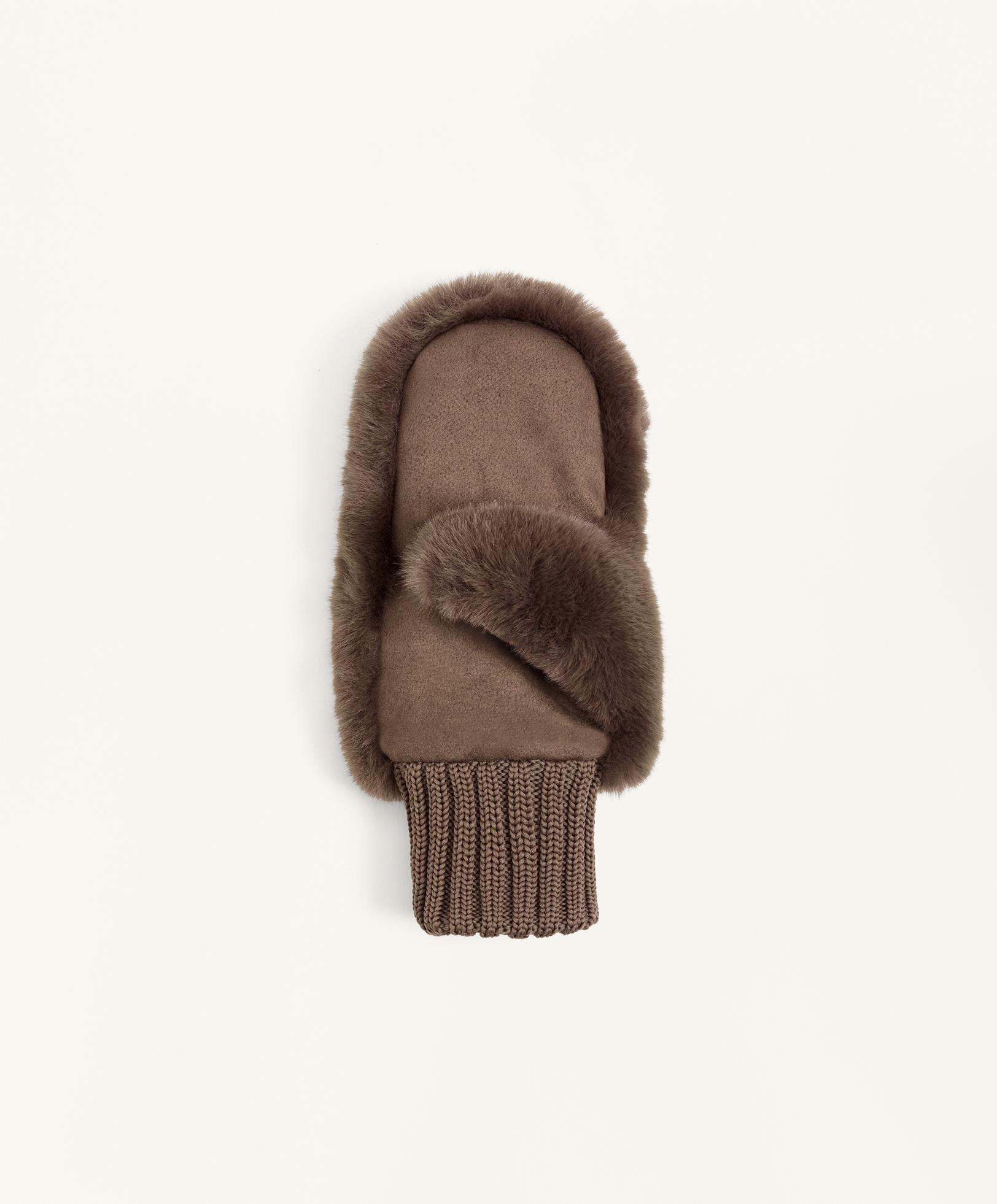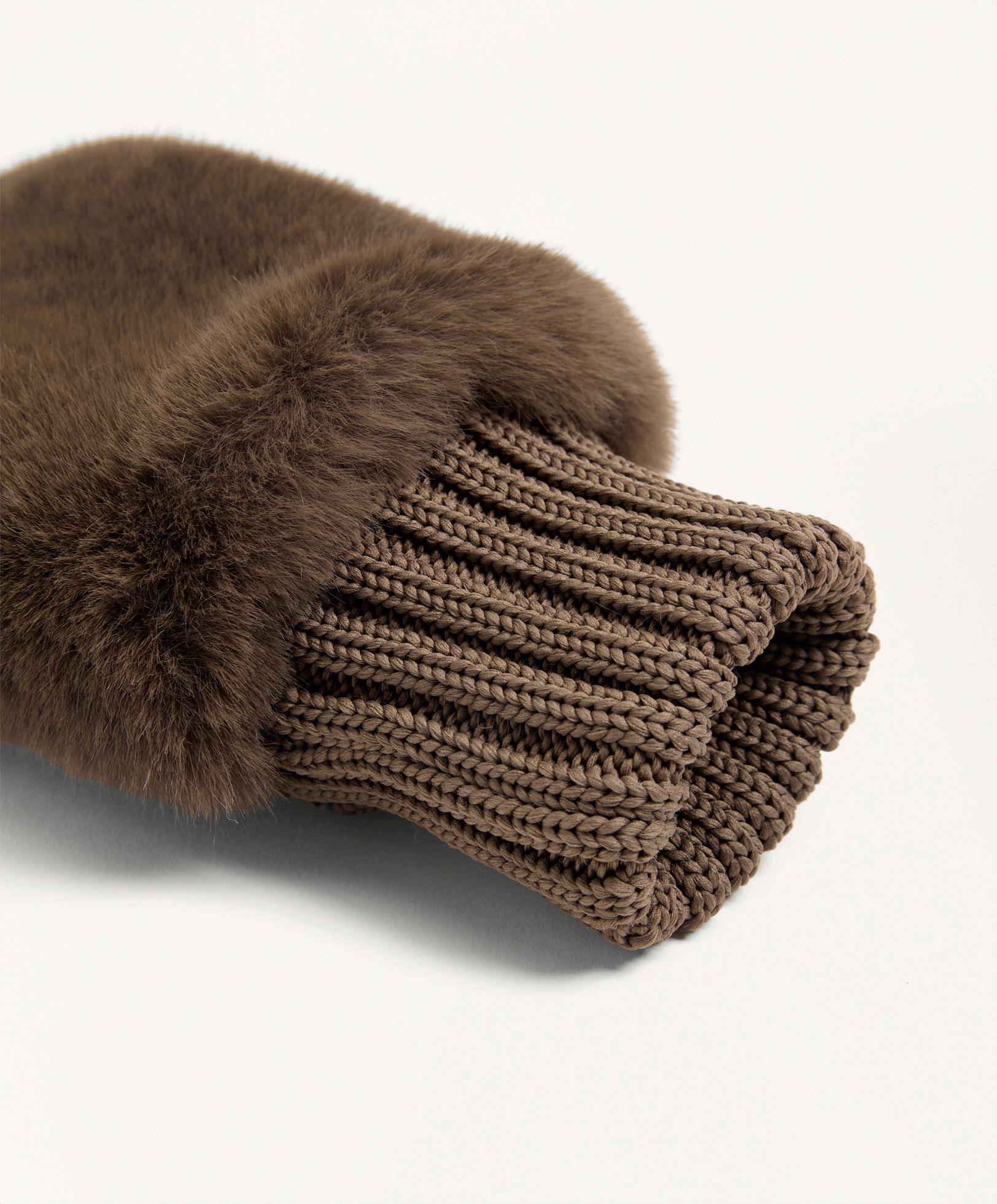 Oysho Варежки из искусственного меха с эластичными манжетами, коричневый
