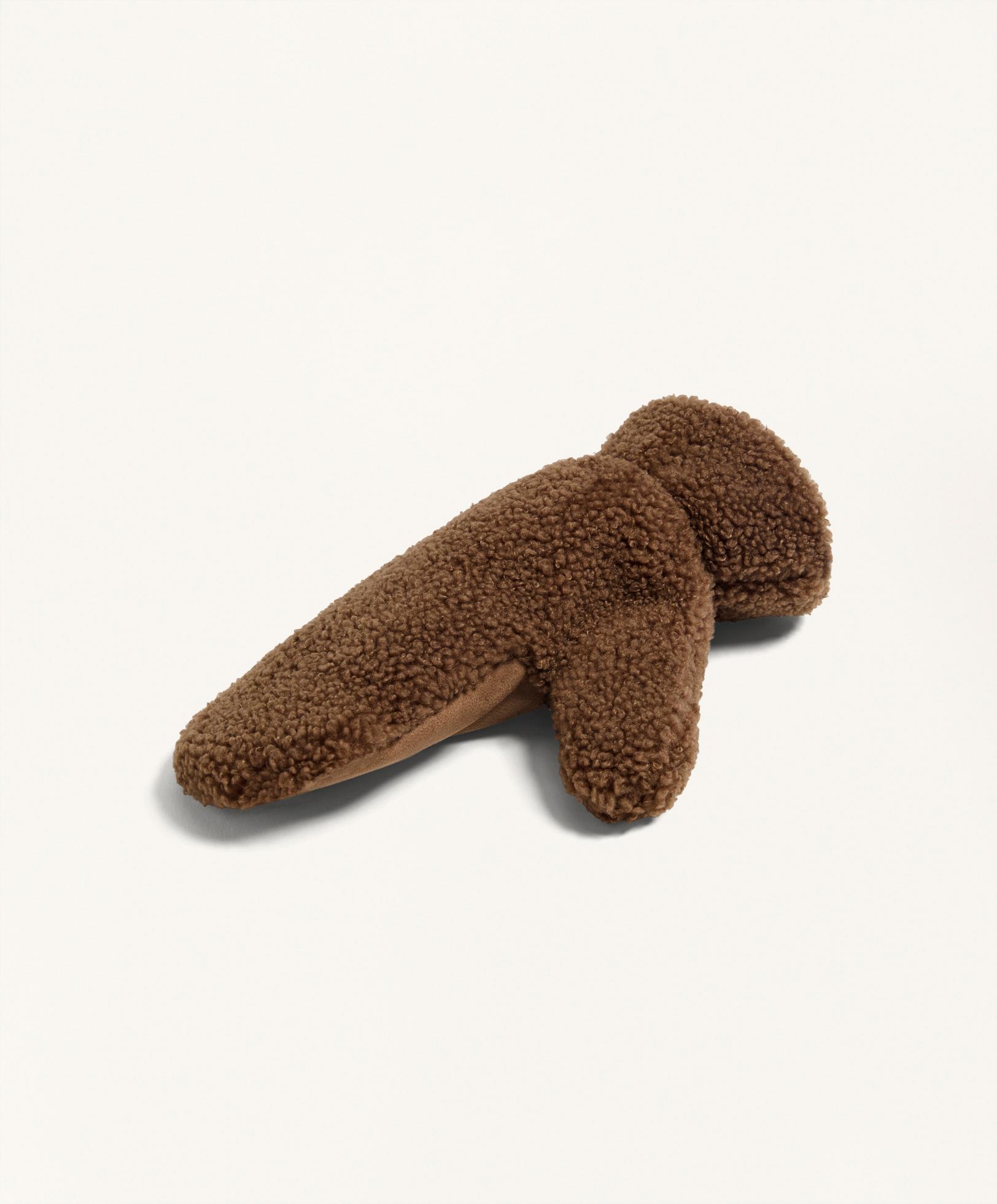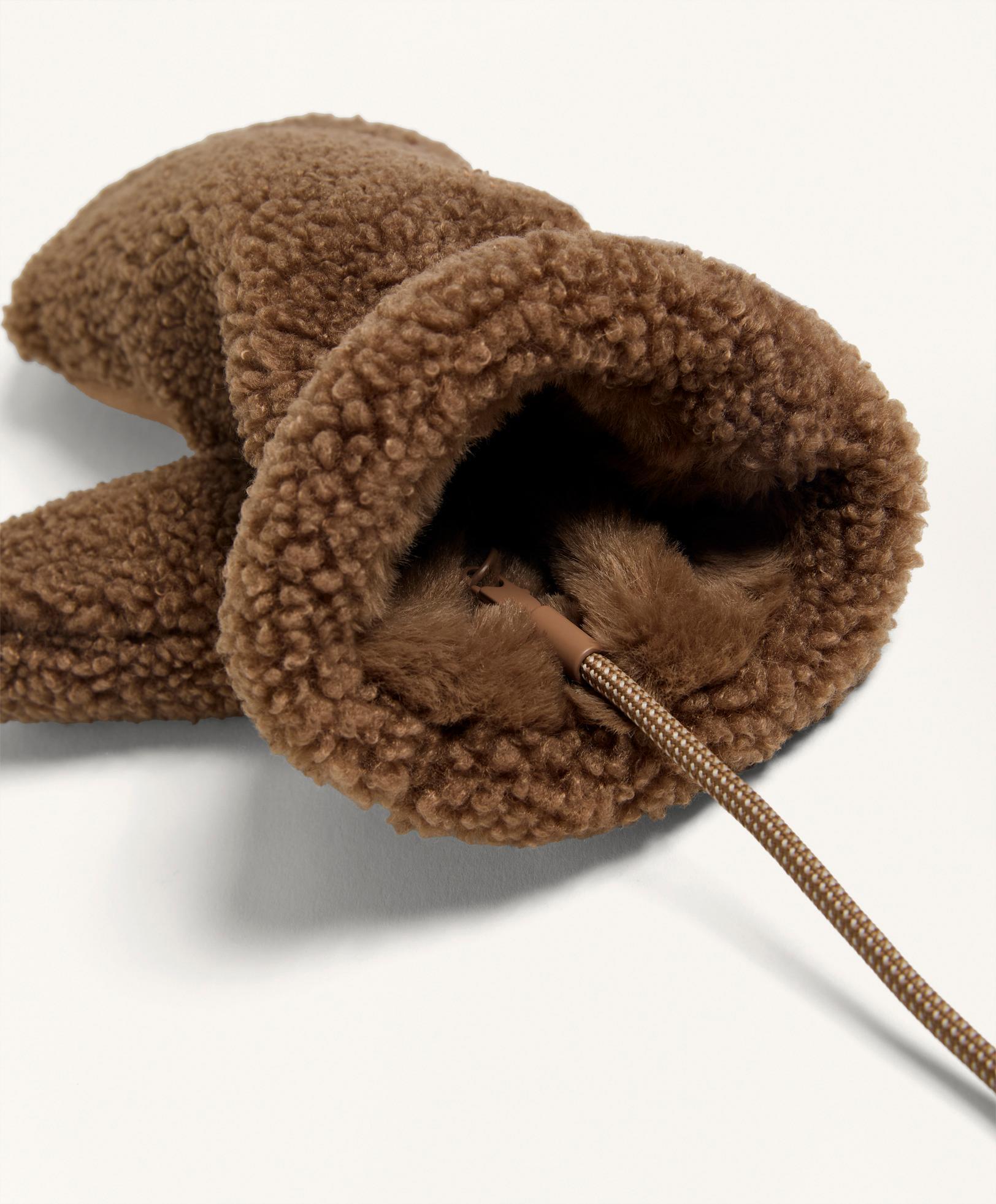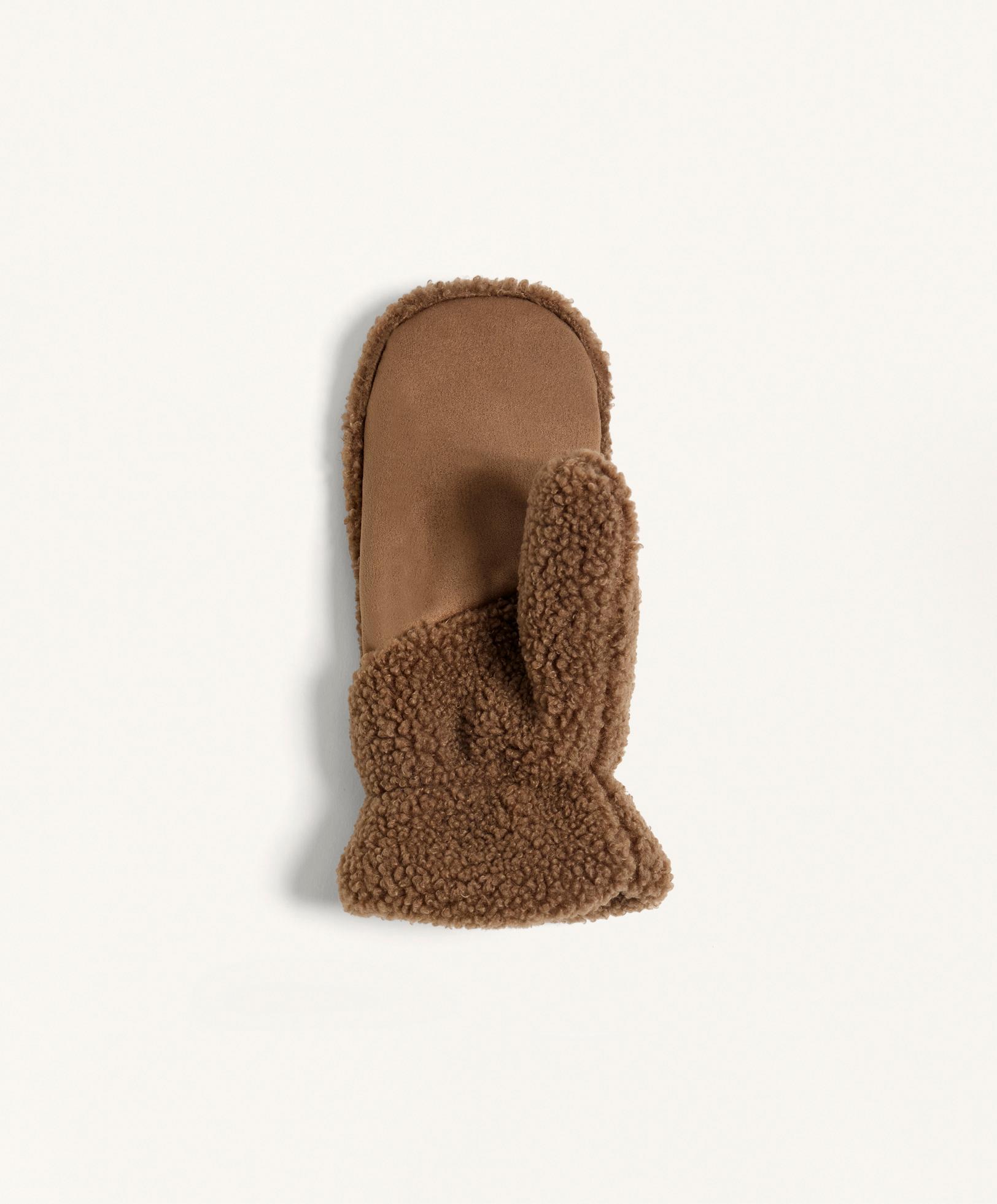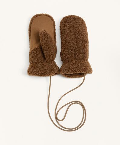 Oysho Варежки из искусственной овчины на шнурке, коричневый