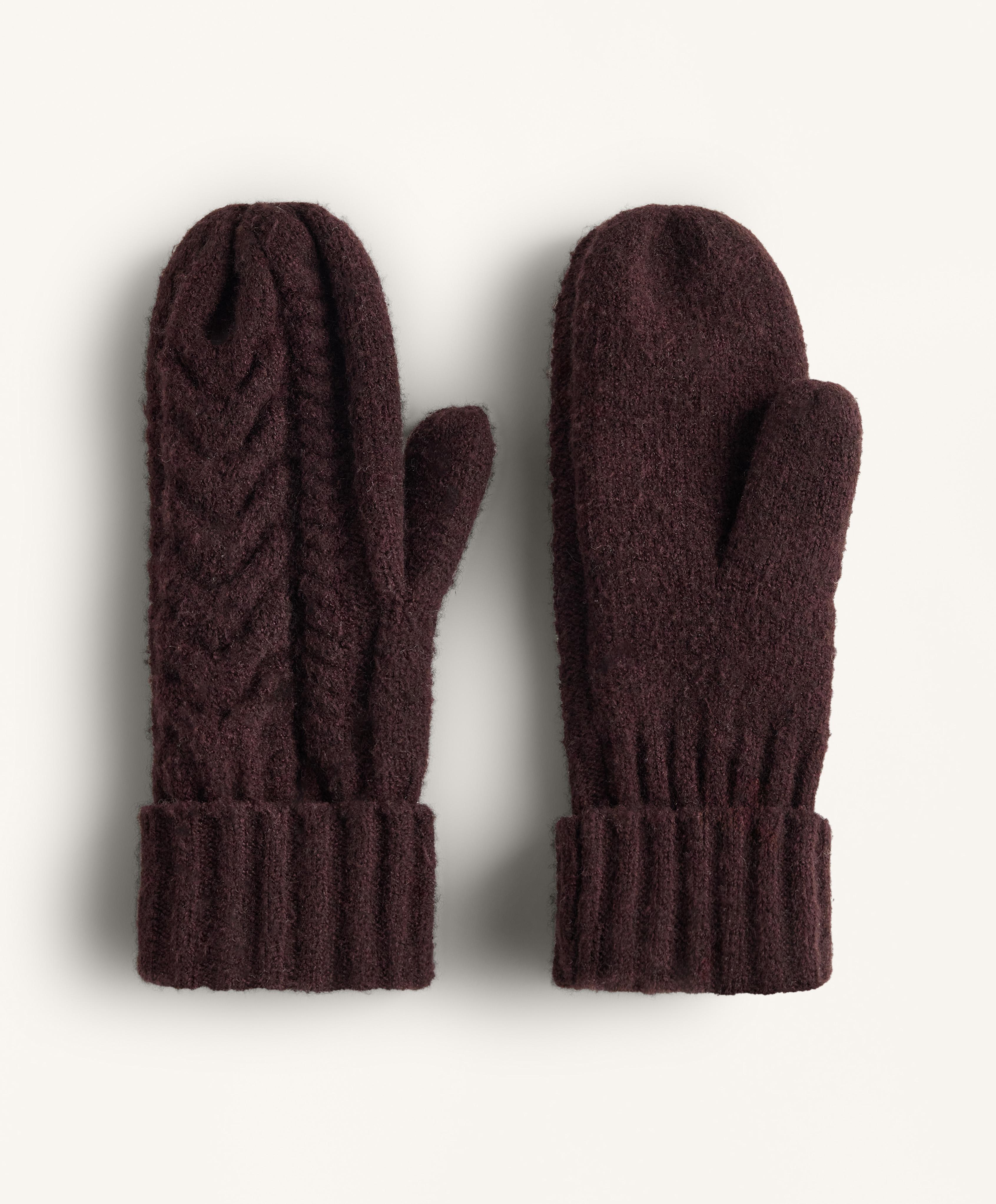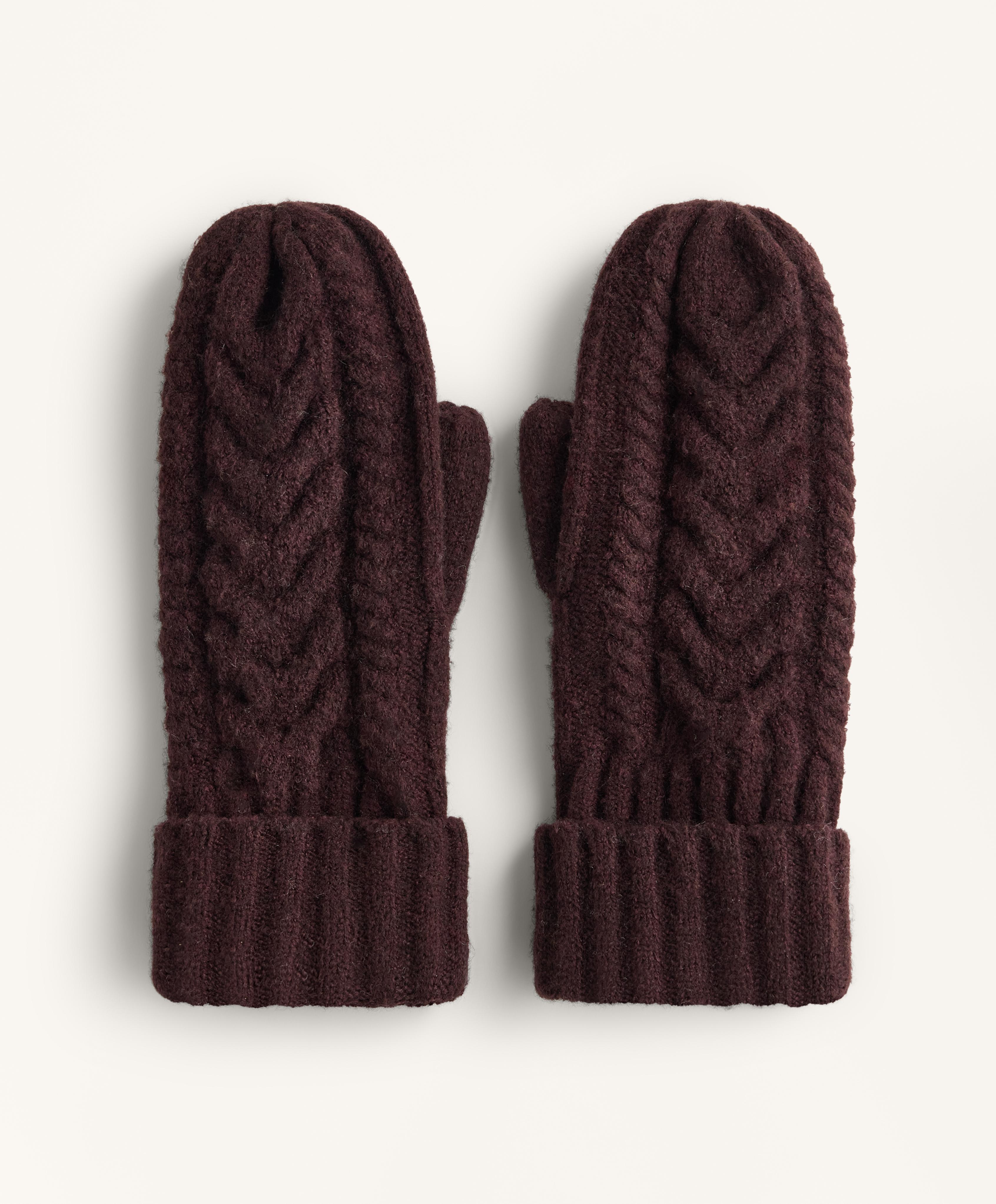 Вязаные варежки с аранским узором и отворотом. Состав: 5% кашемира и 5% шерсти.