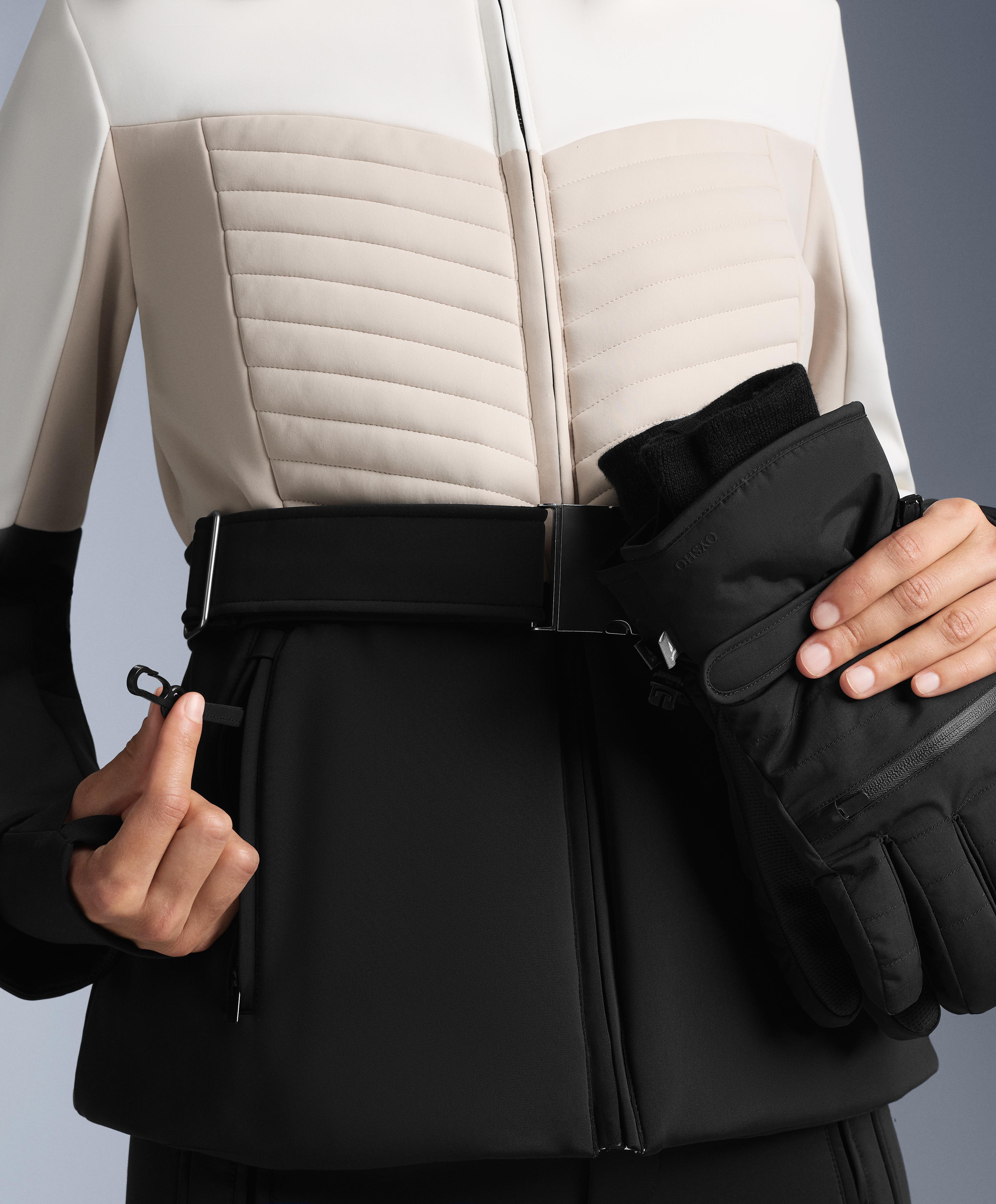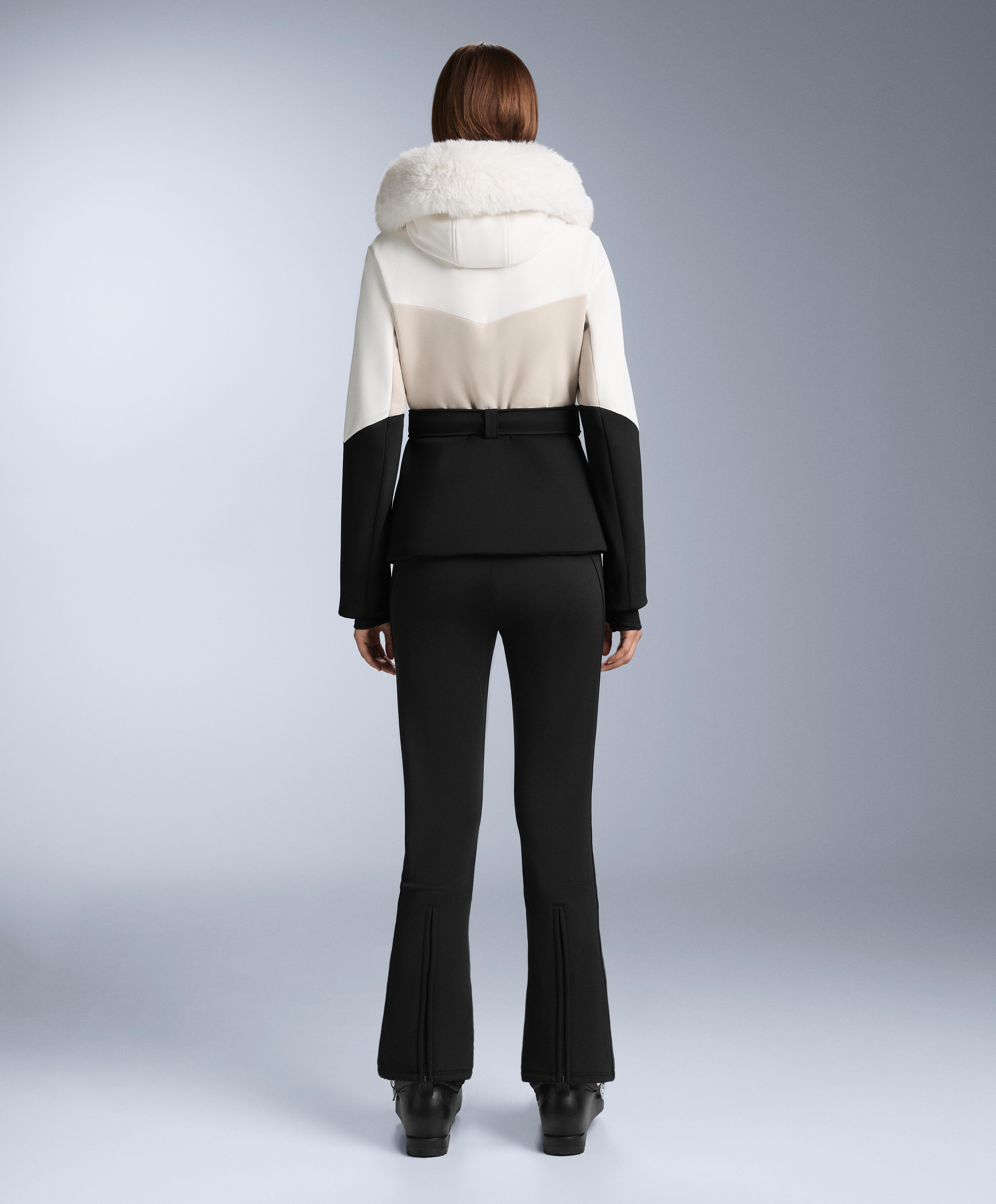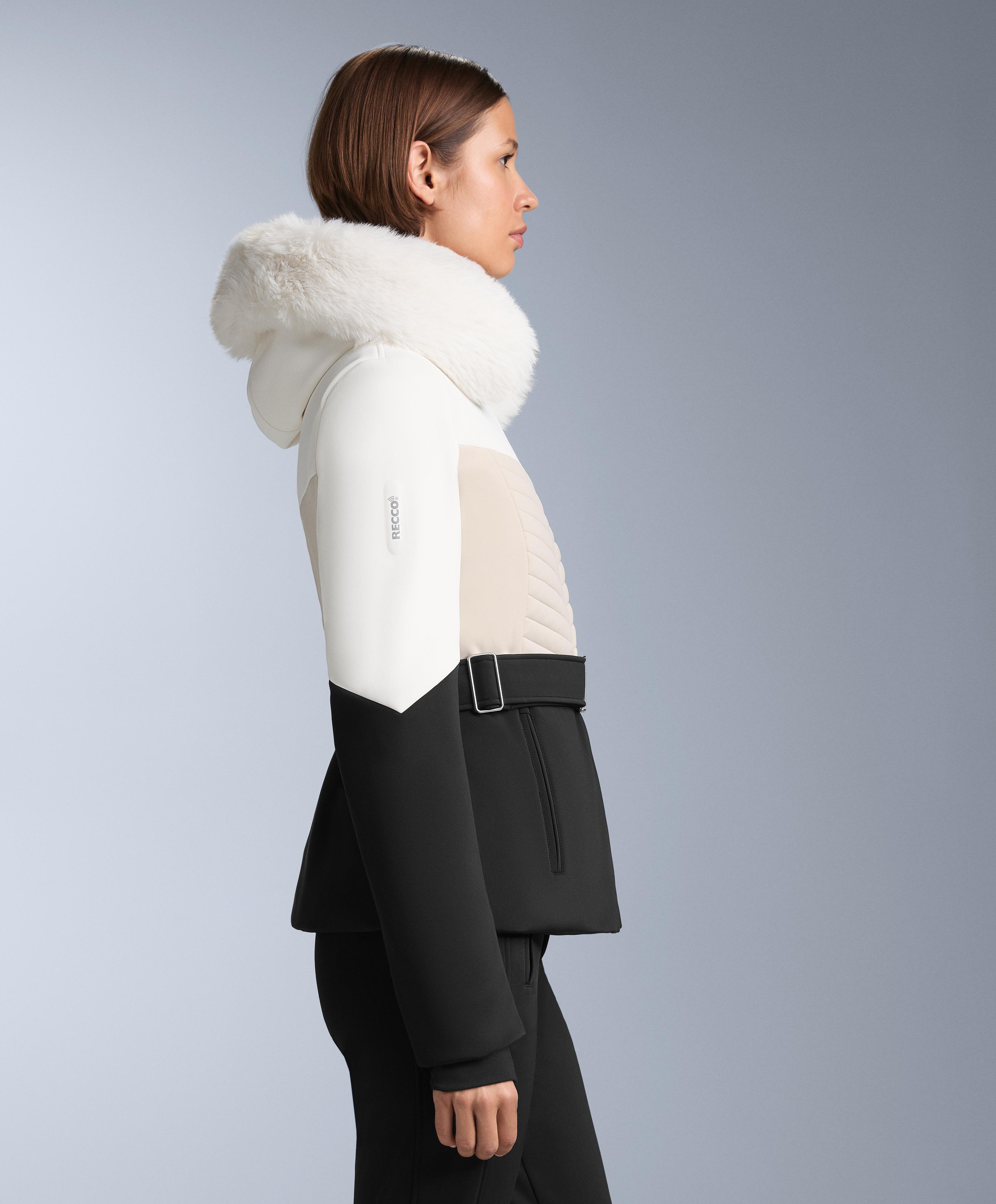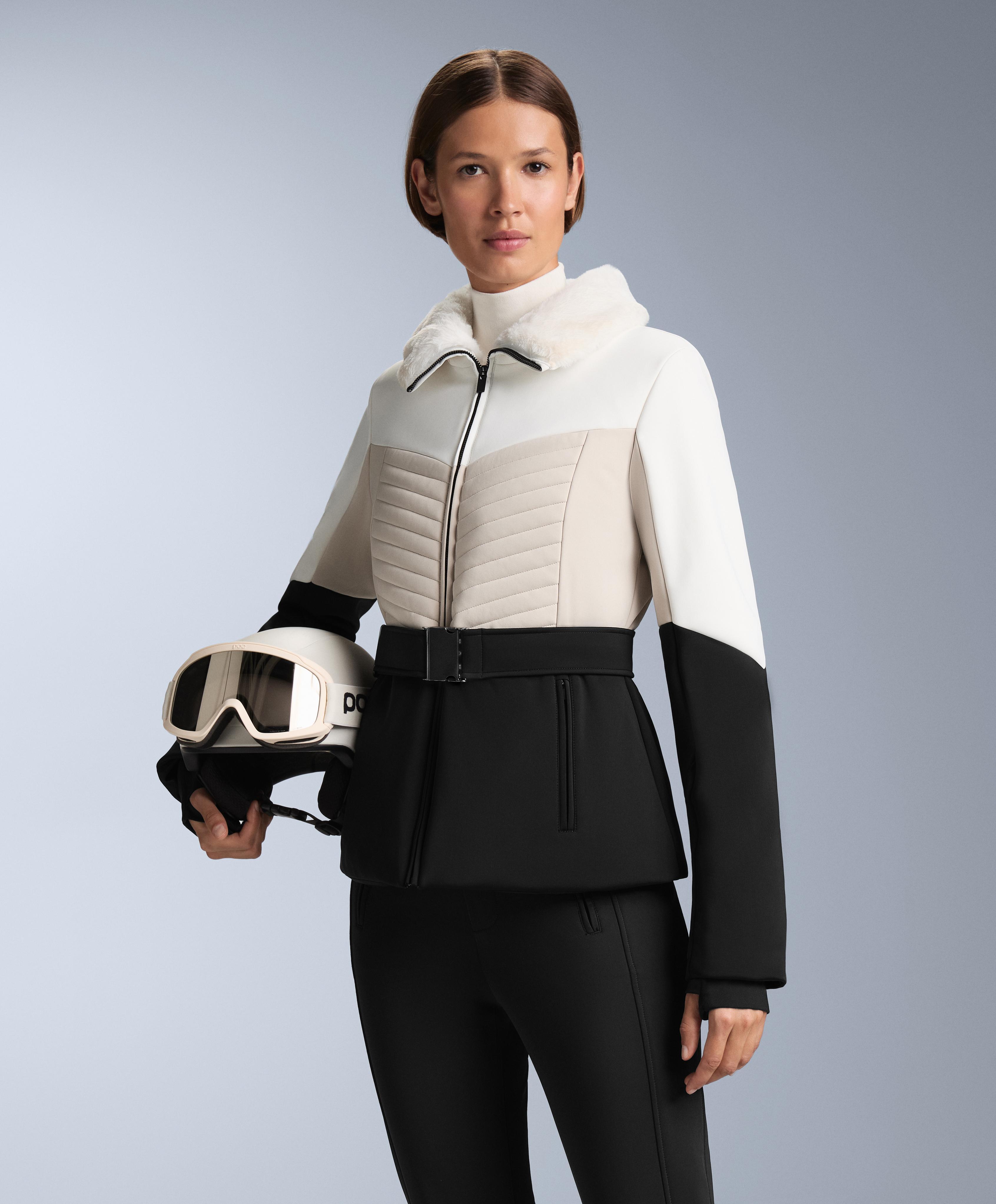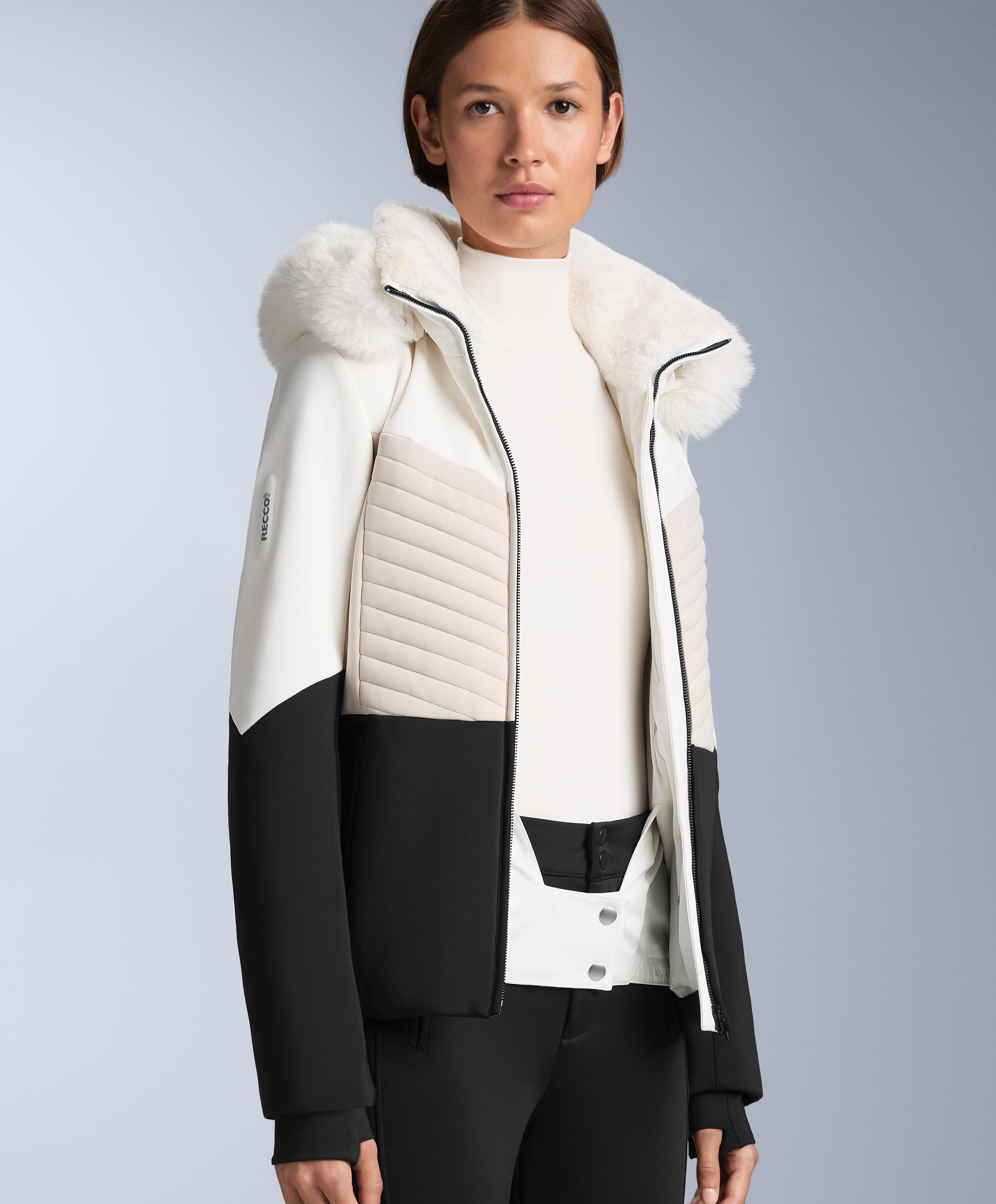Застежка-молния спереди и регулируемый пояс. Боковые карманы на молнии, внутренний карман для мобильного телефона и карман на рукаве для ски-пасса. Съемный капюшон с искусственным мехом. Внутренний пояс предотвращает попадание снега. Эластичные внутренние манжеты с отверстиями для больших пальцев и внутренний крючок для перчаток. Дышащая, ветронепроницаемая и эластичная ткань для дополнительного комфорта.
