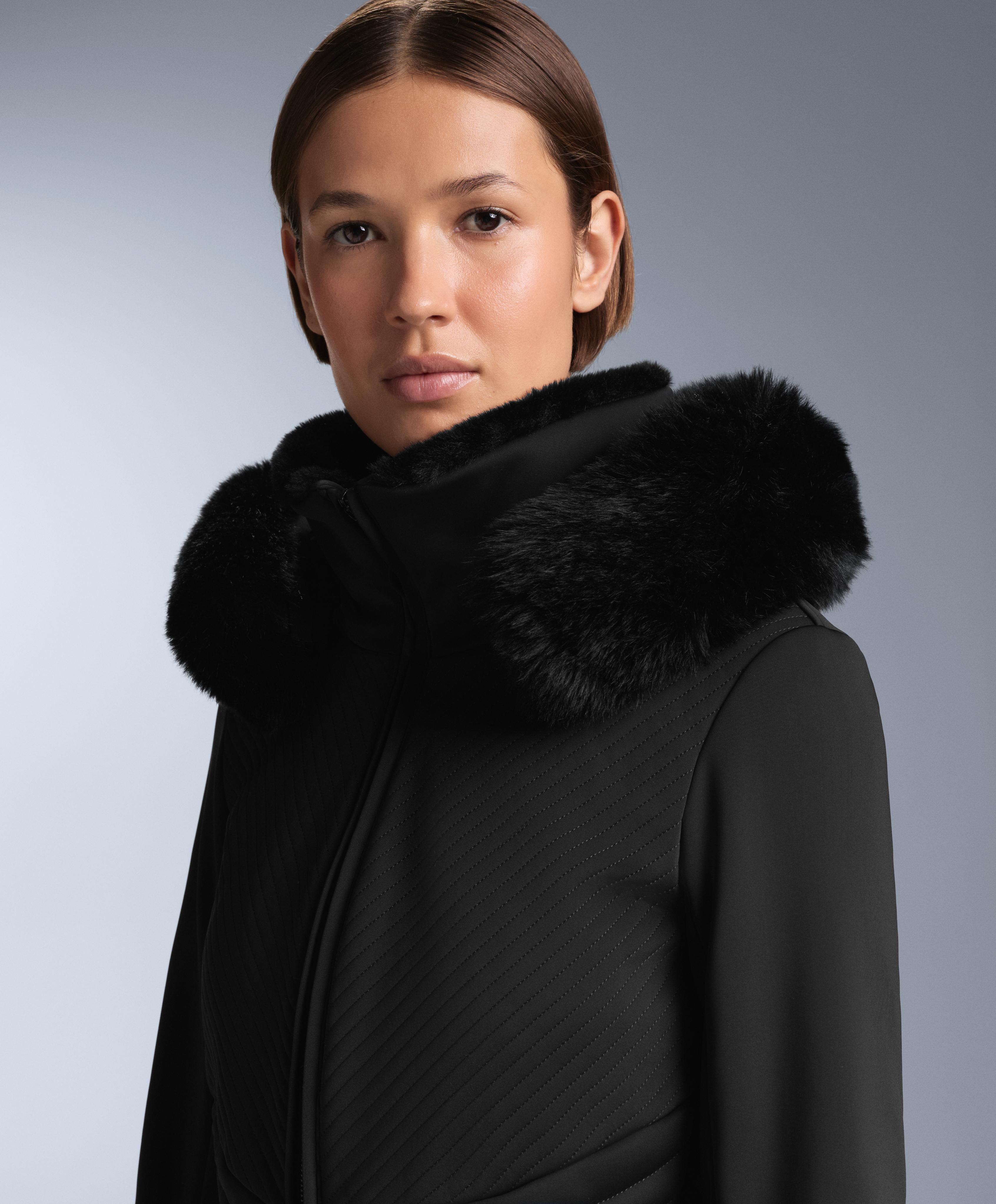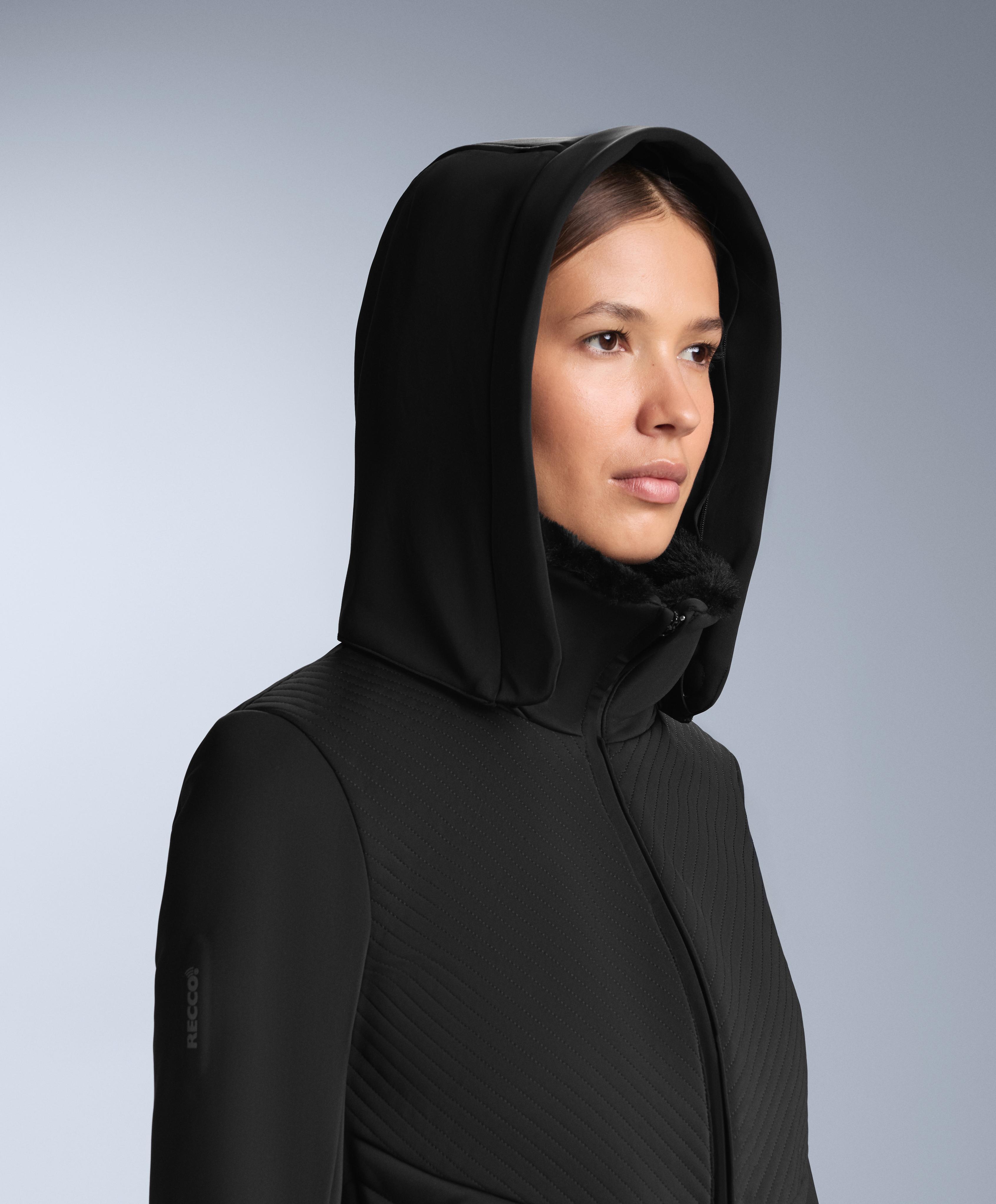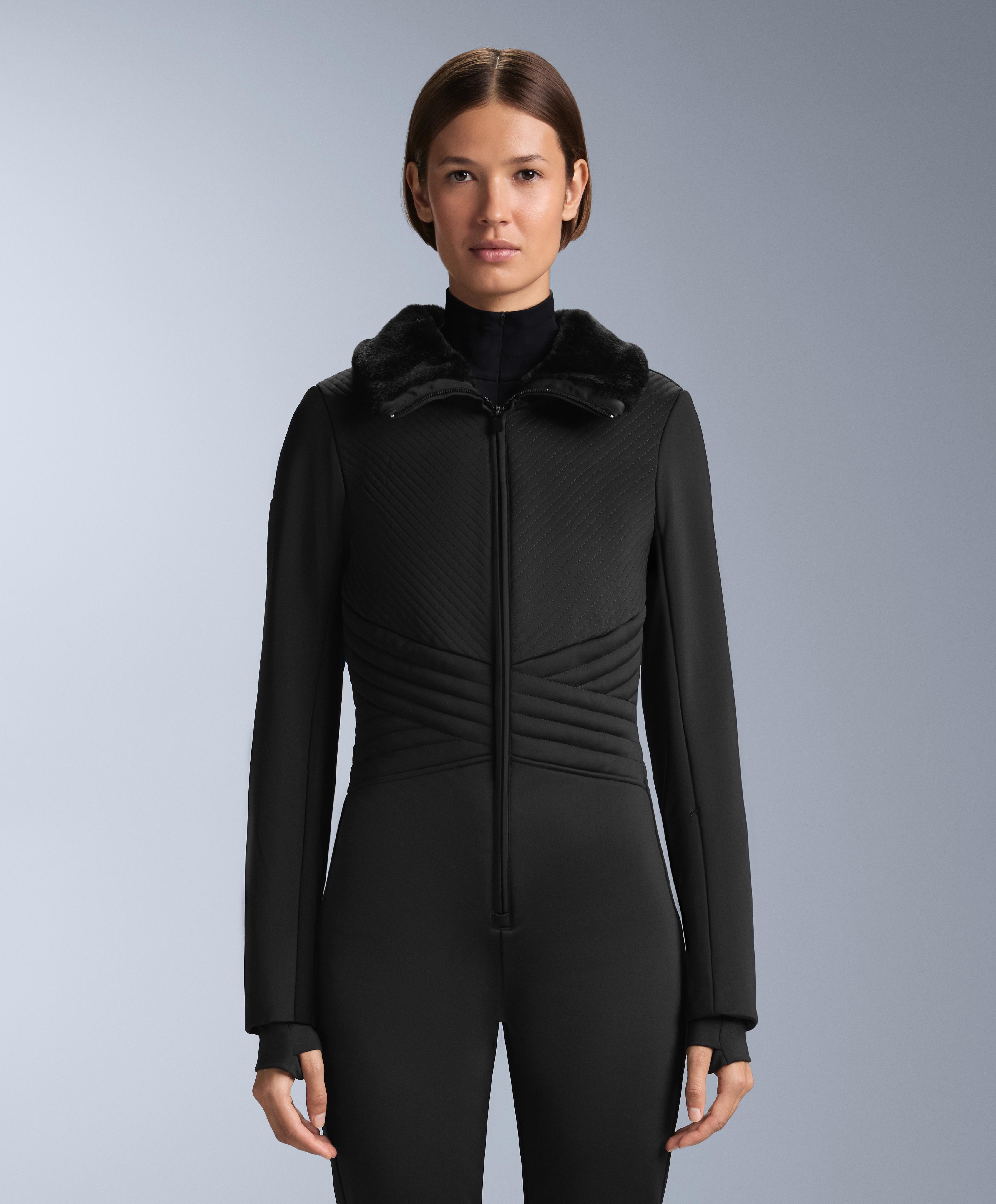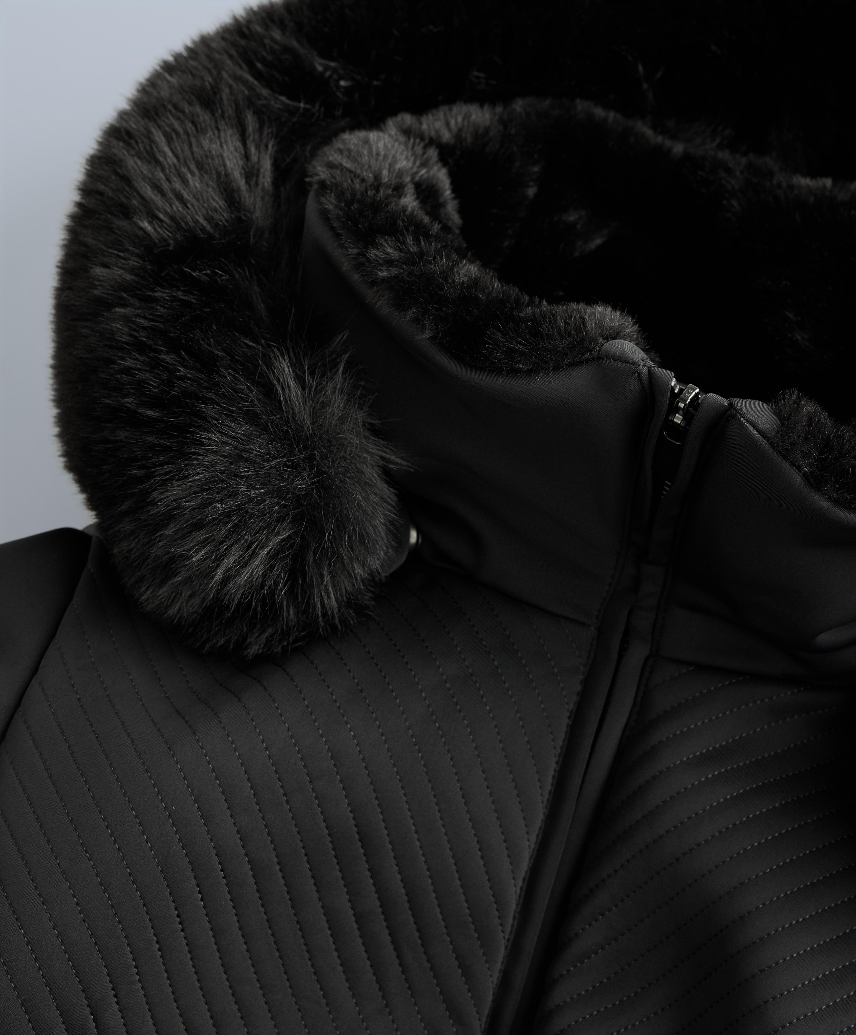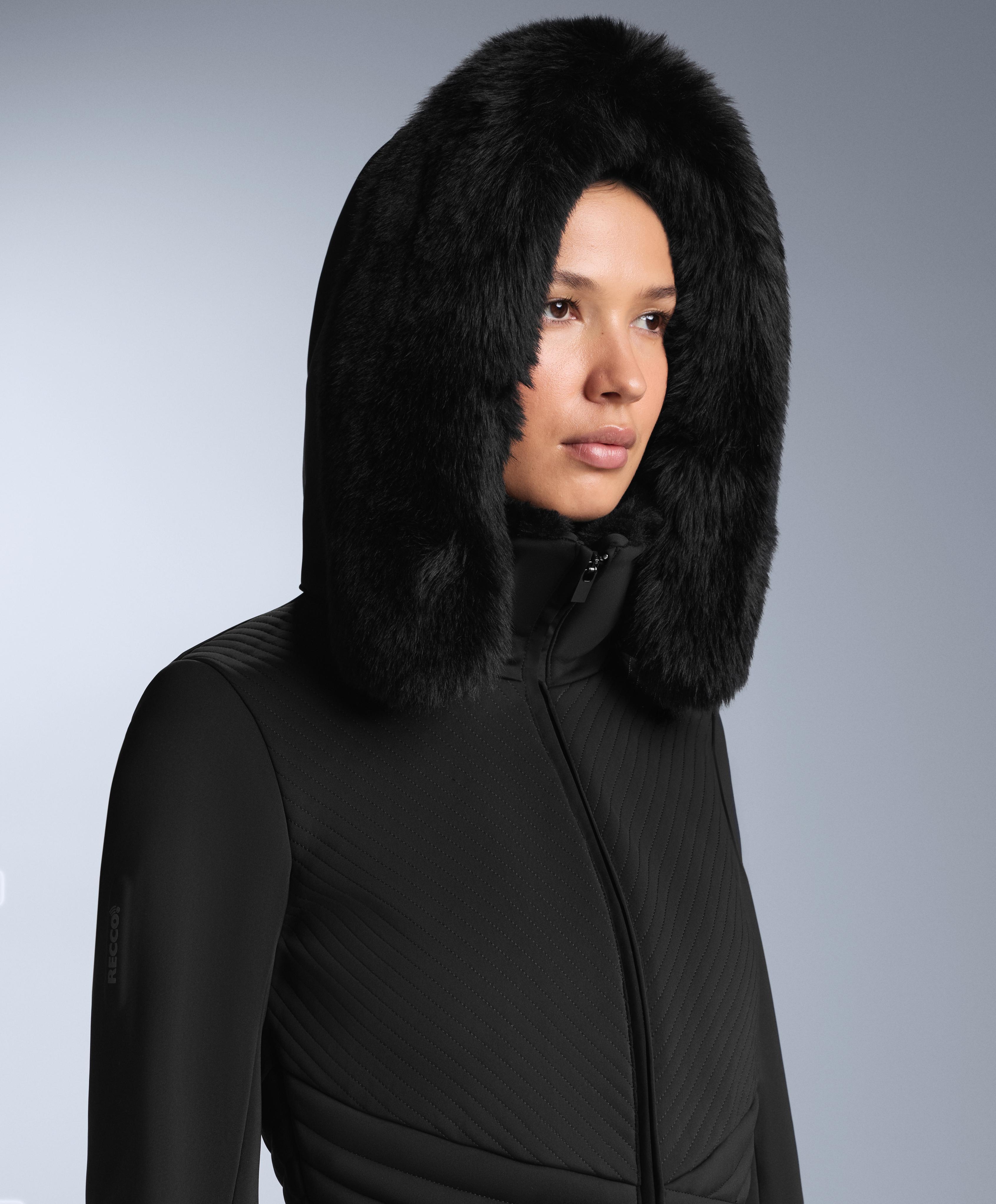 Приталенный эластичный комбинезон со съемным капюшоном и отделкой из искусственного меха. Со светоотражателем RECCO®, который позволит спасателям с детекторами найти вас, если вы попадете в лавину или заблудитесь в отдаленной местности.