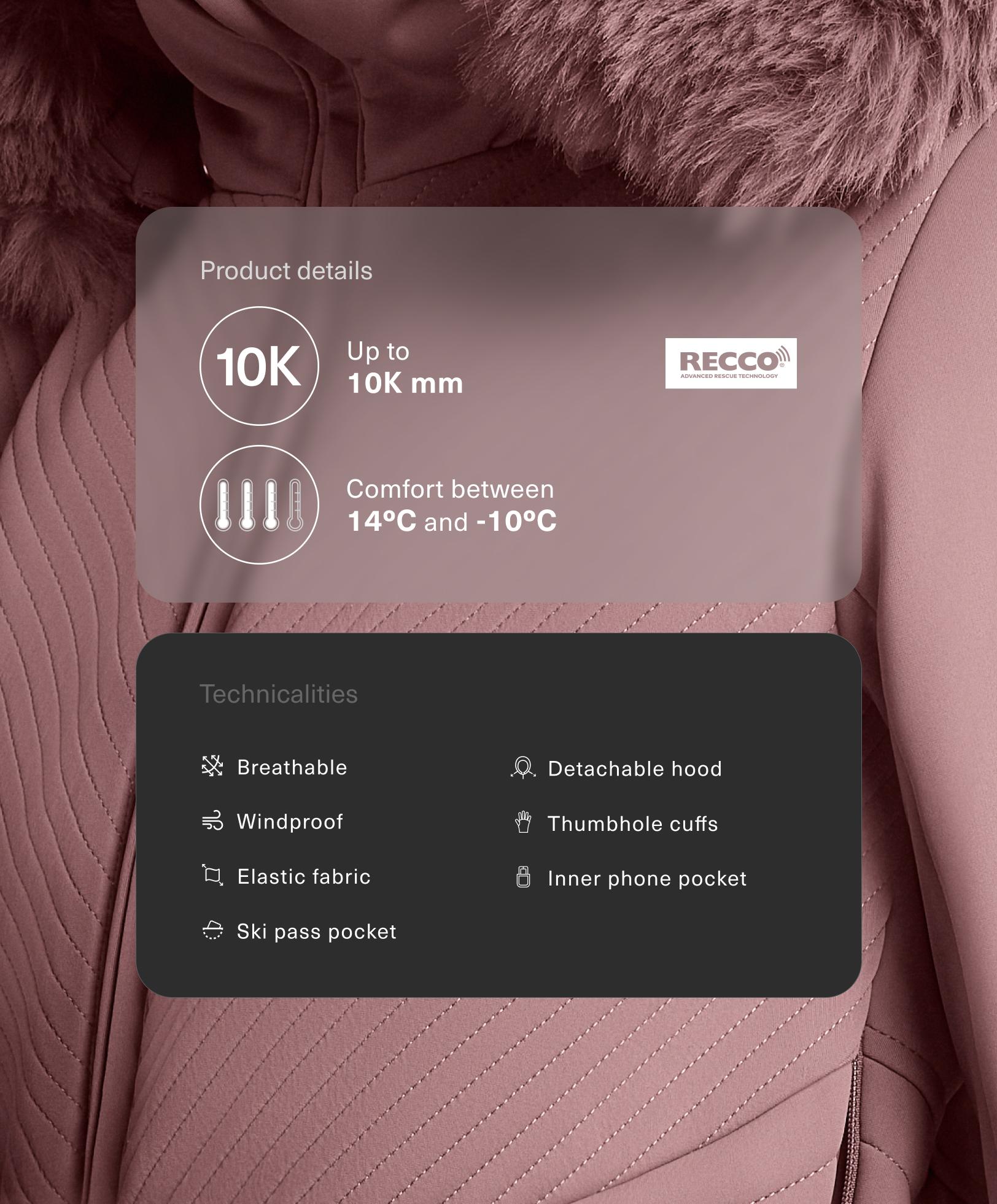 Приталенный эластичный комбинезон со съемным капюшоном и отделкой из искусственного меха. Со светоотражателем RECCO®, который позволит спасателям с детекторами найти вас, если вы попадете в лавину или заблудитесь в отдаленной местности.