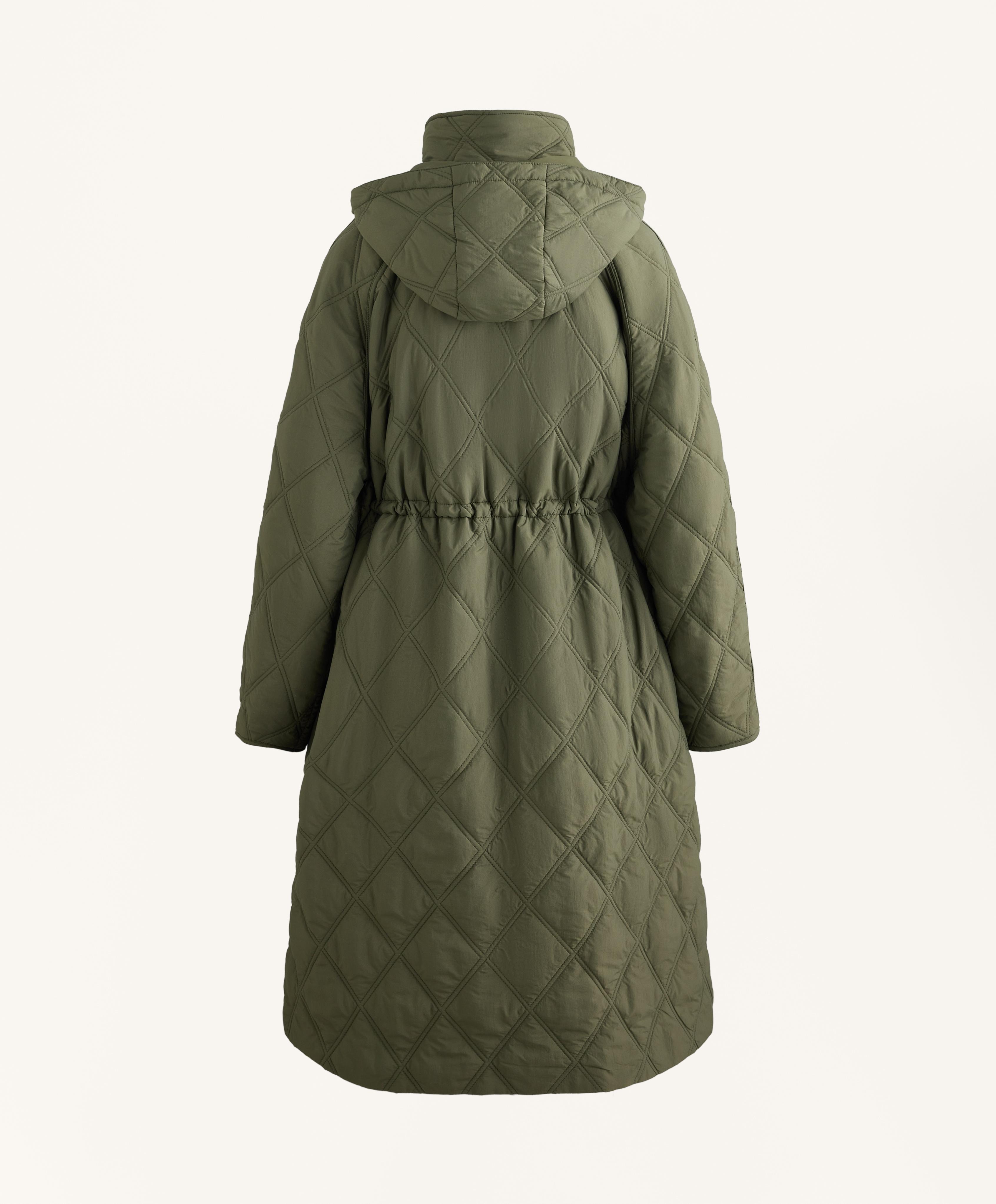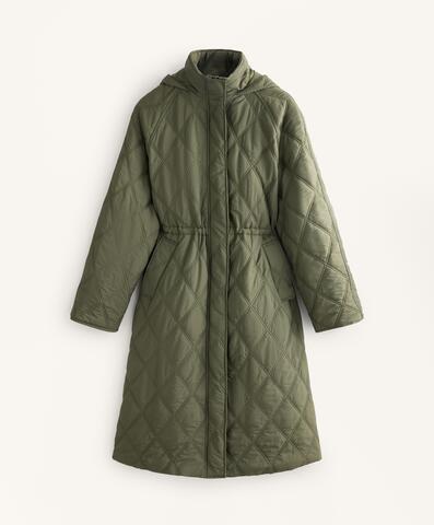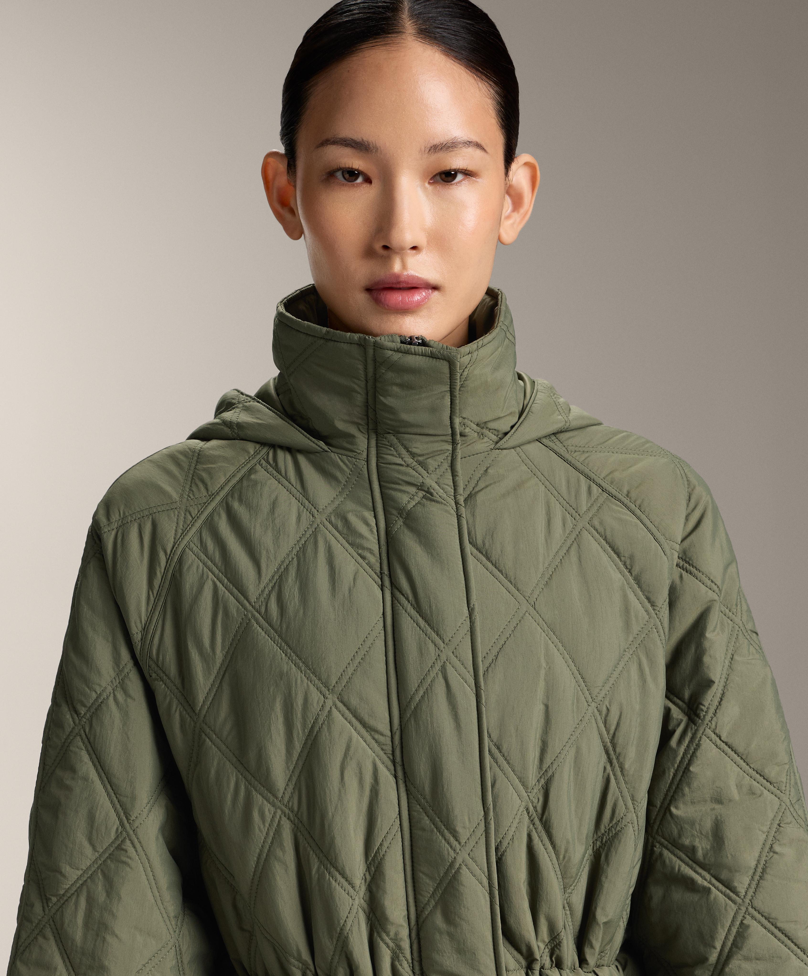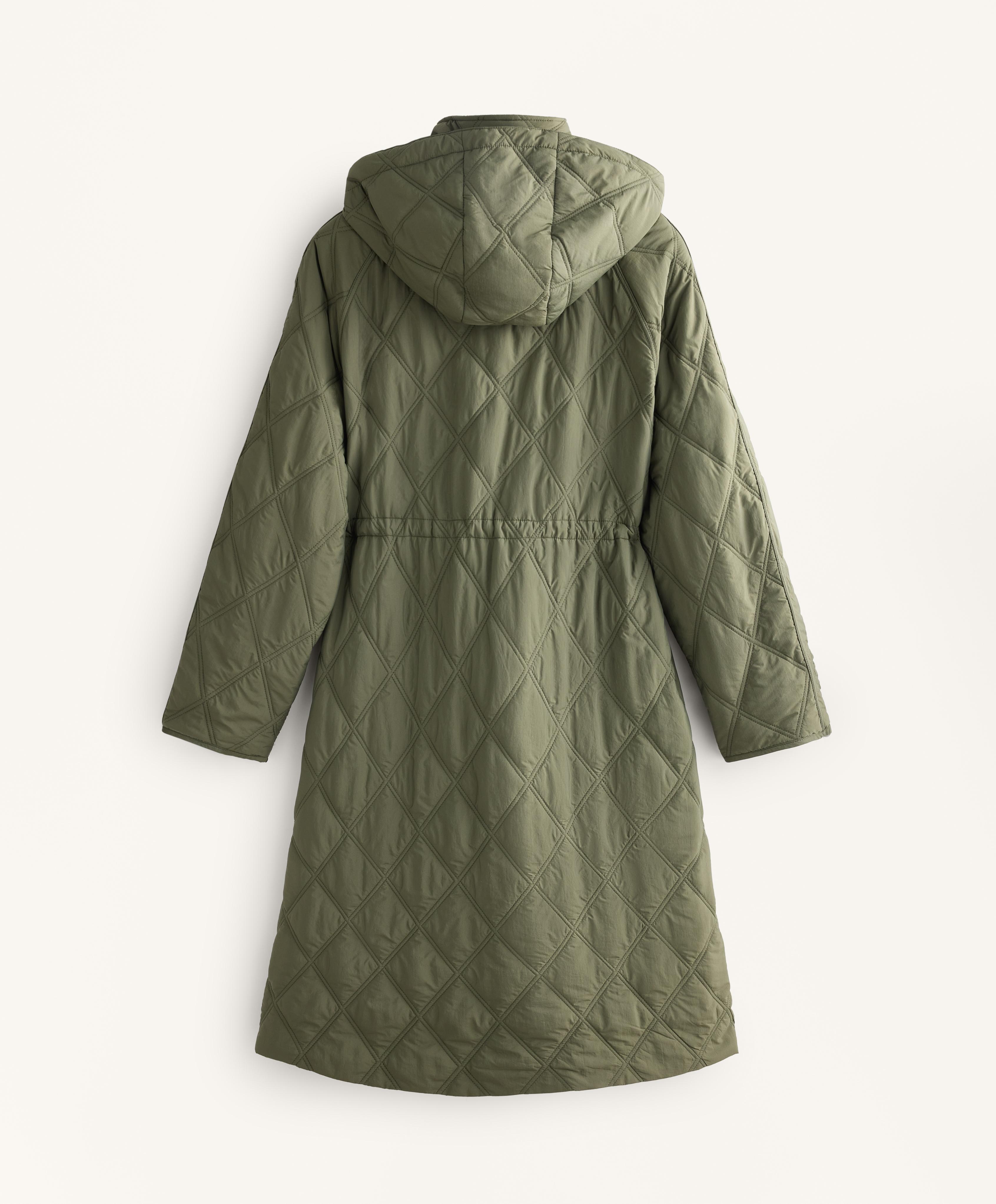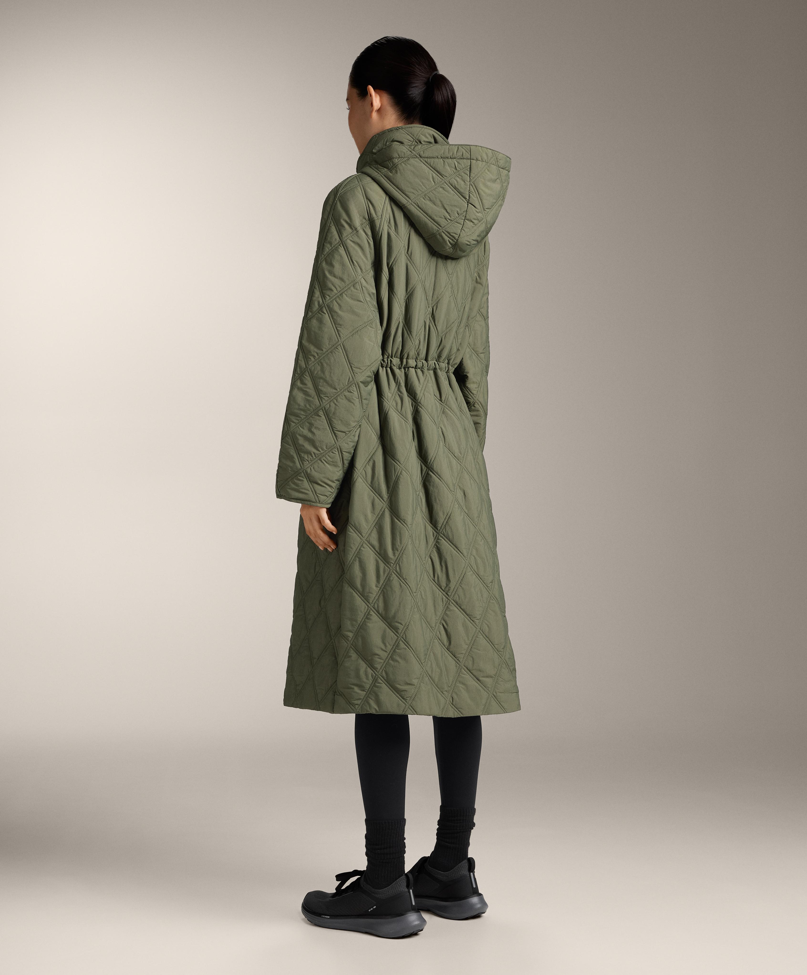 Длинная стеганая куртка с капюшоном. С наполнителем FELLEX® AEROGEL. Технология FELLEX® AEROGEL изготовлена из 95% полиэстера и содержит компонент AEROGEL, который повышает теплоизоляцию без увеличения веса изделия. Этот материал используется в комбинезонах космонавтов благодаря своей легкости и теплоизоляционным свойствам.