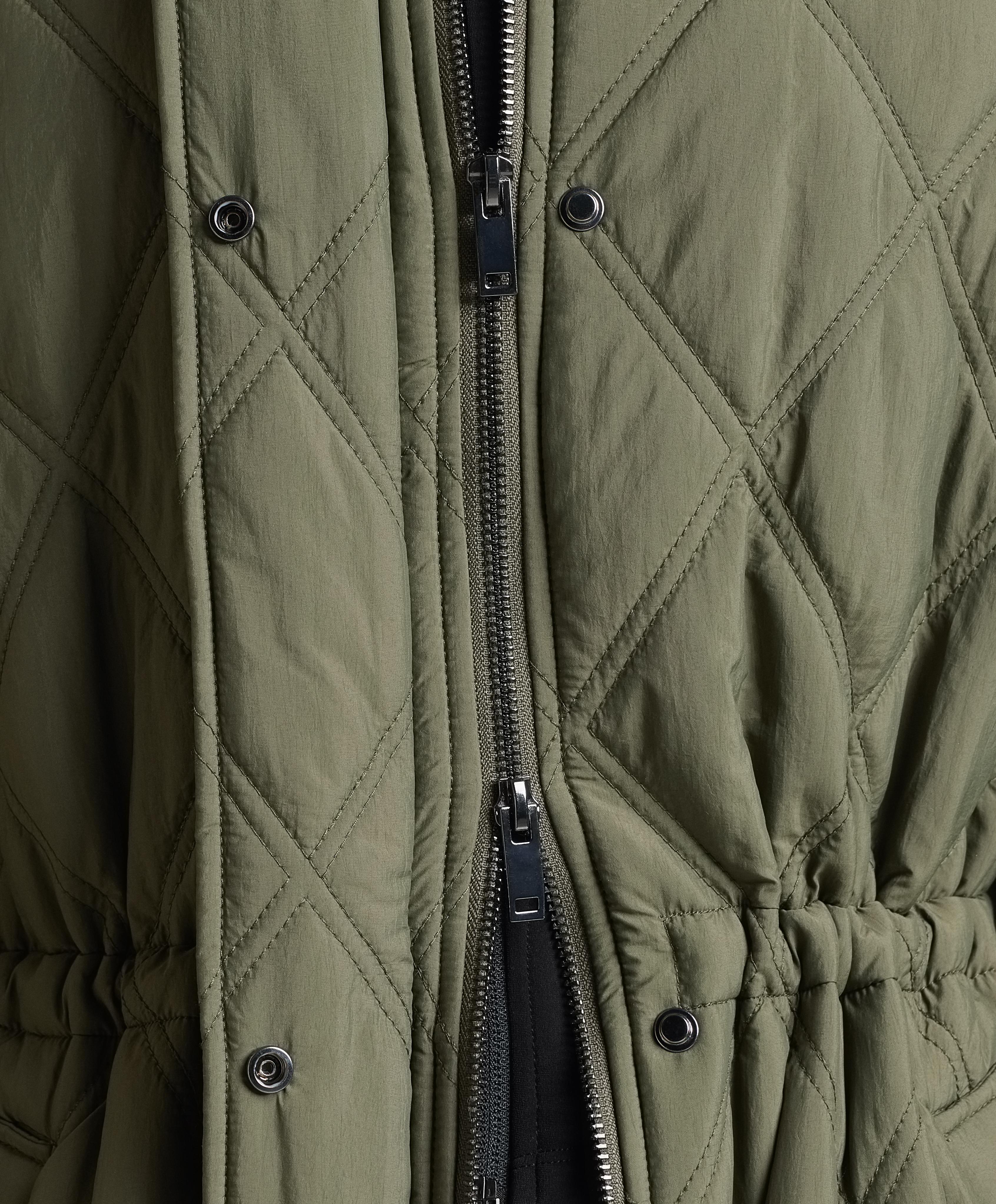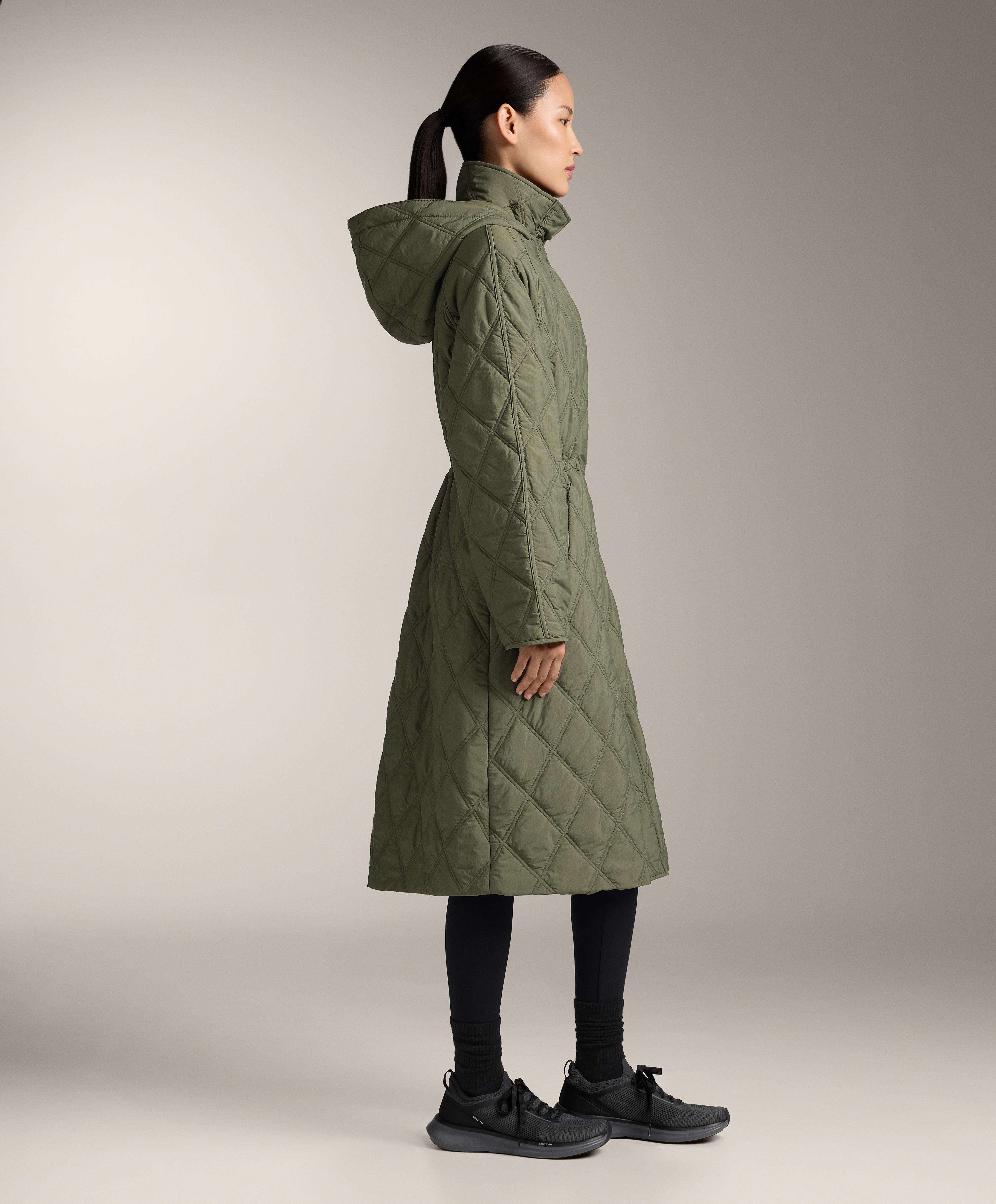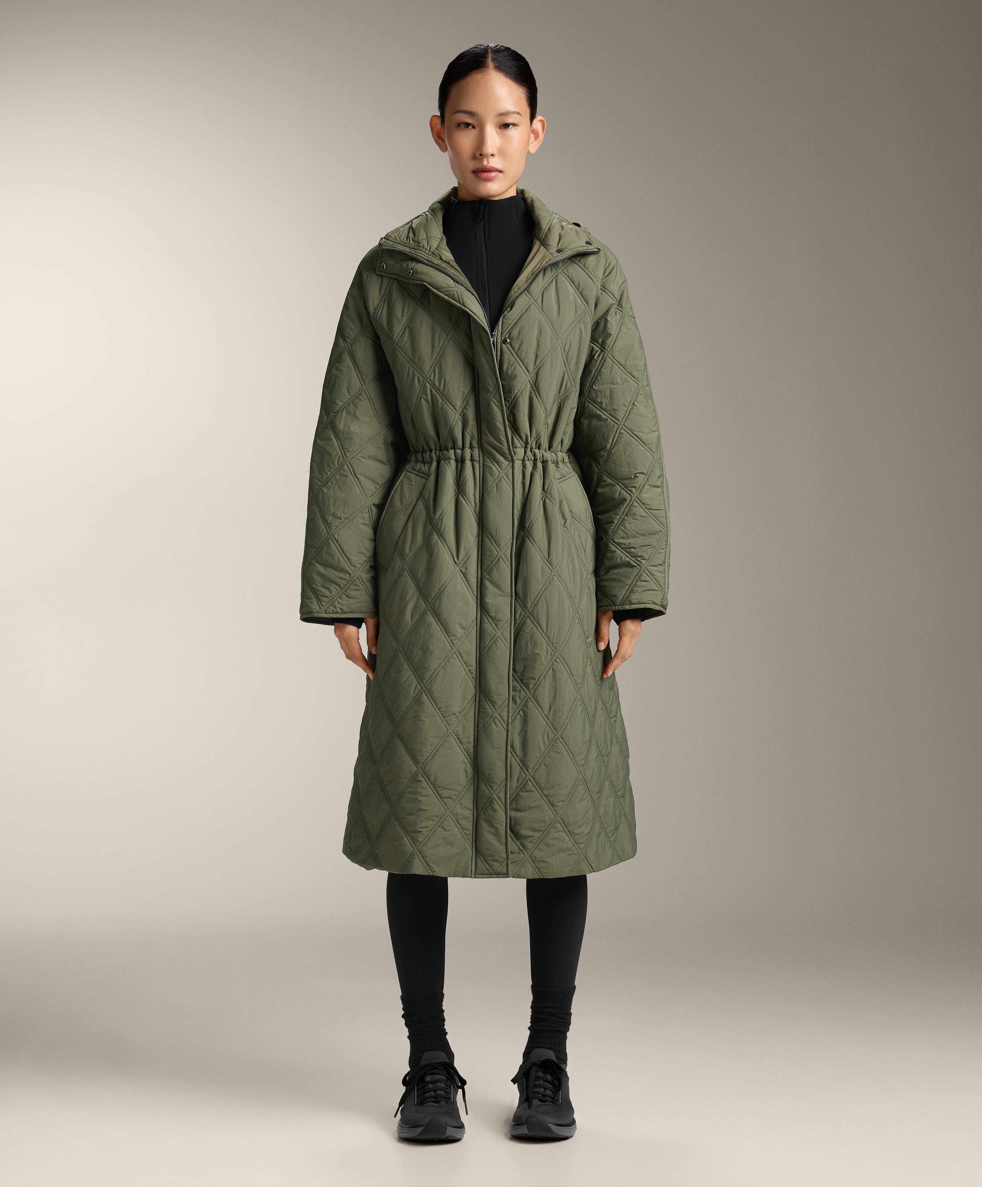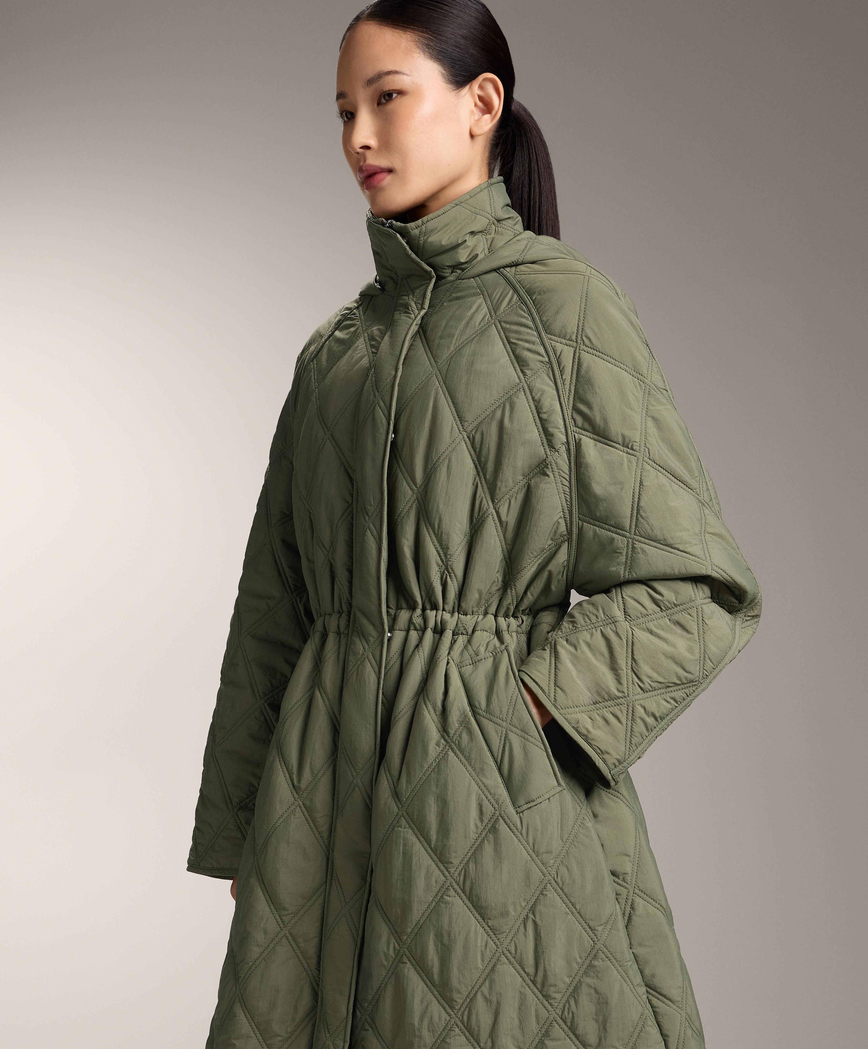 Длинная стеганая куртка с капюшоном. С наполнителем FELLEX® AEROGEL. Технология FELLEX® AEROGEL изготовлена из 95% полиэстера и содержит компонент AEROGEL, который повышает теплоизоляцию без увеличения веса изделия. Этот материал используется в комбинезонах космонавтов благодаря своей легкости и теплоизоляционным свойствам.