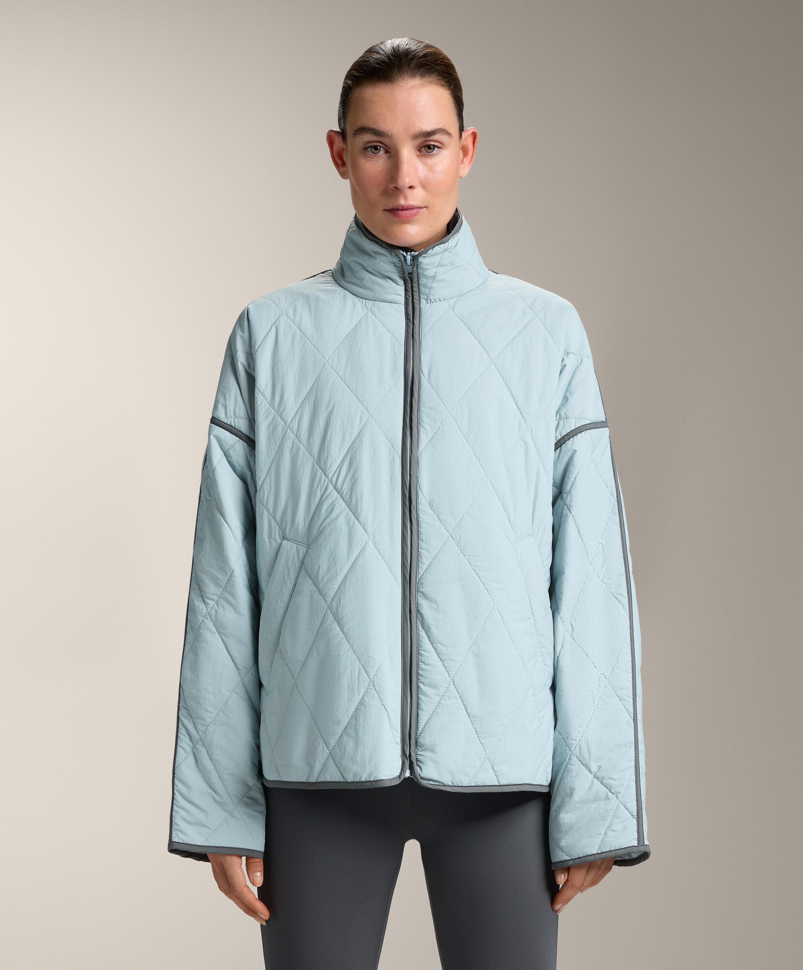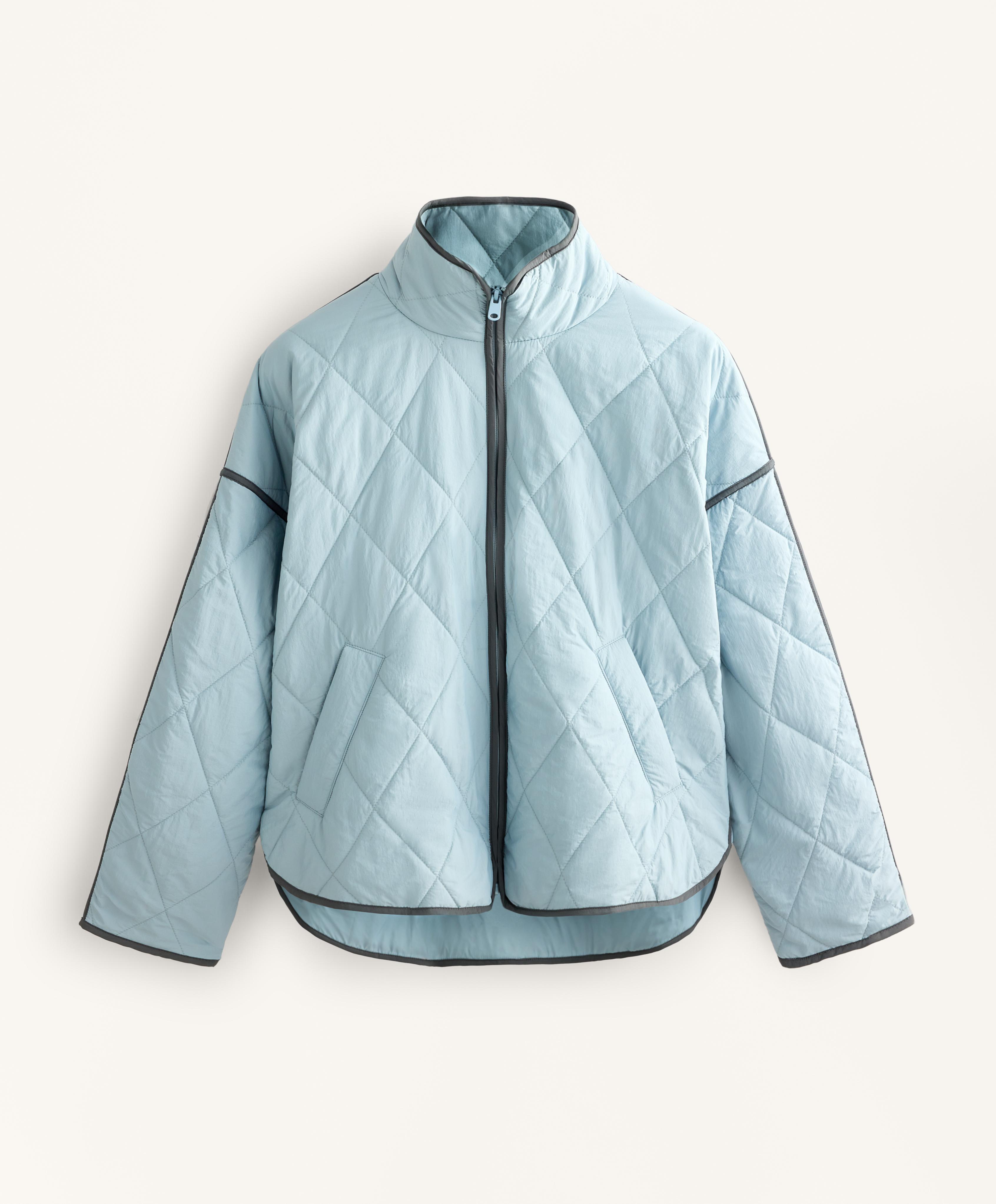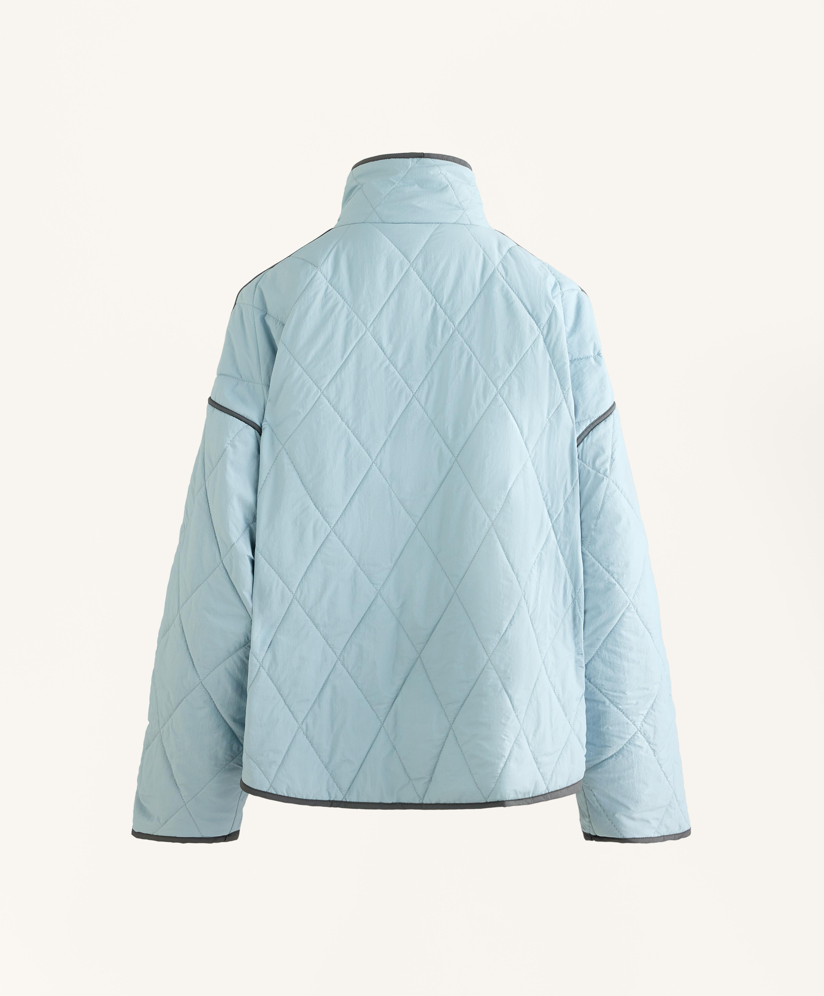 Стеганая куртка с воротником-стойкой и подкладкой FELLEX® с AEROGEL. Технология FELLEX® AEROGEL на 95% состоит из полиэстера и содержит компонент AEROGEL, который позволяет увеличить теплоизоляцию, не добавляя лишнего веса изделию. Этот материал используется в комбинезонах космонавтов благодаря его легкости и теплоемкости.