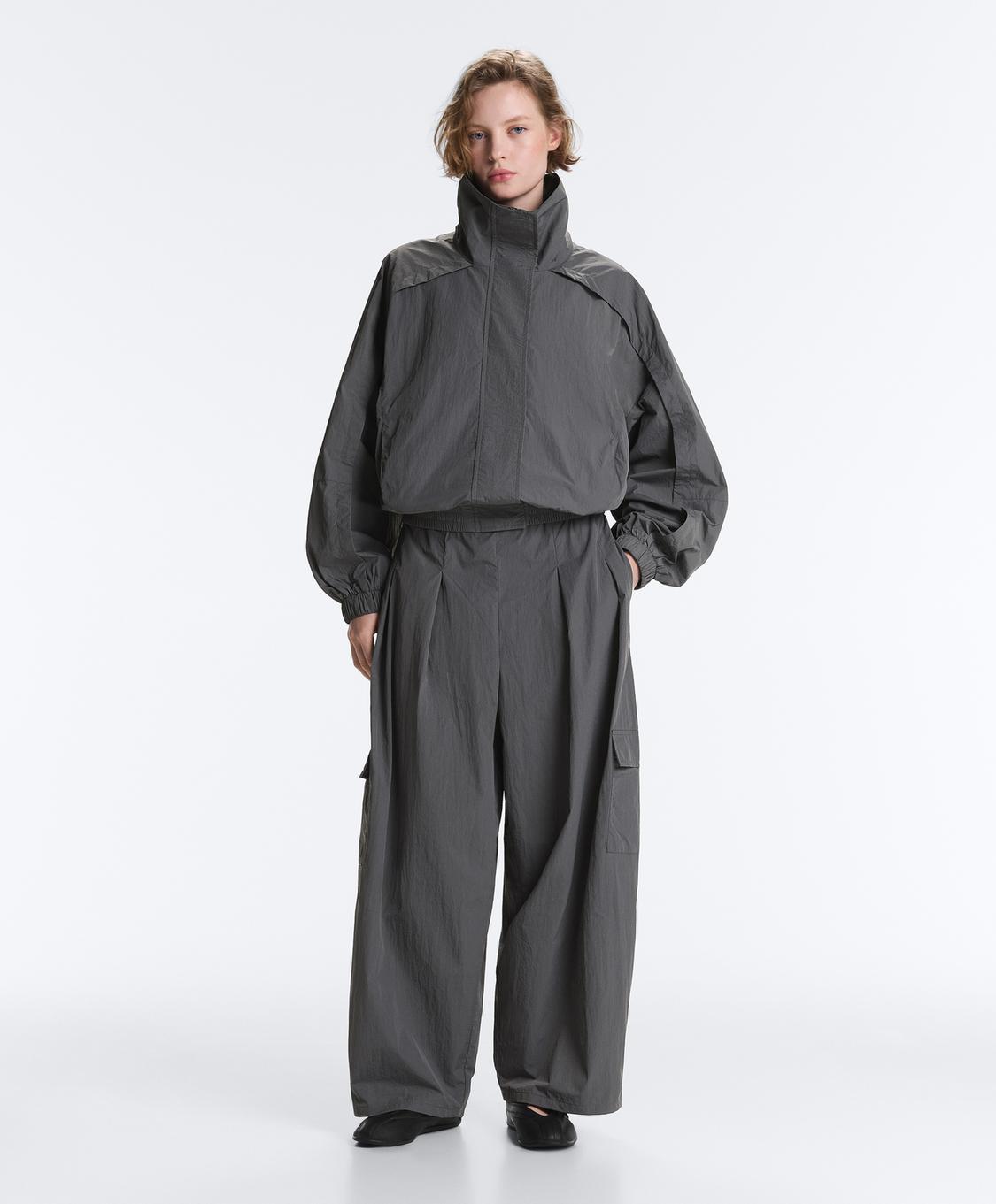 Oysho Водоотталкивающие нейлоновые брюки-карго, асфальтовый