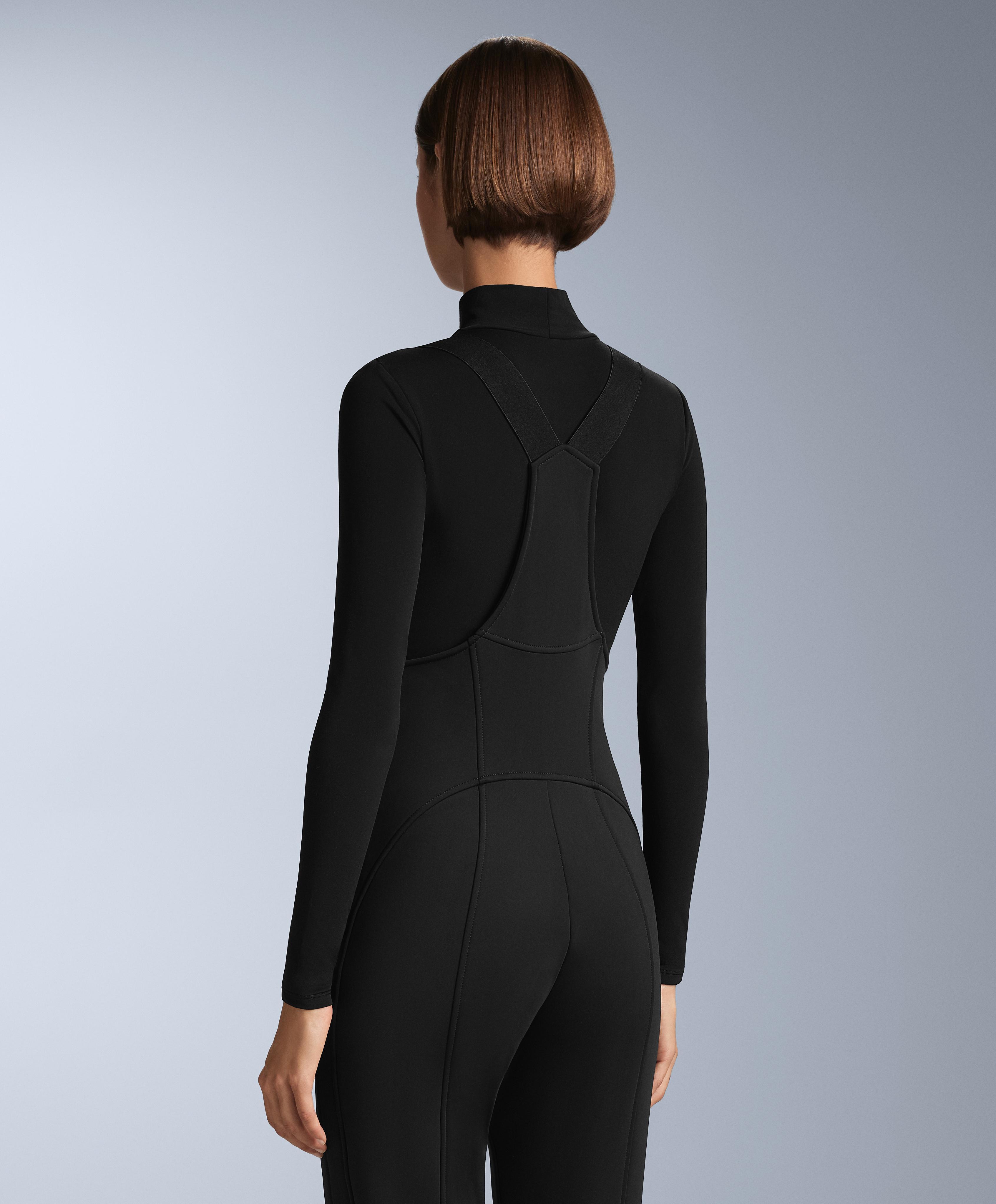 Эластичный комбинезон с брюками клеш. Со светоотражателем RECCO®, который позволяет спасателям, оснащенным детекторами, найти вас в случае схода лавины или потери в отдаленном районе.