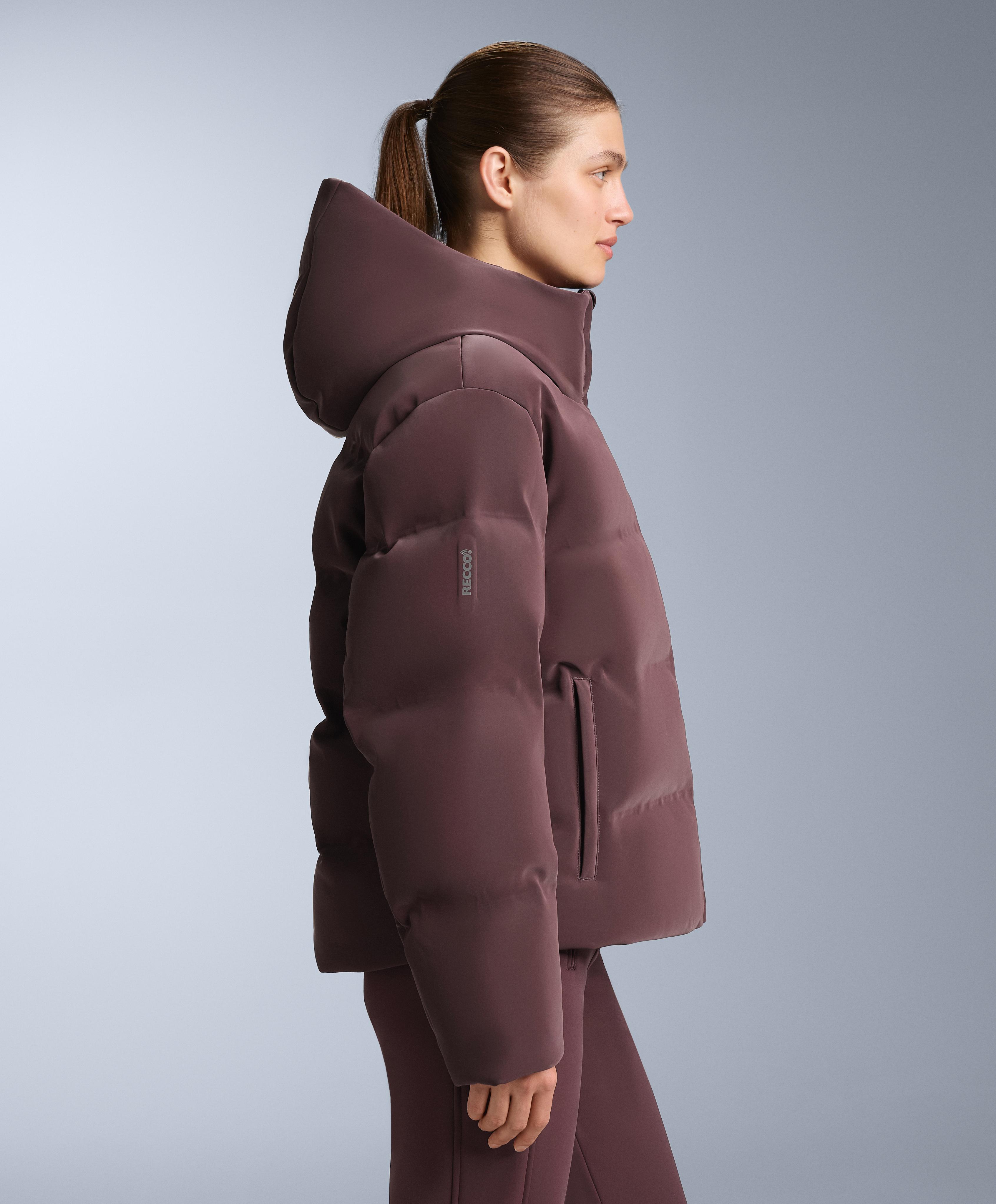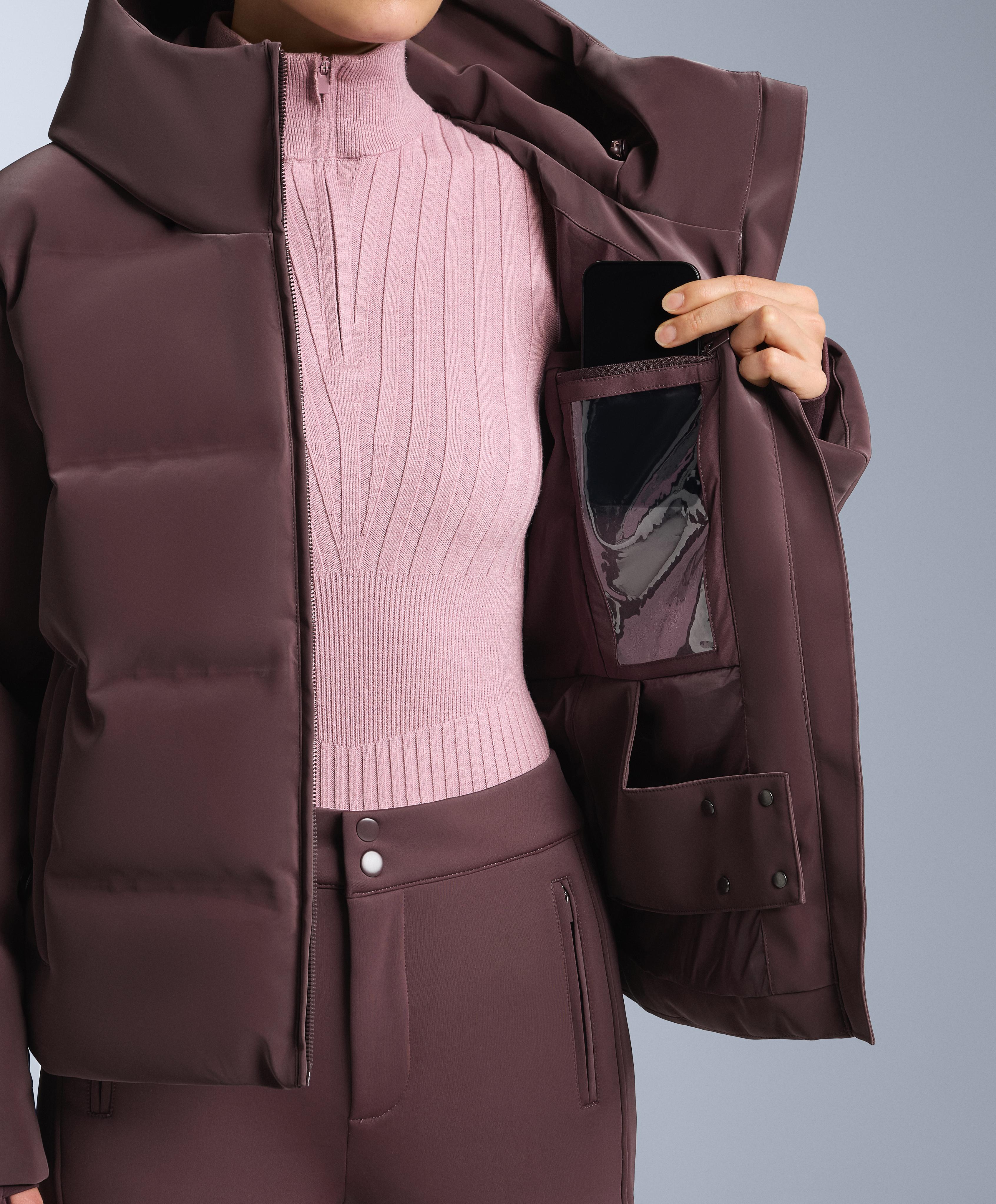 Куртка из атласа с очень тонкой мембраной и наполнителем из 80% пуха и 20% пера от компании Minardi Piume. Со светоотражателем RECCO®, который позволяет спасателям с детекторами найти вас, если вы попадете в лавину или заблудитесь в отдаленной местности.