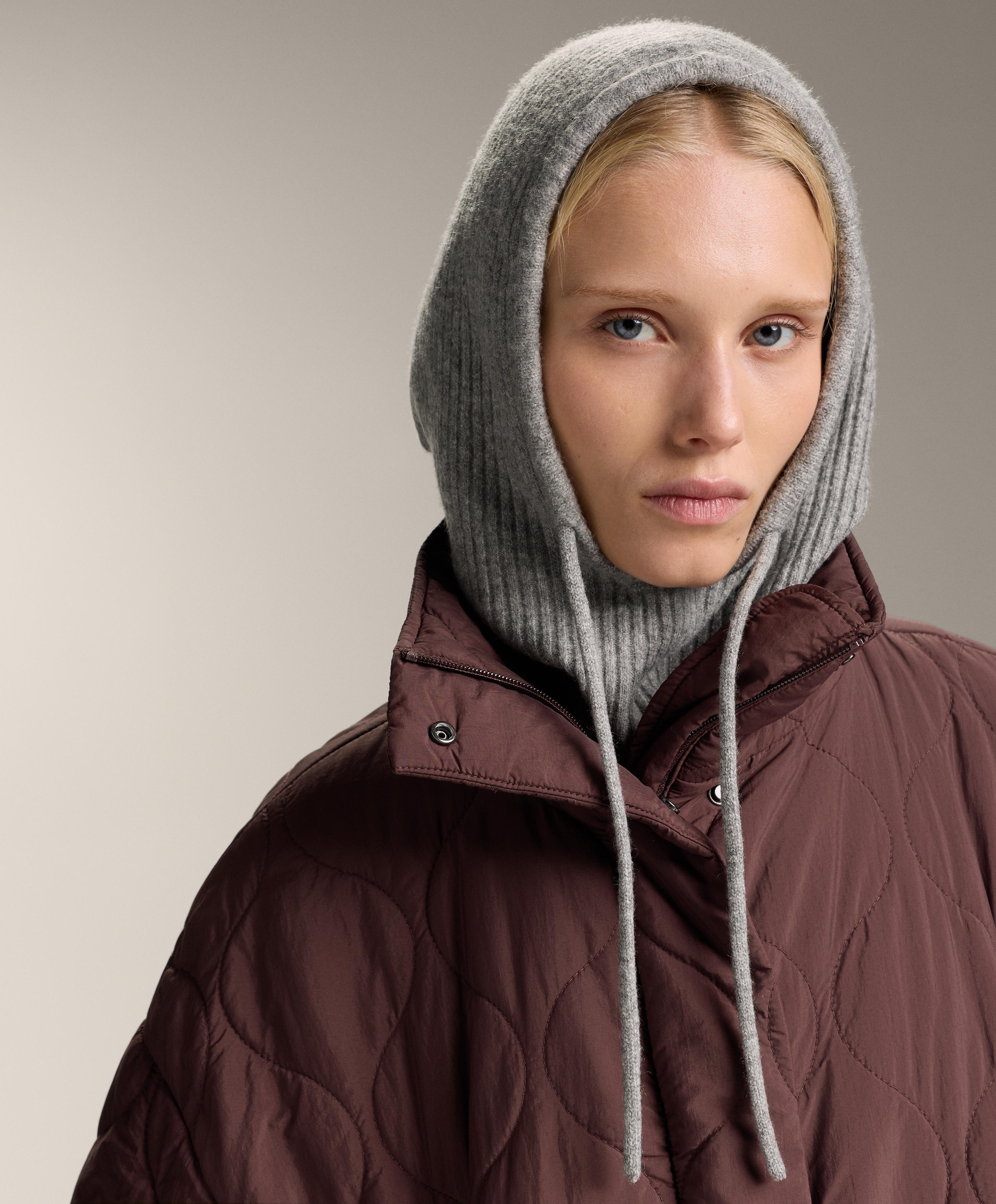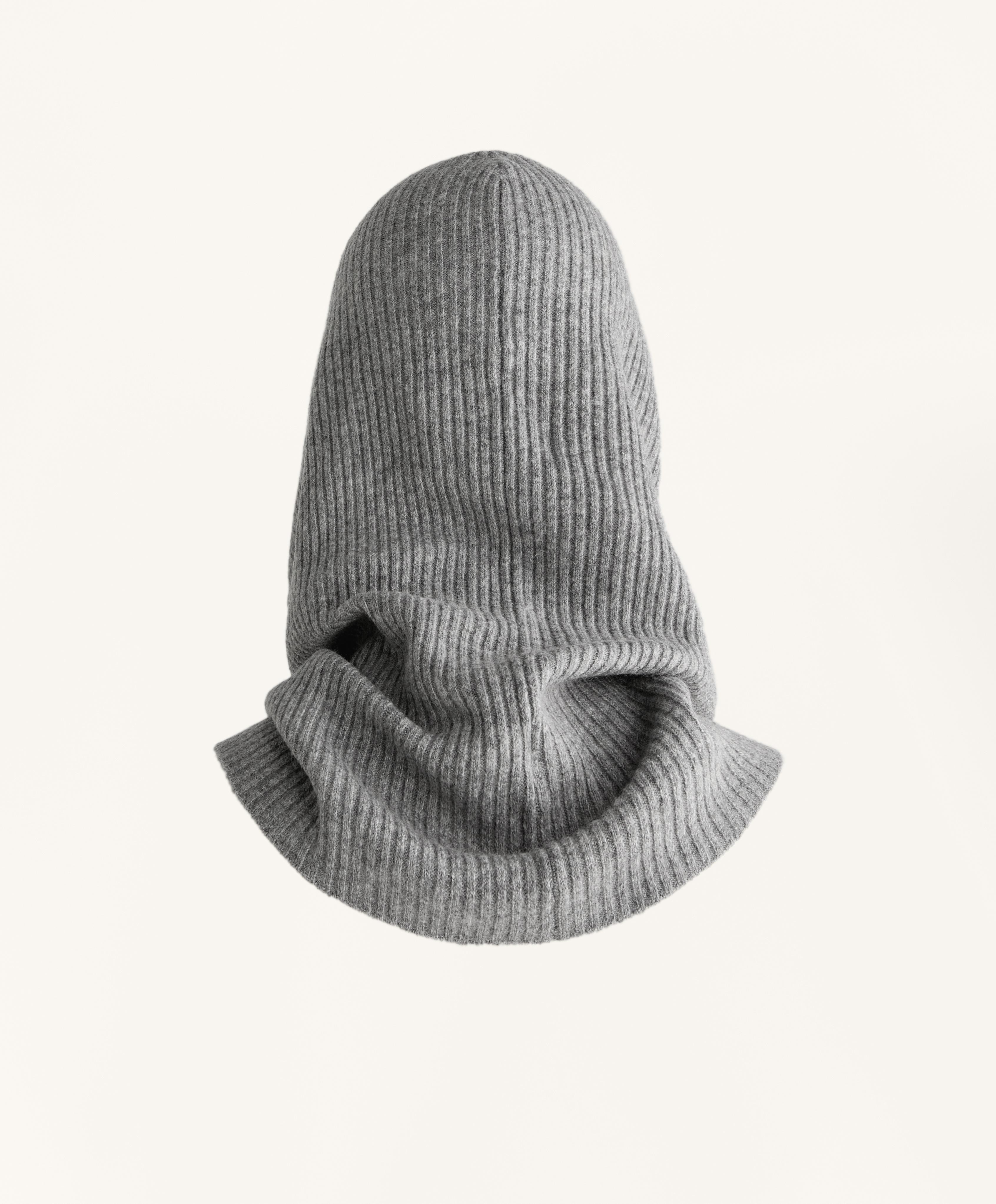 Балаклава из трикотажа в рубчик. В составе изделия 5% кашемира и 5% шерсти.