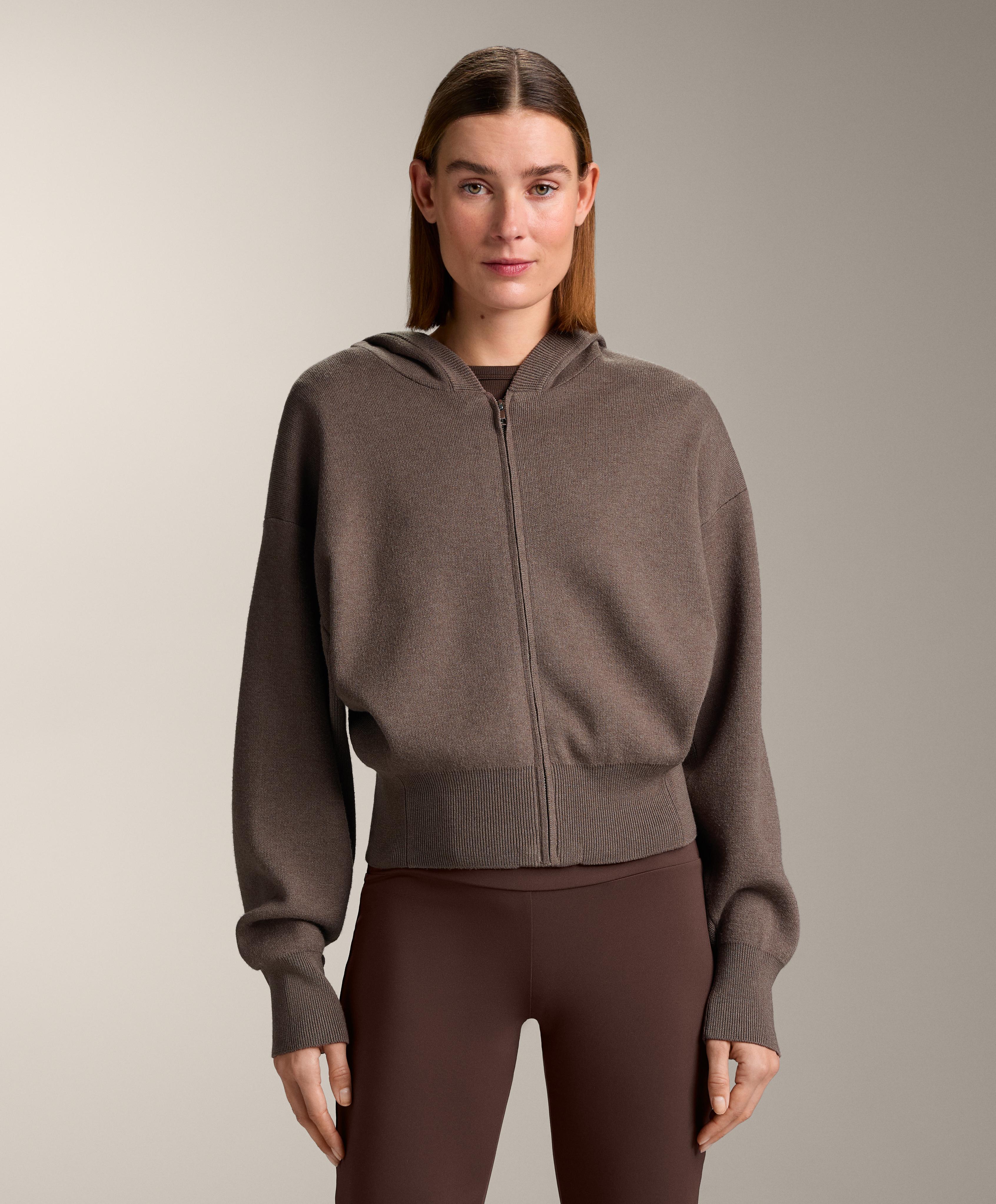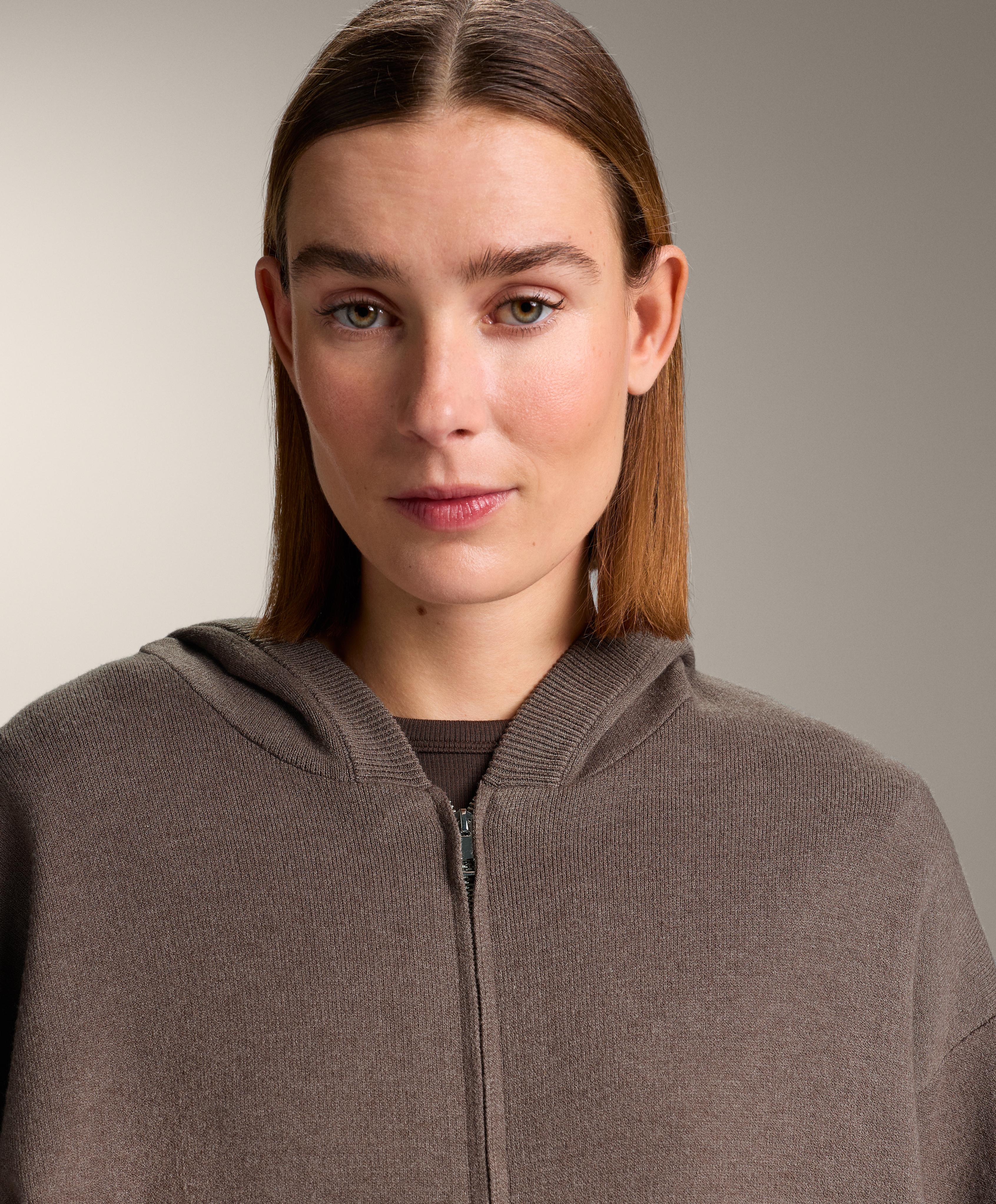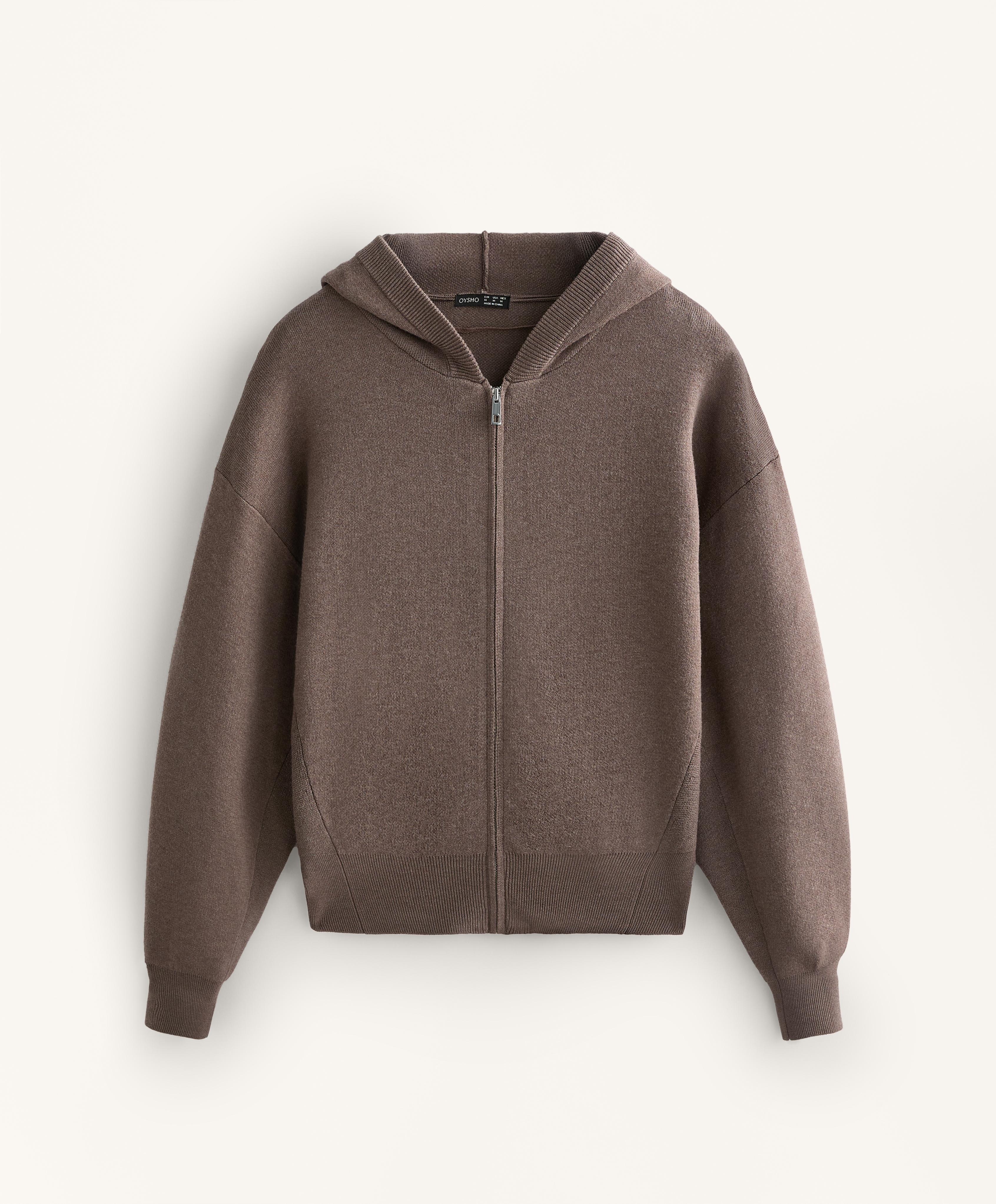 Oysho Вязаная куртка с капюшоном, серо-коричневый