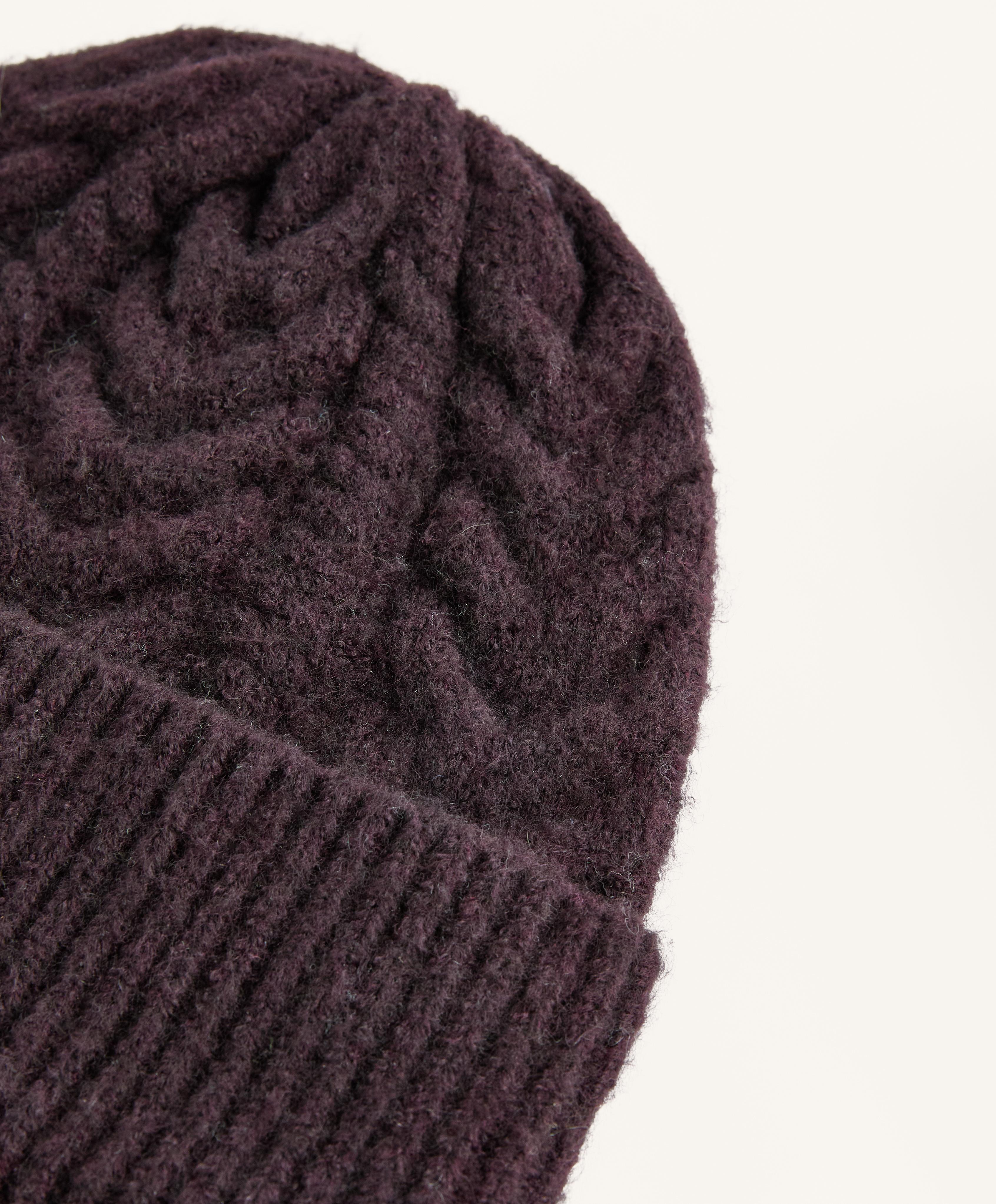 Oysho Вязаная шапка с аранским узором, темно-винный