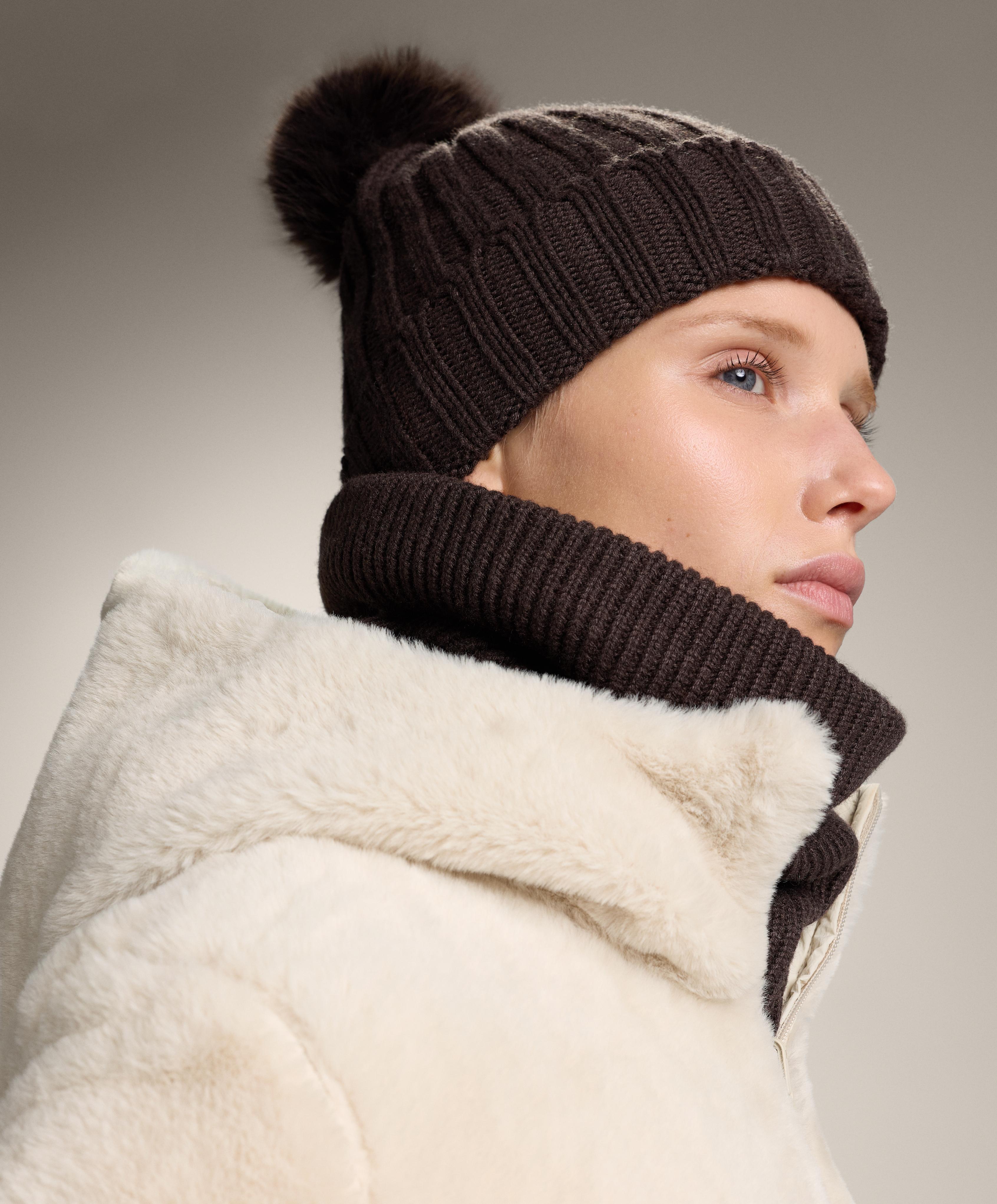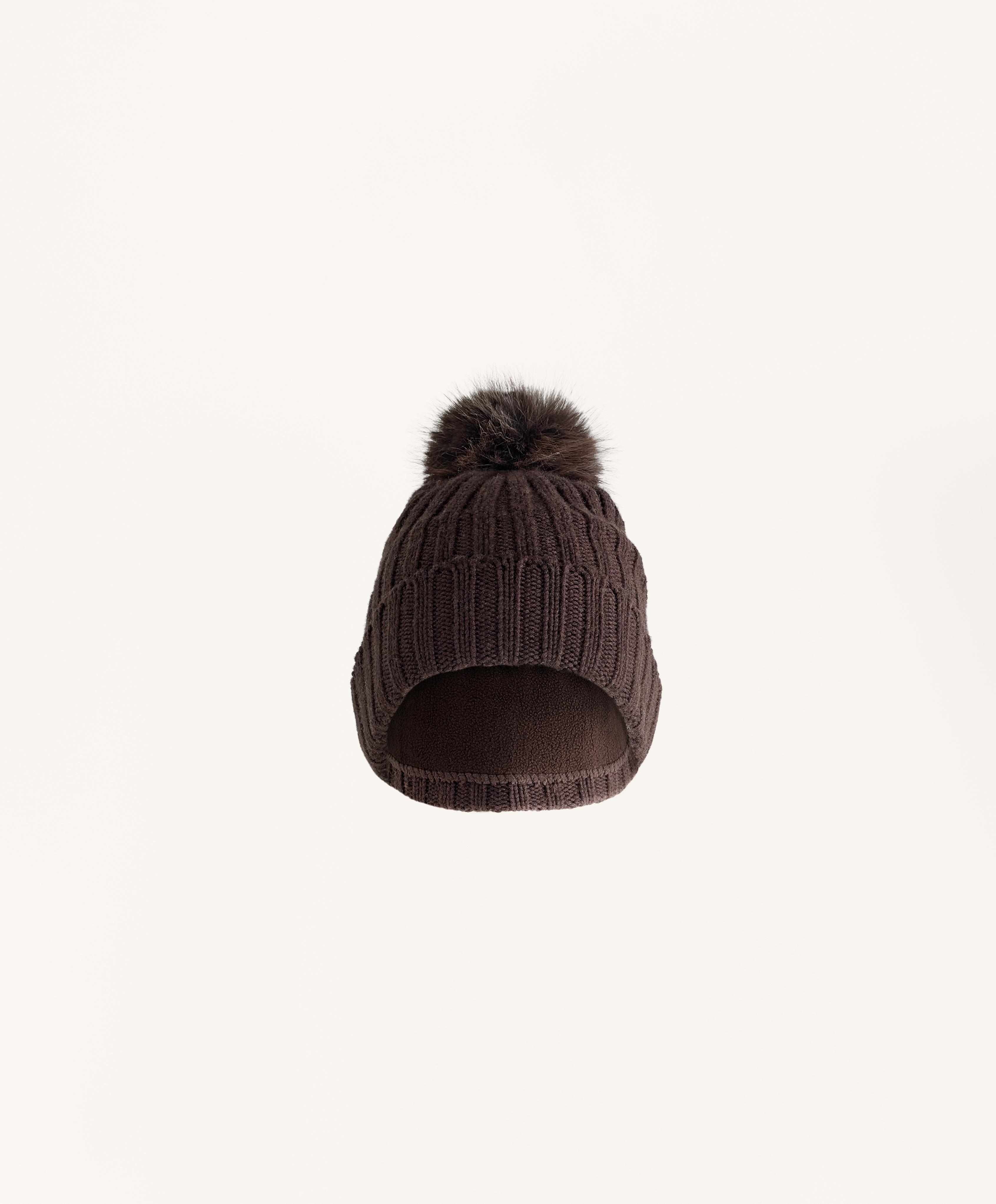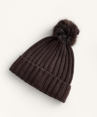 Вязаная шапка с помпоном из смесовой хлопковой пряжи. Состав: 11% шерсти и 5% кашемира.