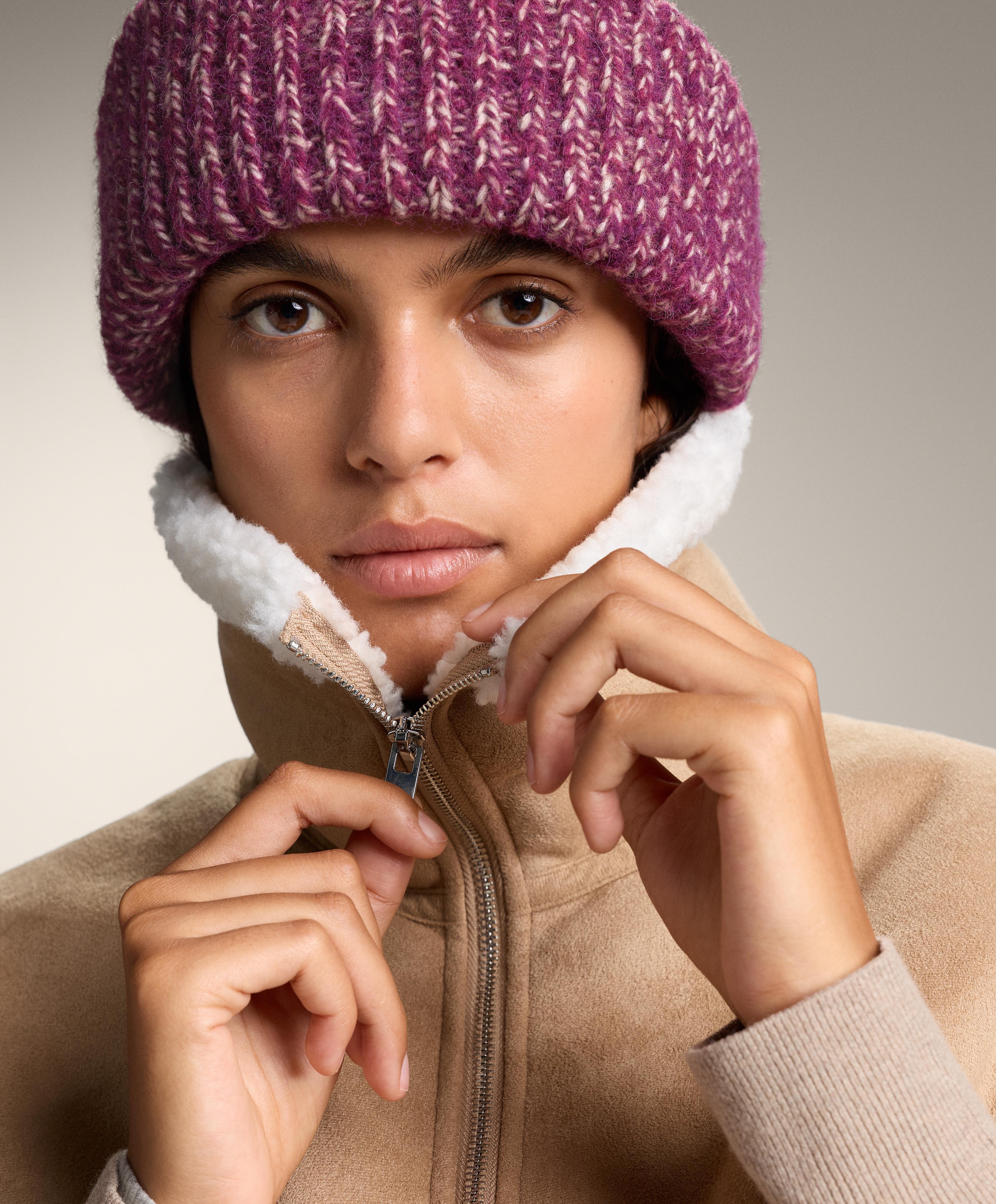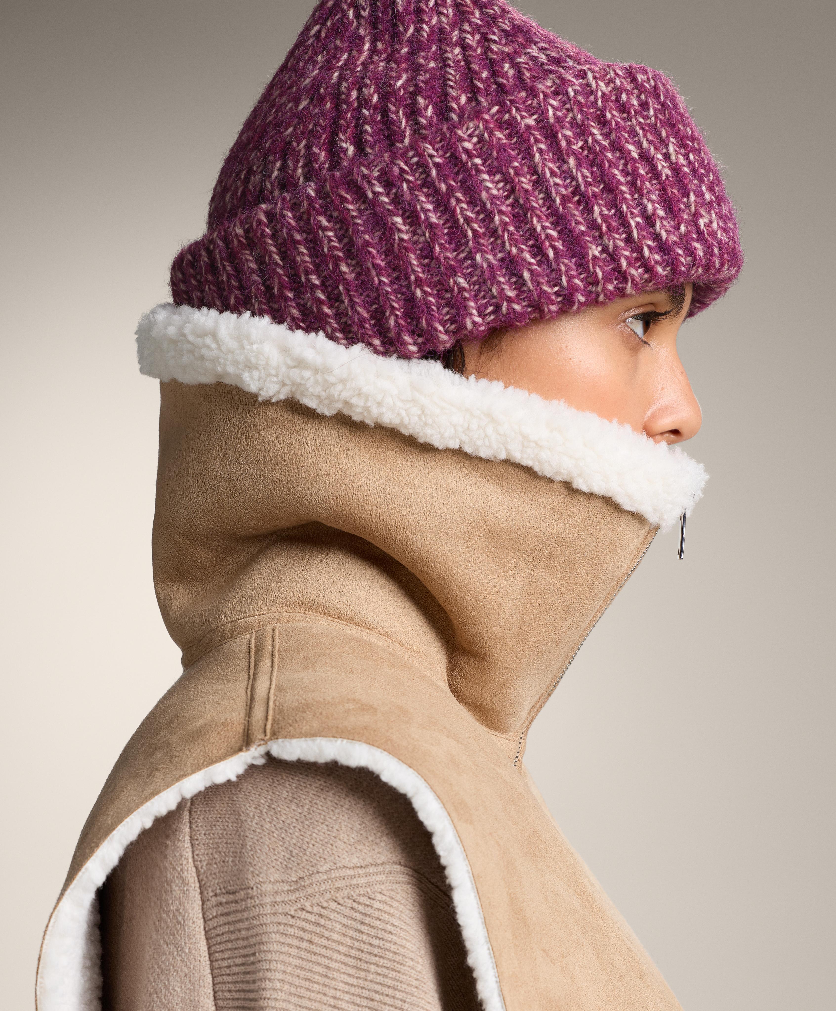 Шапка-бини в рубчик с крапом и отворотом. Содержит 2% шерсти.