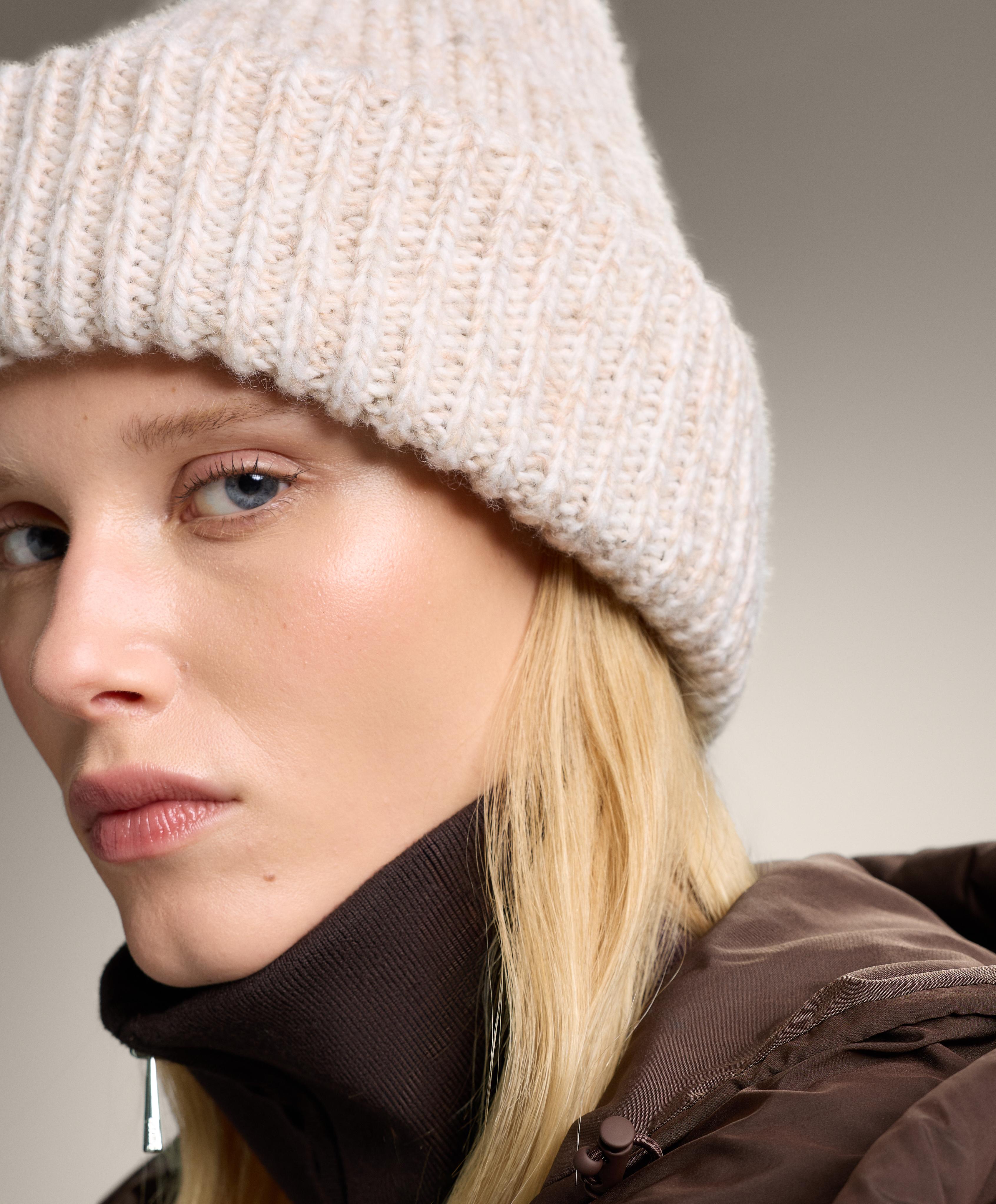 Oysho Вязаная шапка в крапинку, светло-бежевый