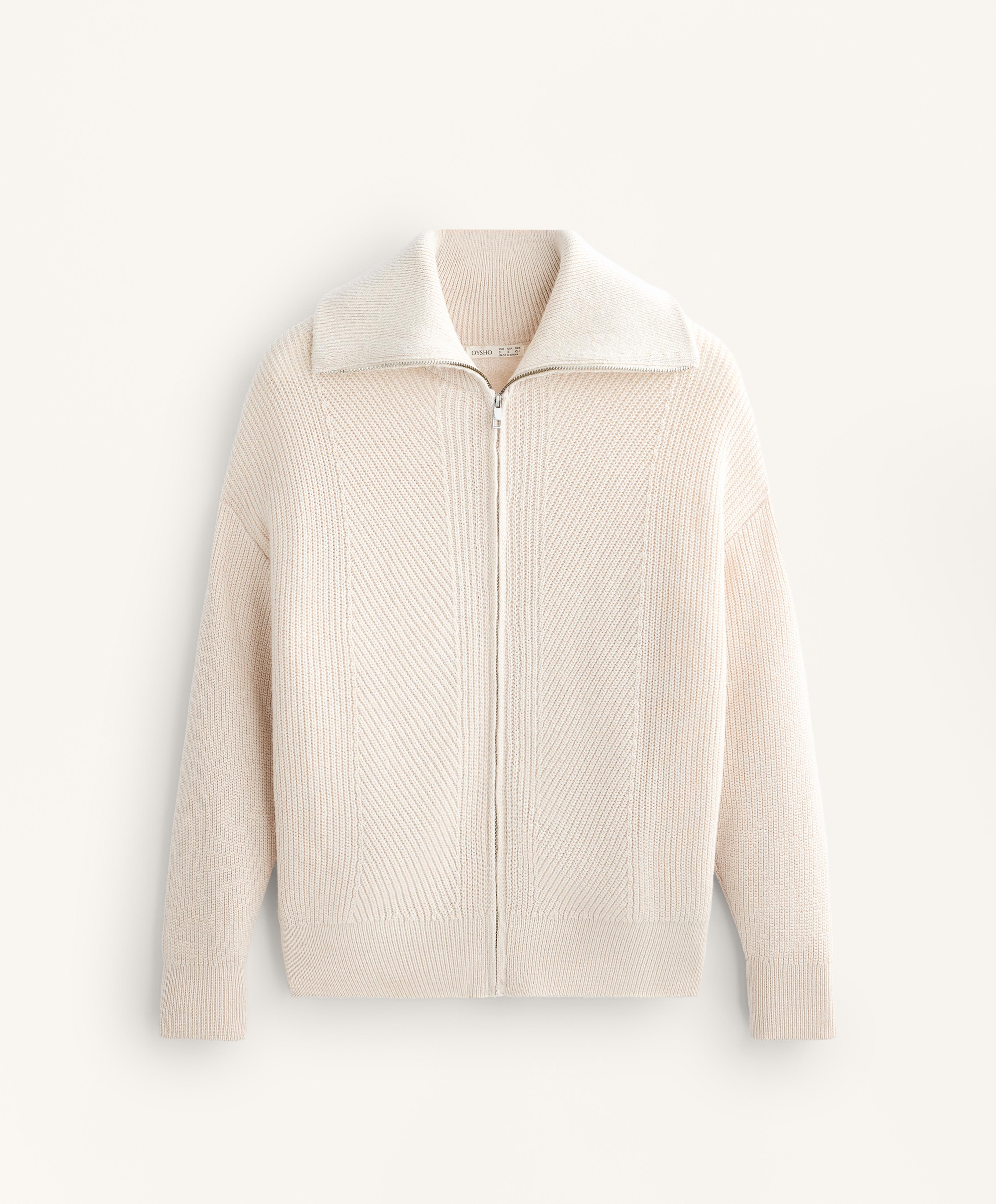 Oysho Вязаная толстовка с отложным воротником, экрю