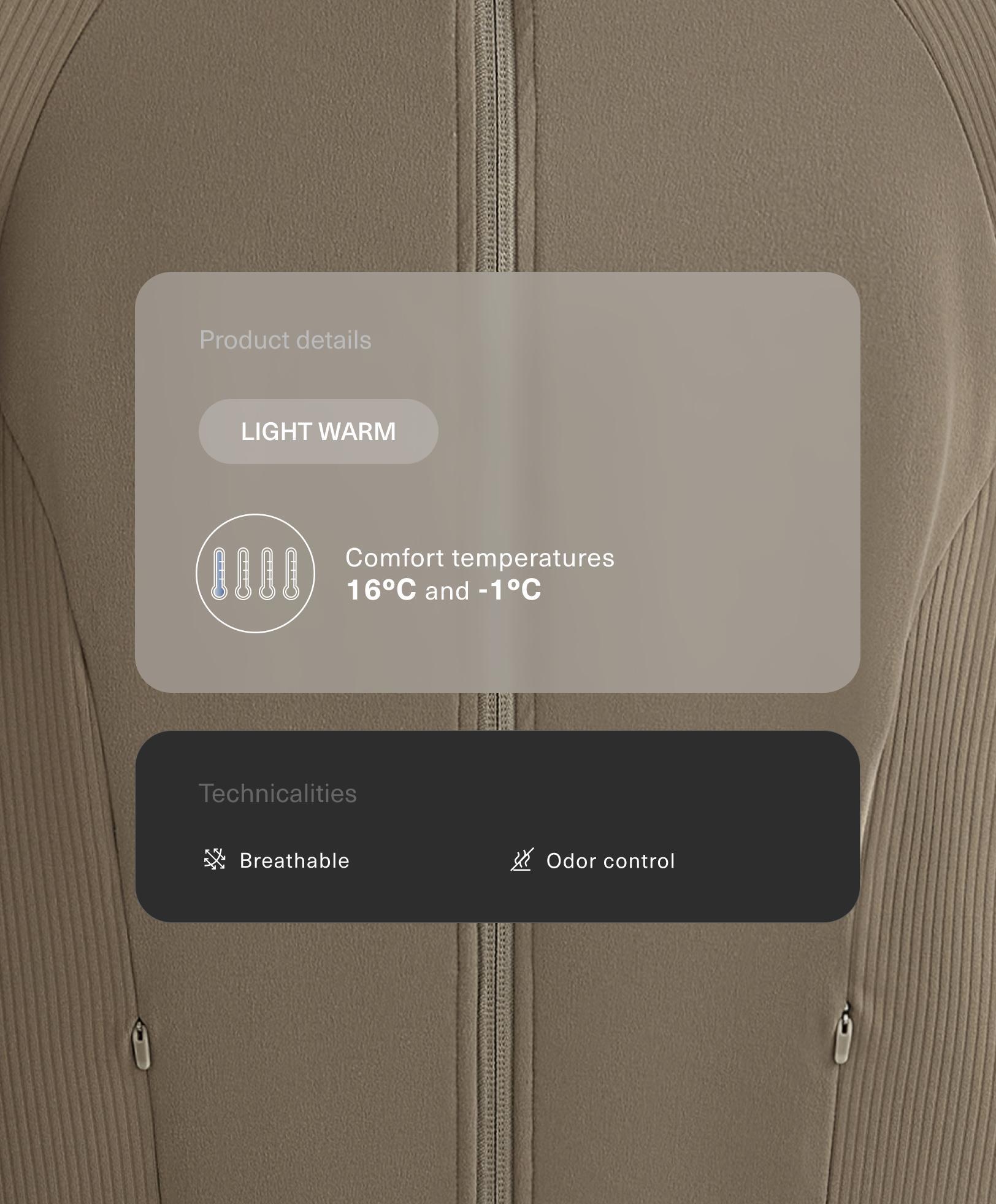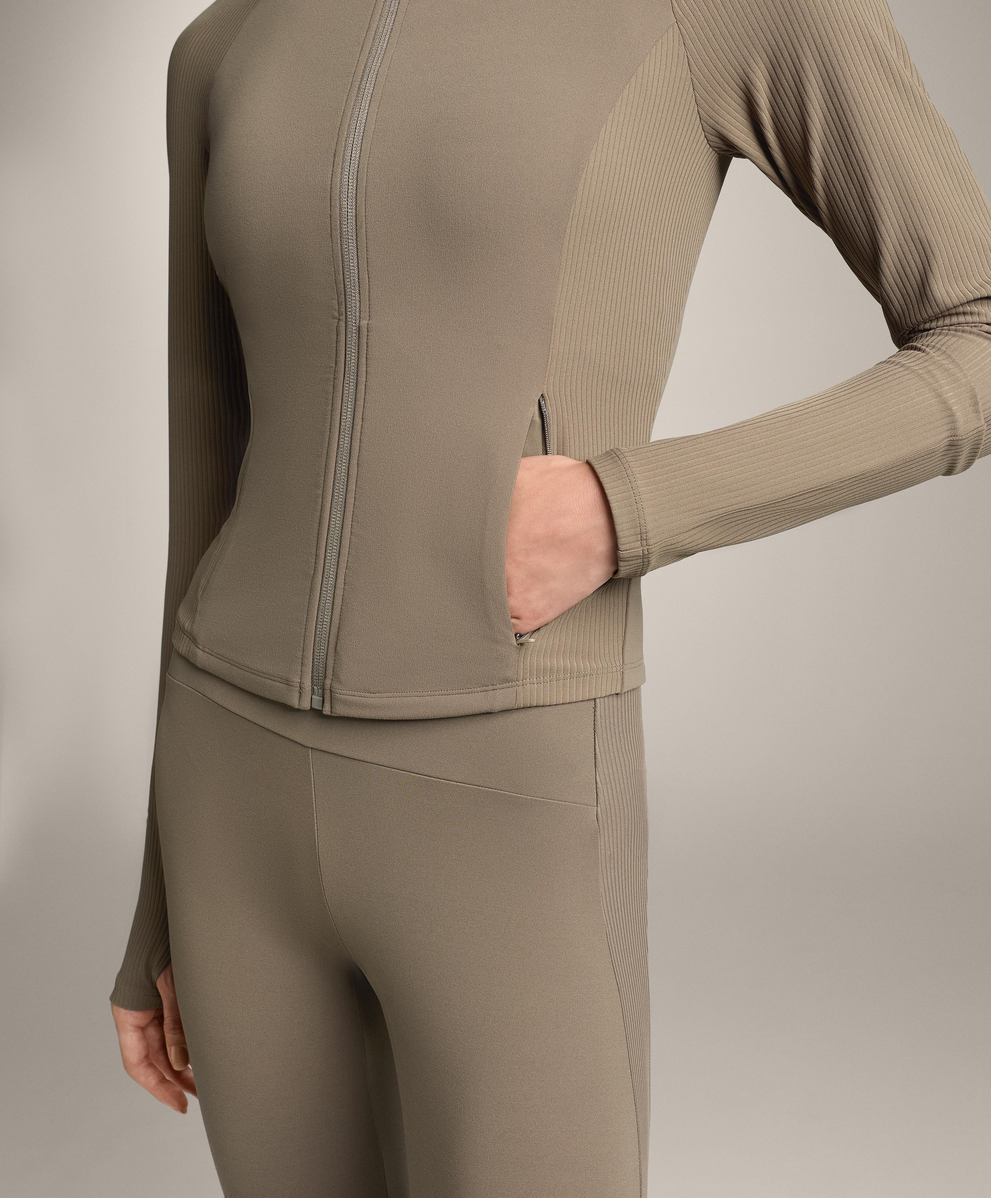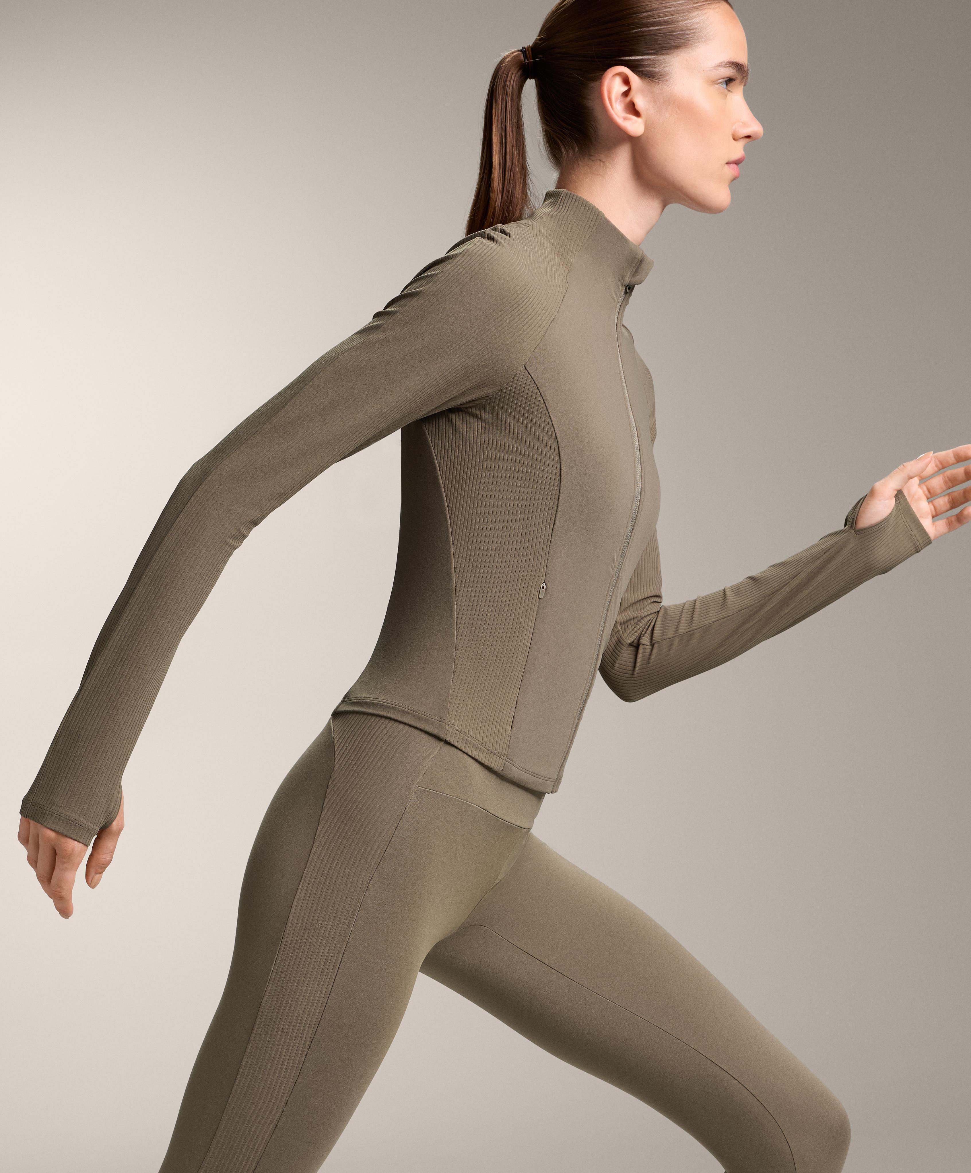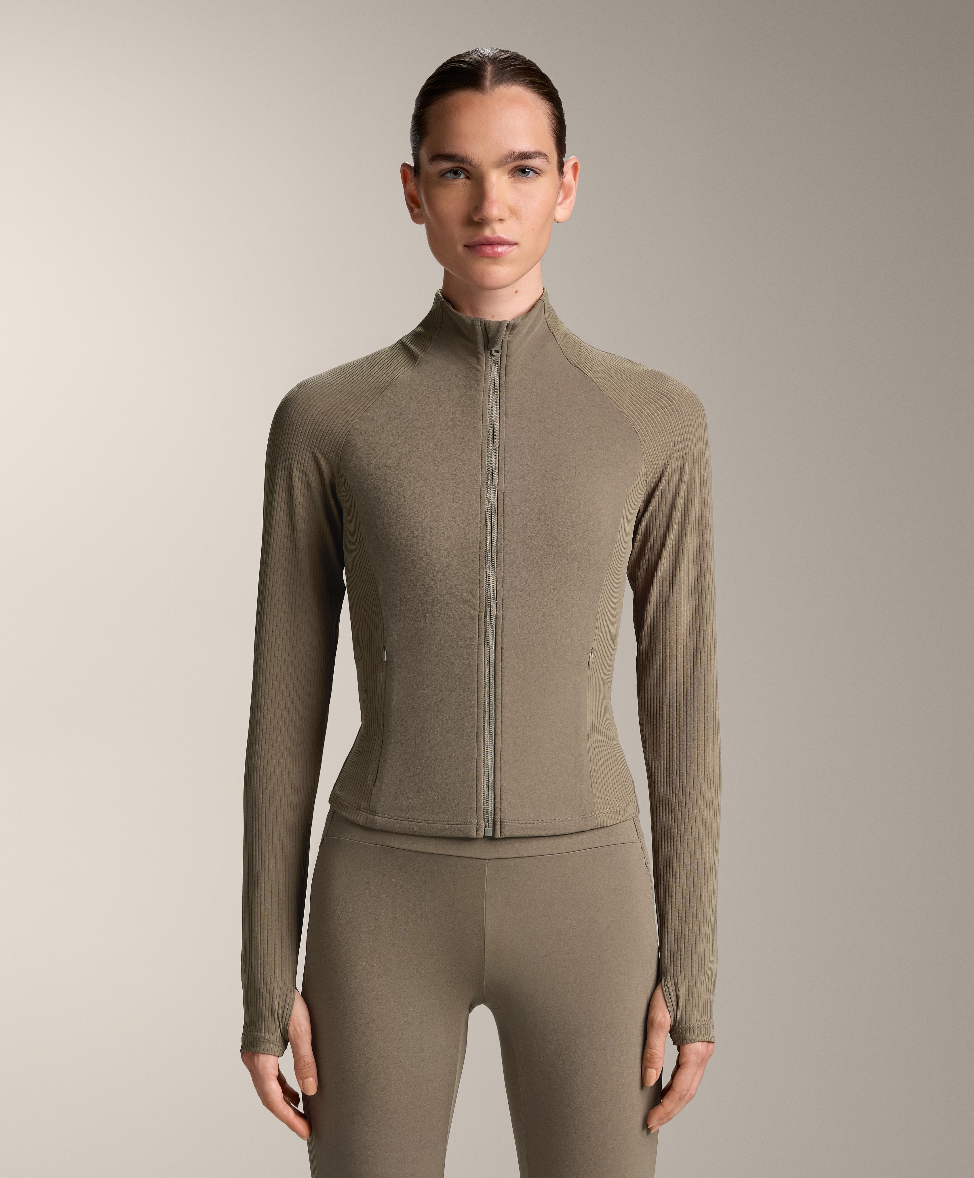 Высокотехнологичная куртка с длинными рукавами и застежкой-молнией. Боковые карманы на молнии. Воздухопроницаемая ткань с дезодорирующими свойствами. Детали в рубчик на рукавах и по бокам.