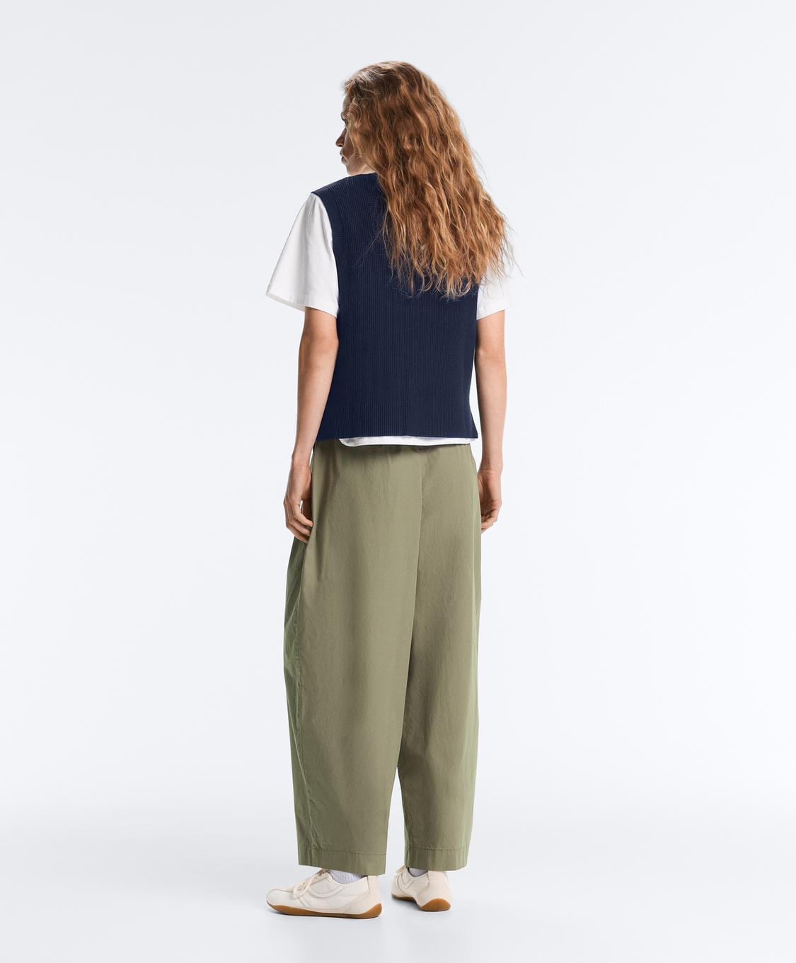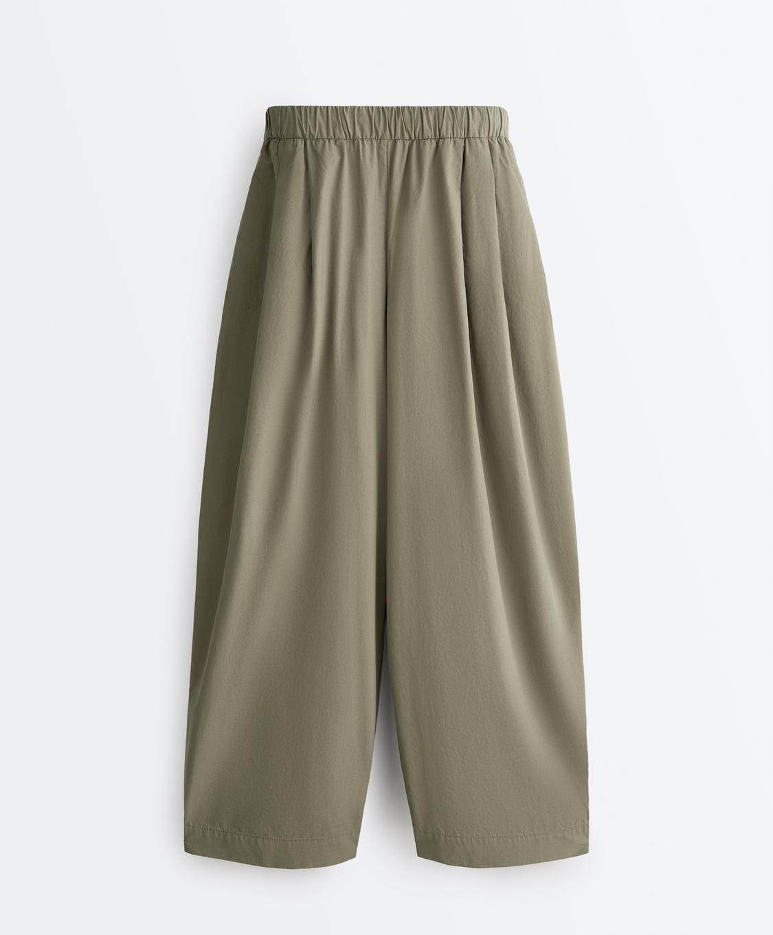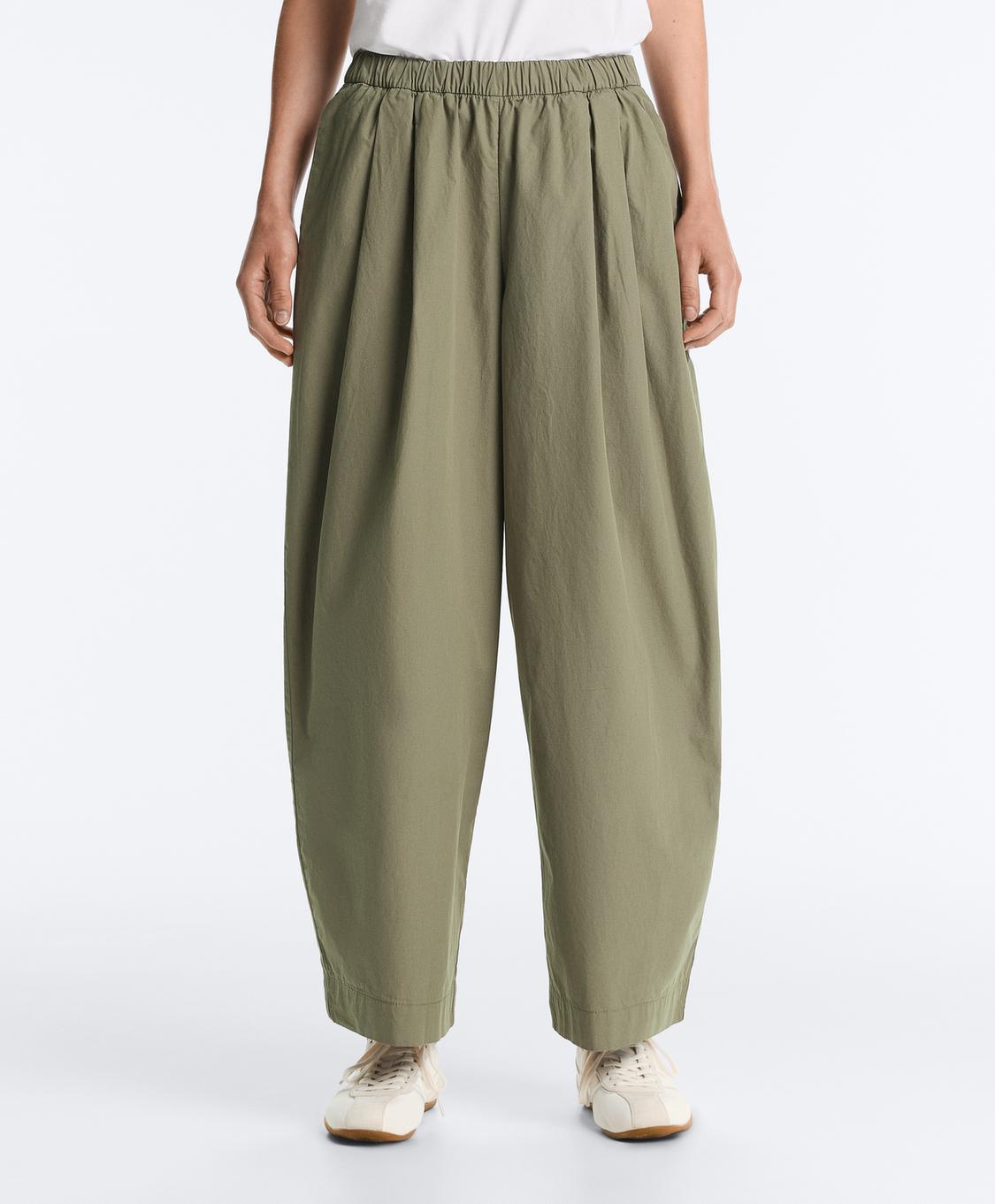 Oysho Зауженные брюки из 100% хлопка со складками, светлый хаки