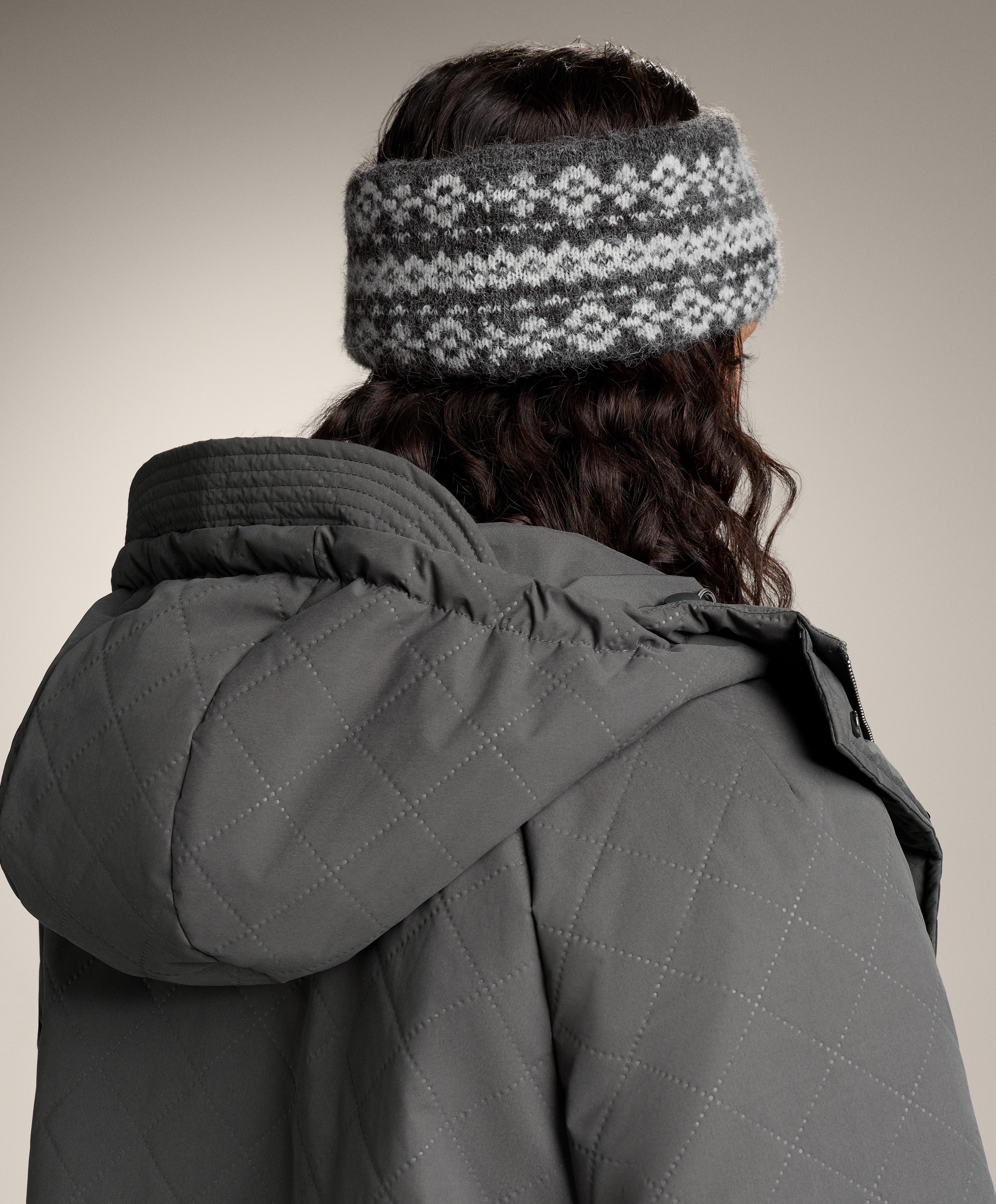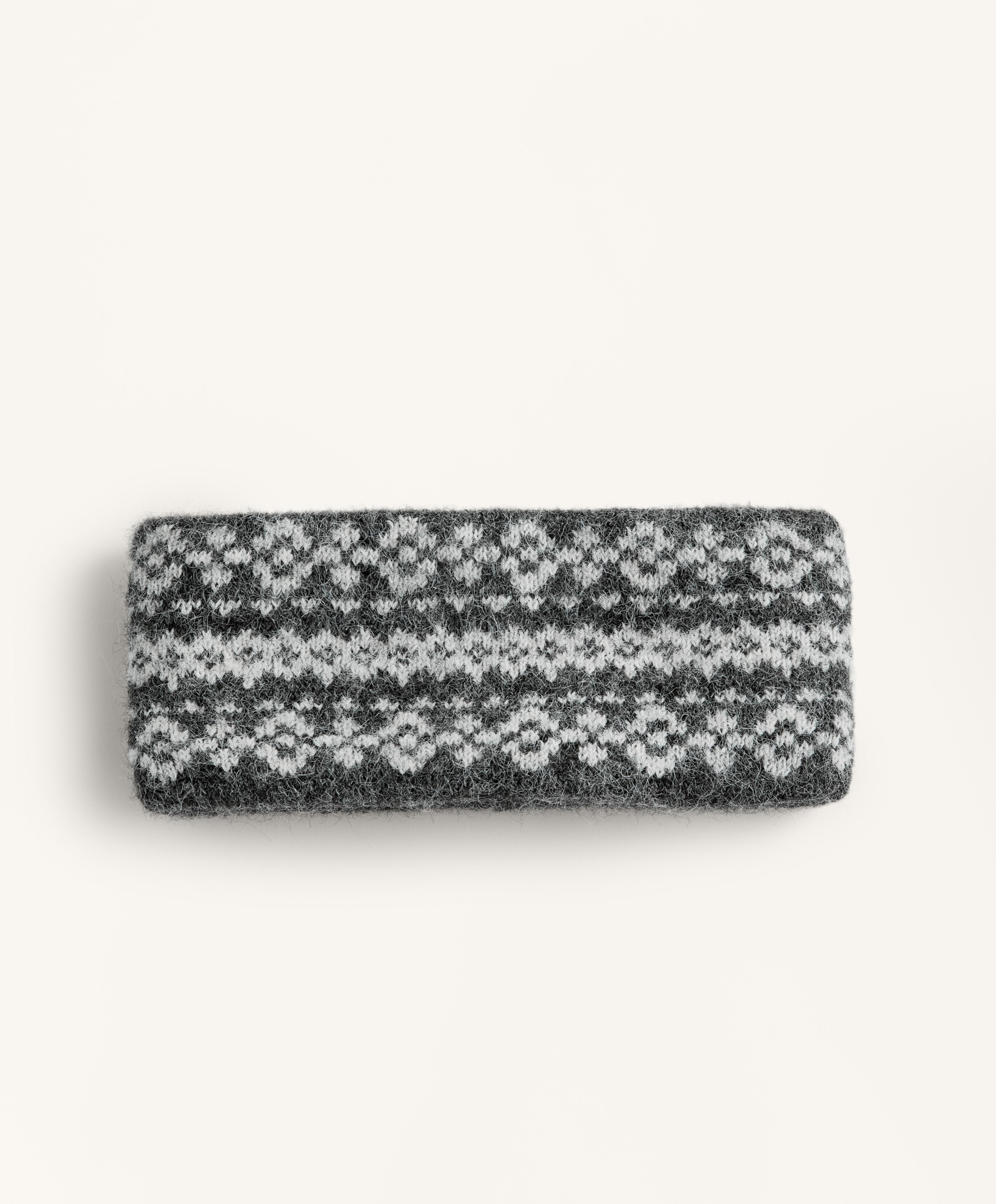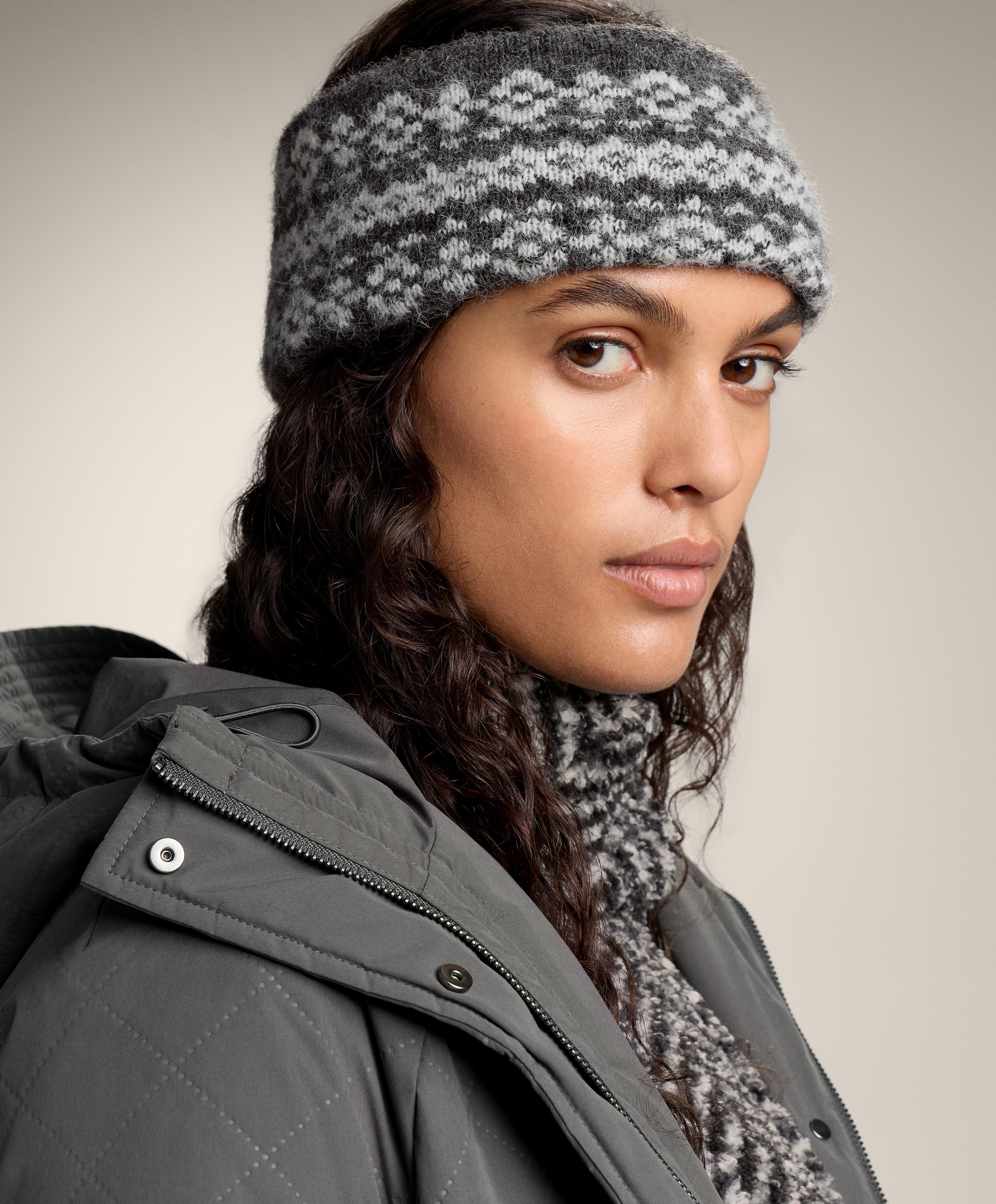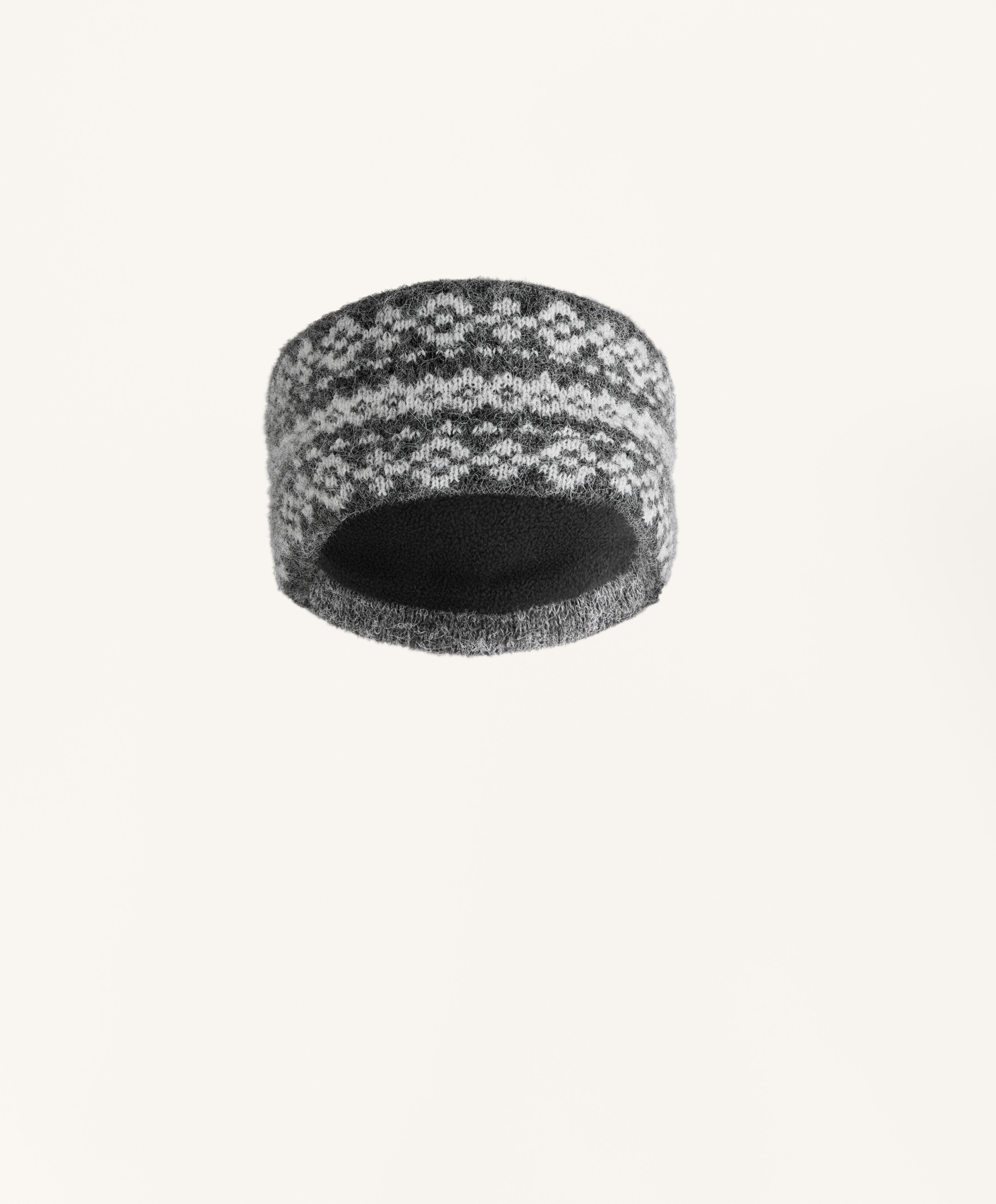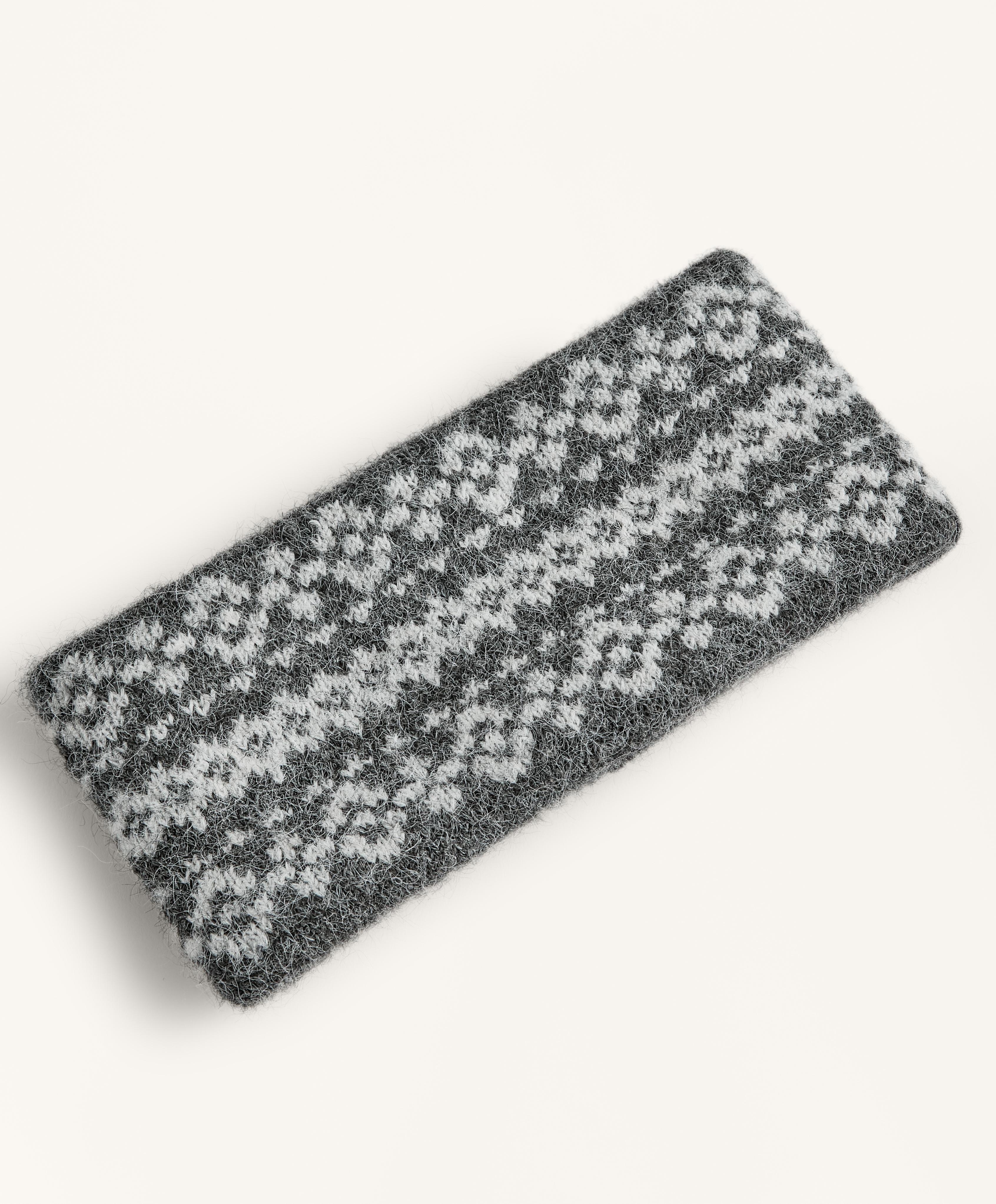 Широкая повязка на голову с жаккардовым принтом и теплой на ощупь внутренней стороной.