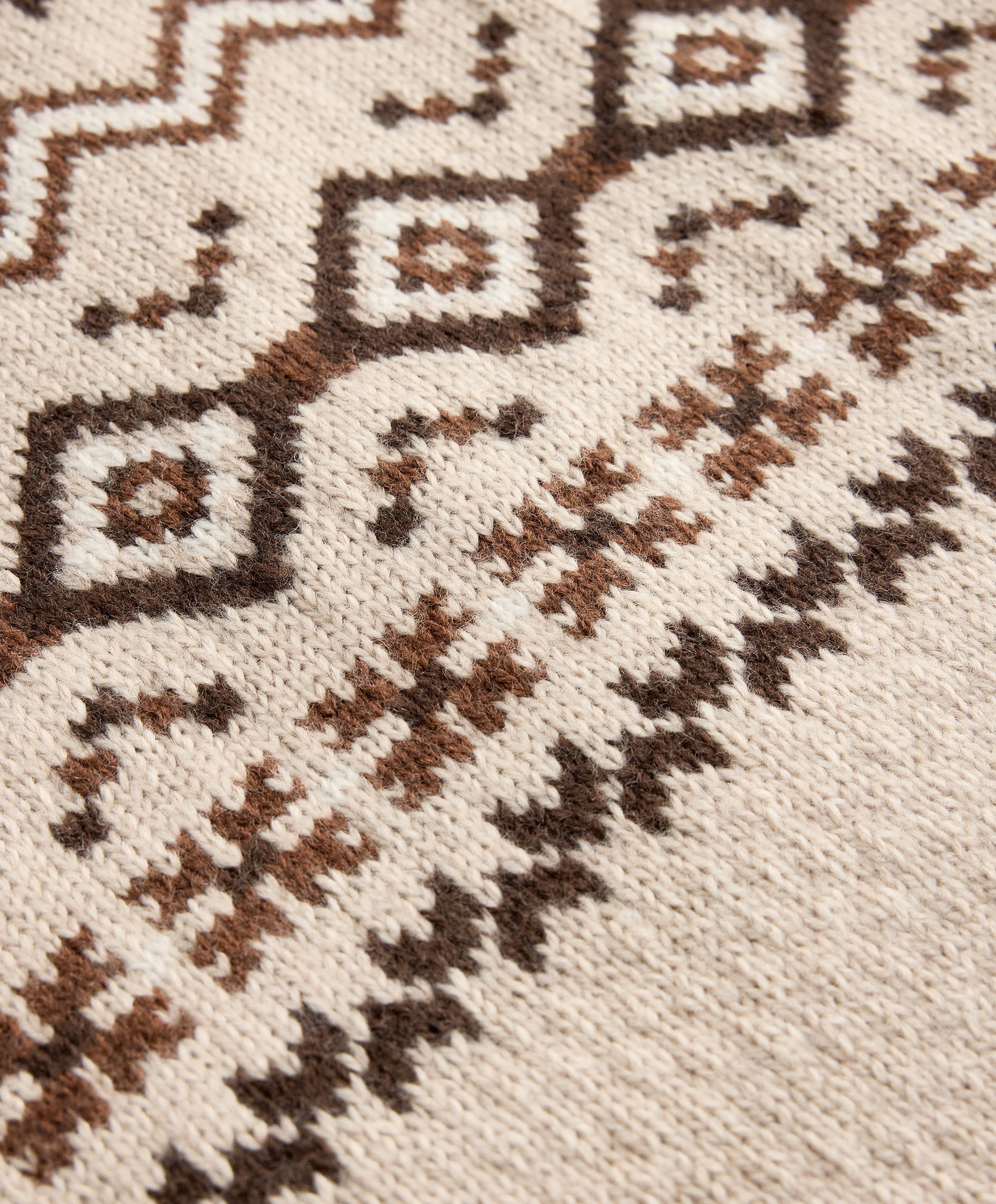 Oysho Жаккардовый трикотажный джемпер с высоким воротом, 10% шерсть, каменный