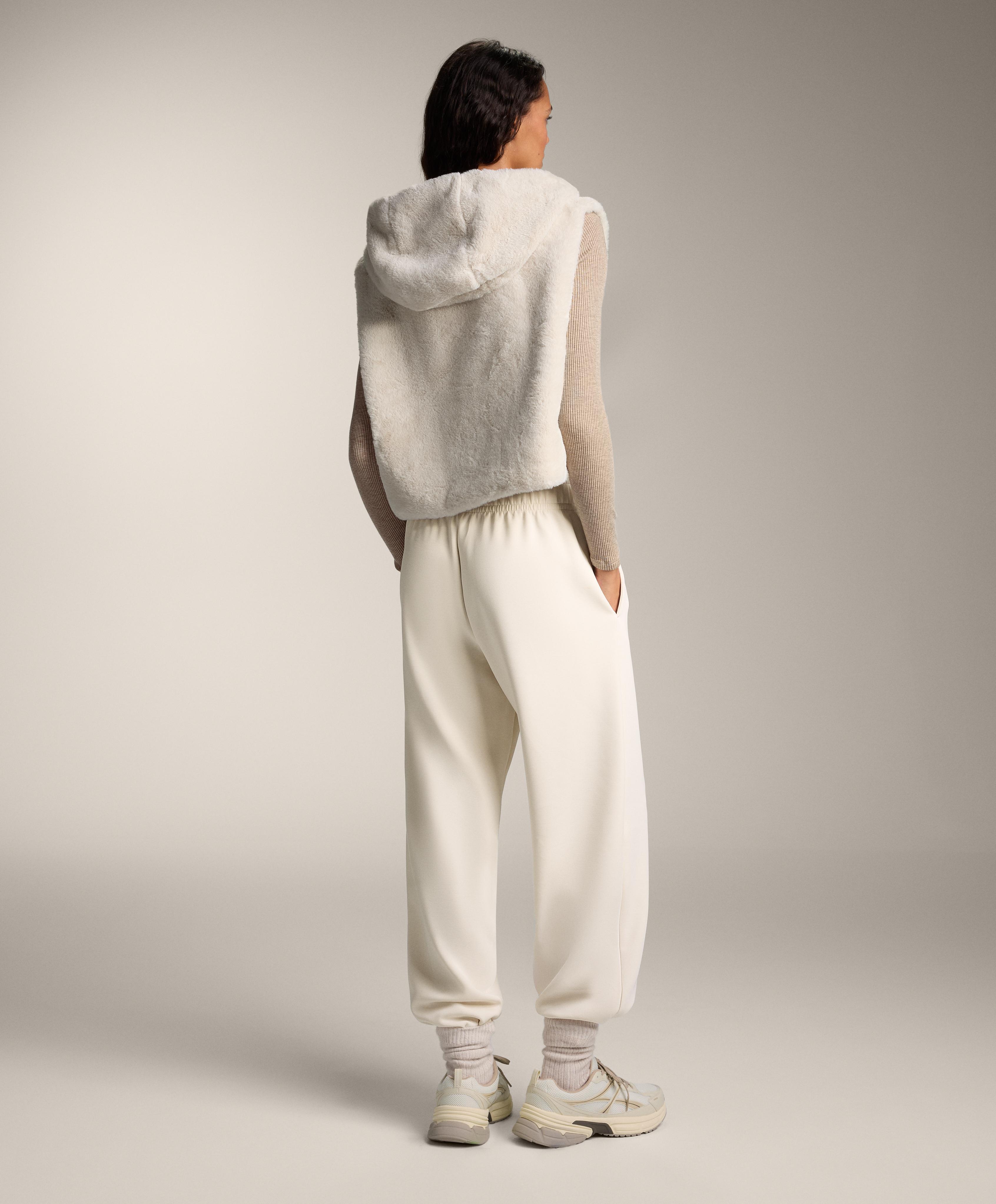 Oysho Жилет из искусственного меха с капюшоном, каменный
