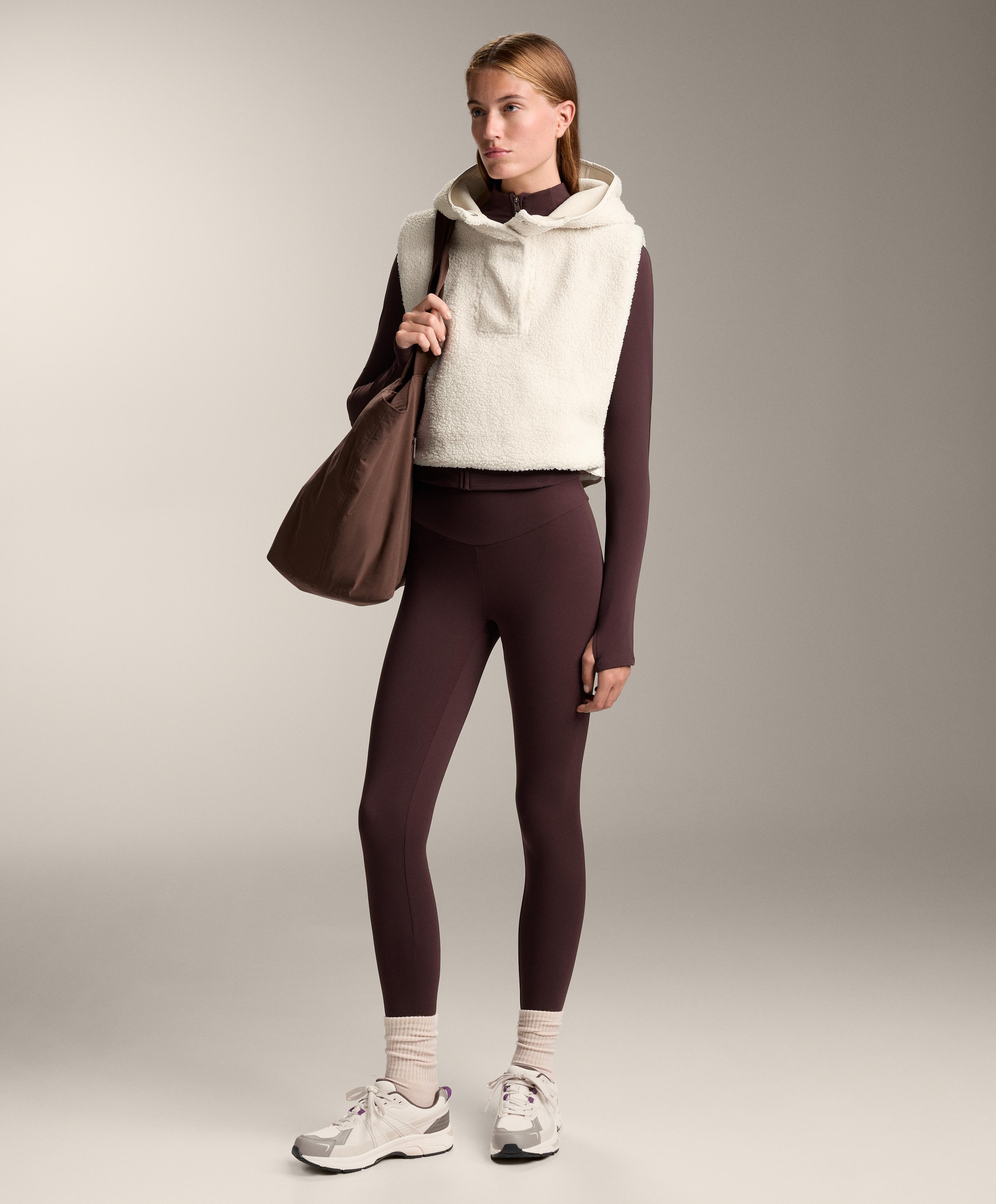 Oysho Жилет из искусственной овчины с капюшоном, экрю