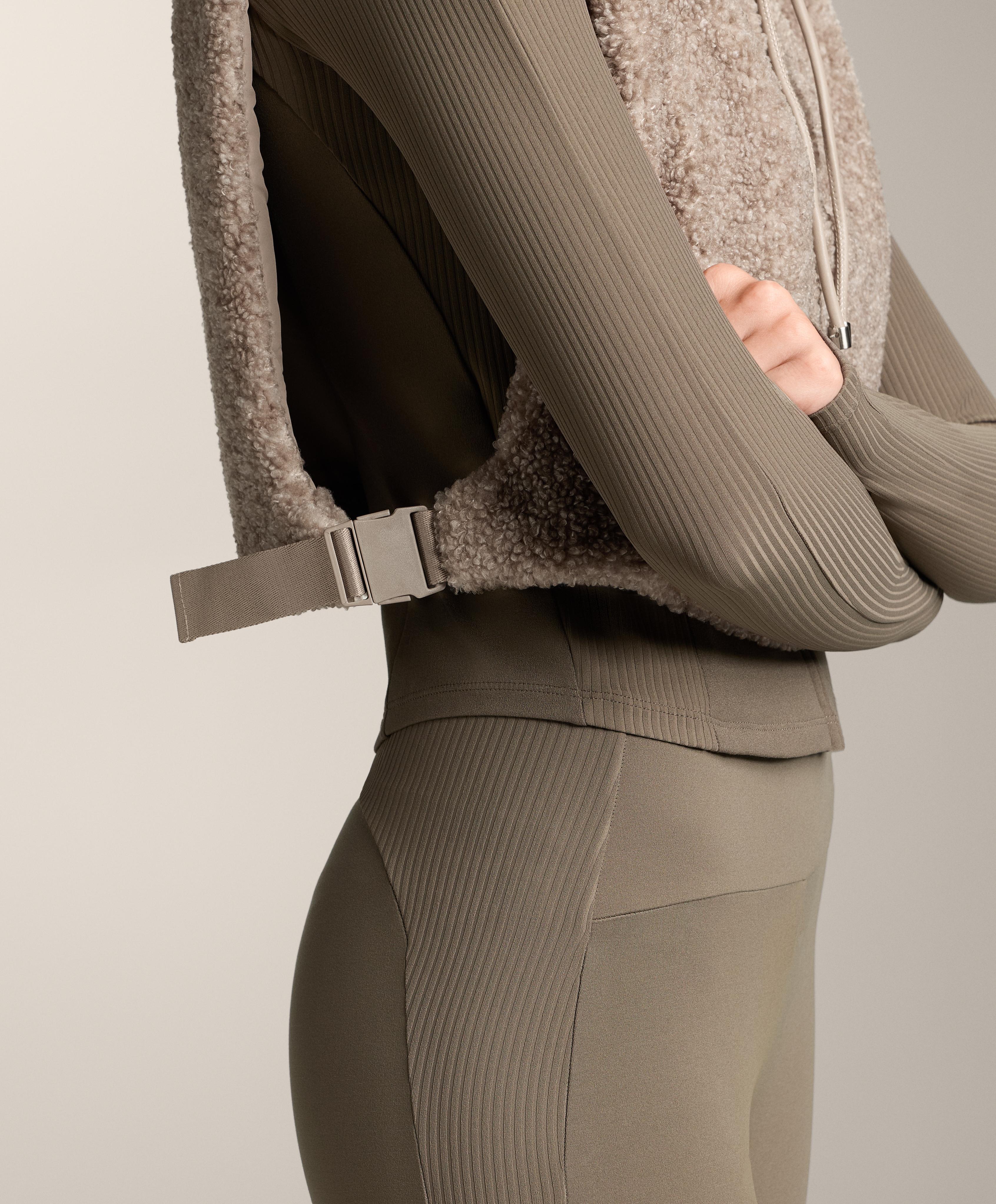 Oysho Жилет из овчины с капюшоном, серо-коричневый меланж