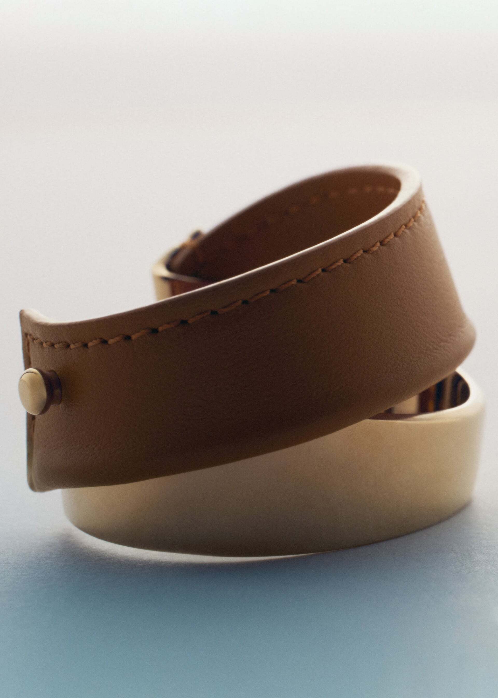 Браслет-манжета Ormé состоит из двух изогнутых деталей: металлической и кожаной. Ручная прострочка и заклёпки, скрепляющие две части, — это отсылка к ремесленному кожевенному делу.
