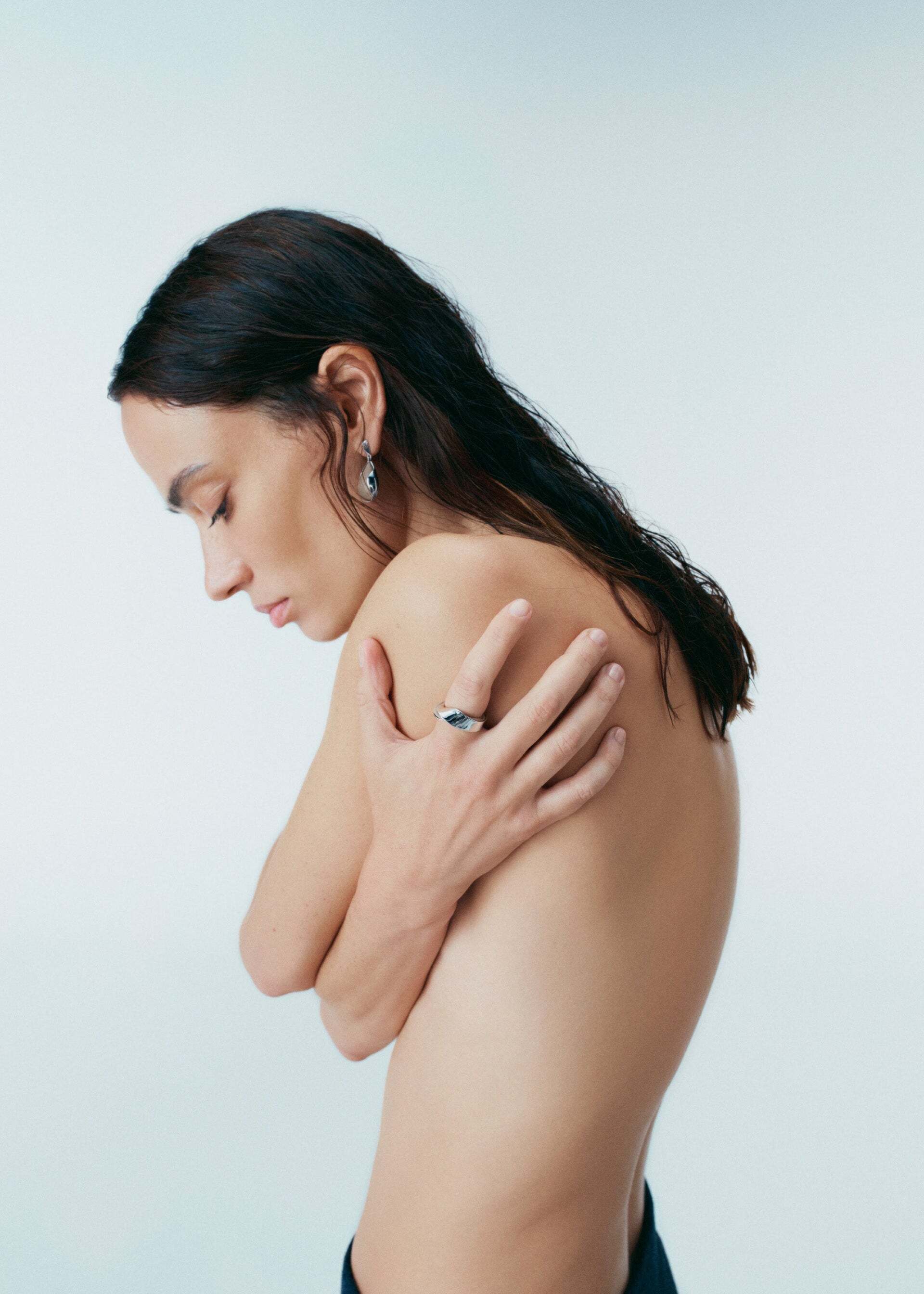 Серьги Ormé представляют собой каплю кожи, нежно обрамленную металлом.