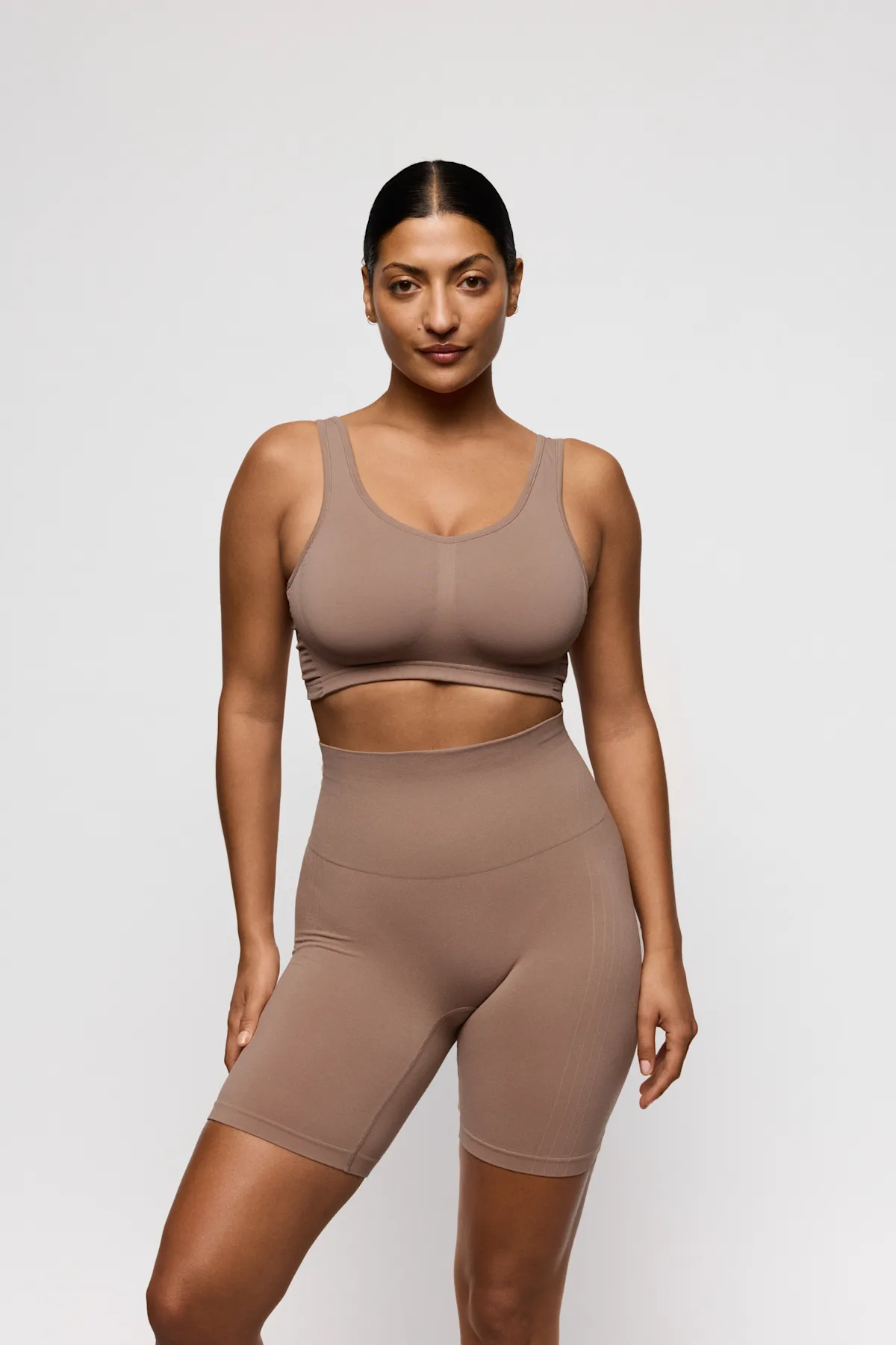 - Насладитесь комфортом бюстгальтера-топа без косточек с продуманными зонами коррекции формы и удобной застежкой на спине.