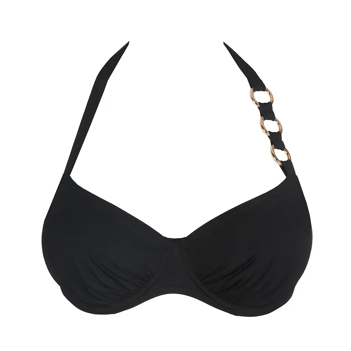 - Минималистский верх бикини на косточках с силуэтом полной чашки. Золотые кольца на бретельках придают ему крутой вид 2000-х.