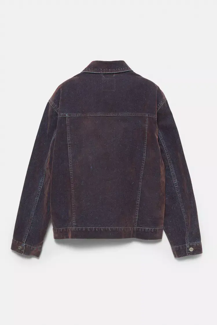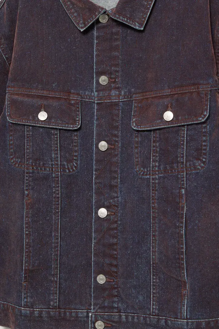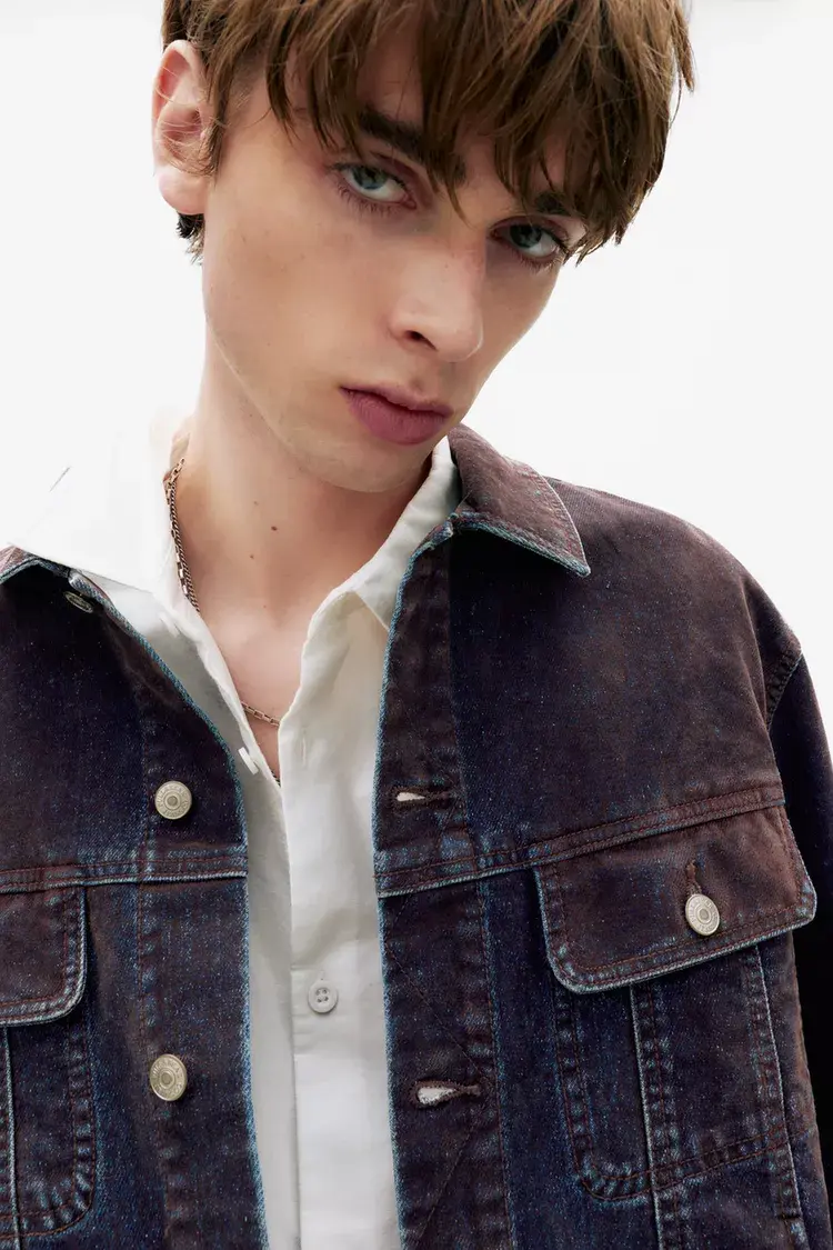 Джинсовая куртка с флокированной отделкой, передними карманами с клапанами, застёжкой на металлические пуговицы, декоративными швами и длинными рукавами. Идеальный образ.