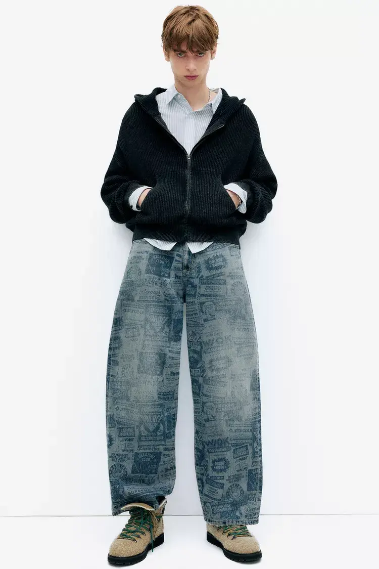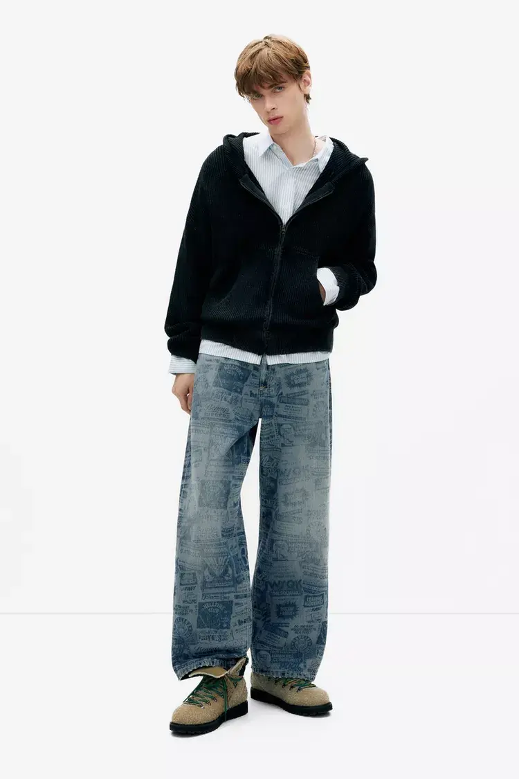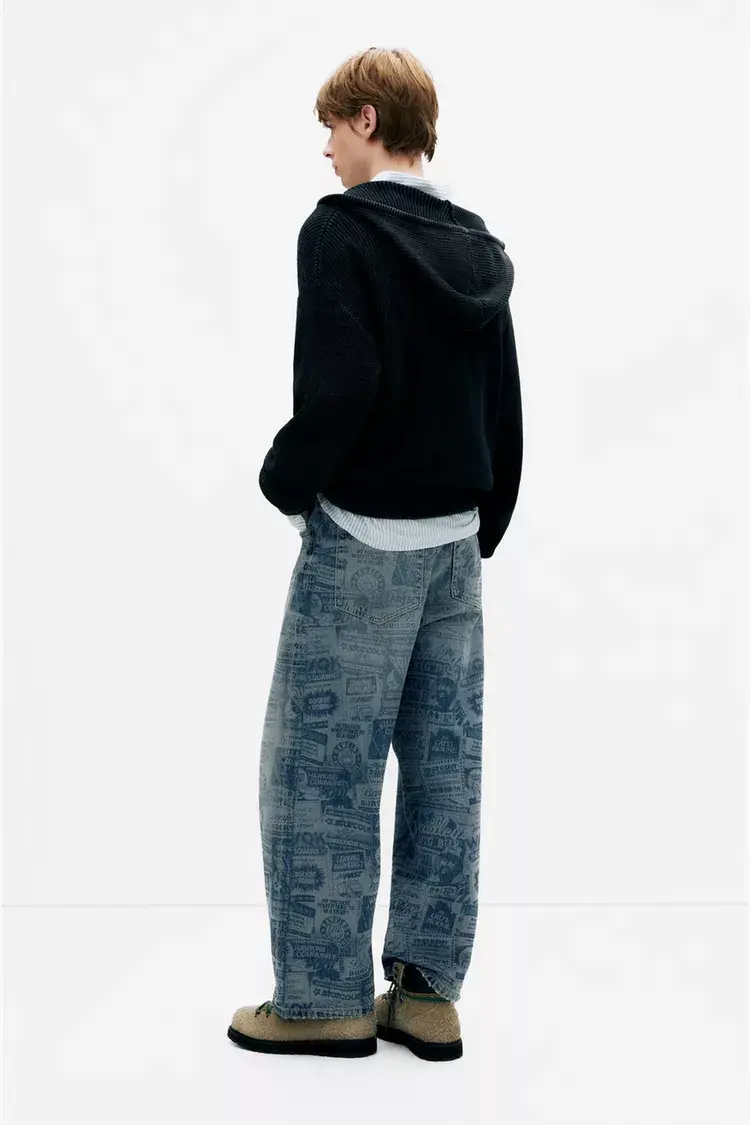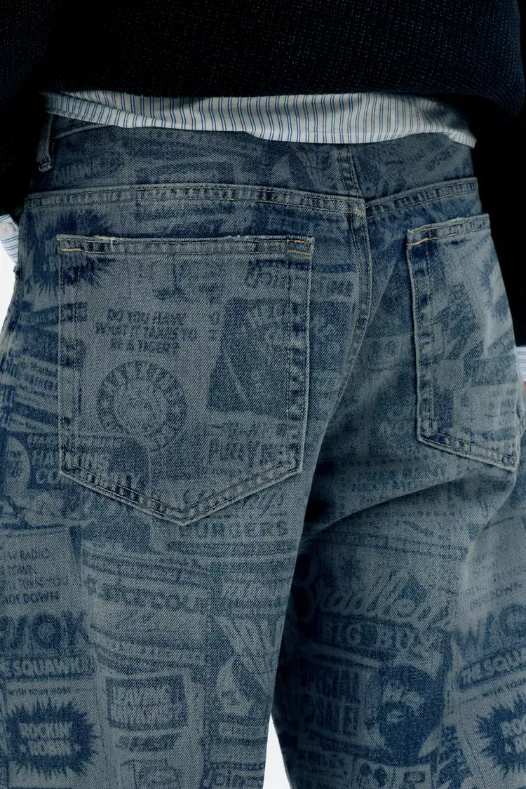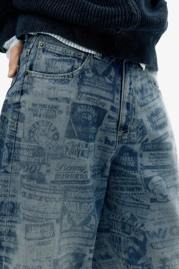 Джинсы широкого кроя из сериала «Очень странные дела» с принтом по всей поверхности, пятью карманами, шлевками для ремня и застежкой на пуговицу и молнию