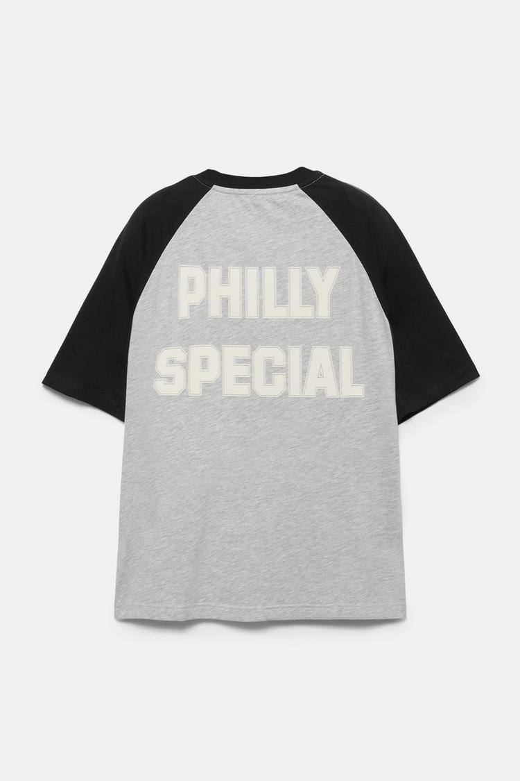 Футболка из смесовой хлопковой ткани с круглым вырезом, короткими рукавами, лицензирована NFL и украшена символикой команды Philadelphia Eagles.
