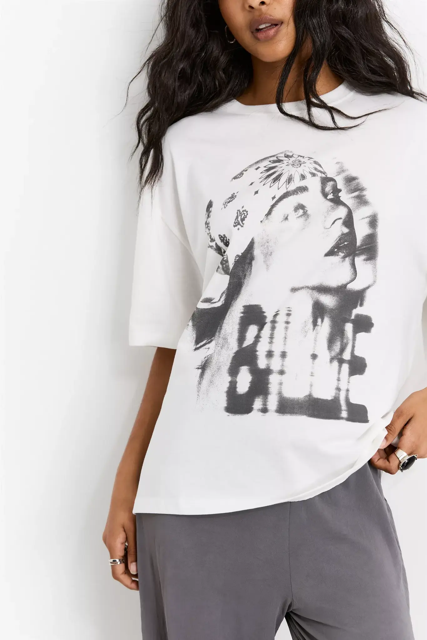 PULL&BEAR Футболка с принтом Billie Eilish, белый