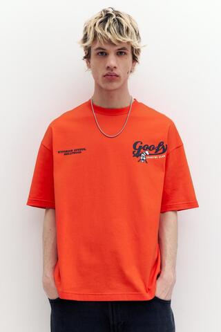 PULL&BEAR Футболка с принтом «Goofy», оранжевый