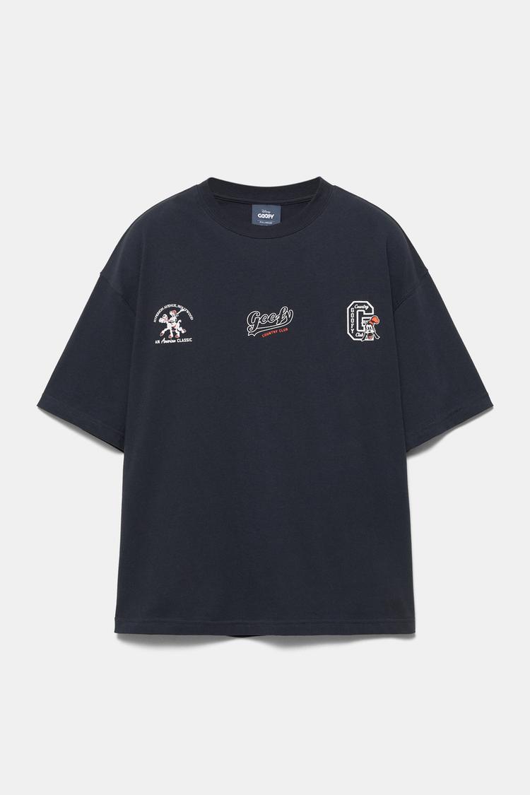 PULL&BEAR Футболка с принтом «Goofy», темно-синий