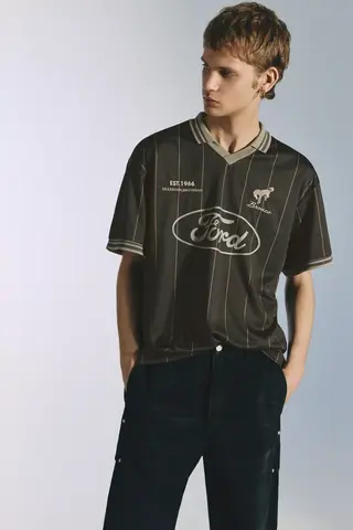 PULL&BEAR Футболка с символикой команды Ford, военно-морской