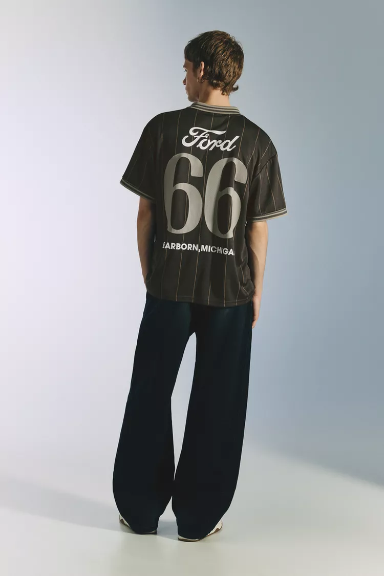 Футболка с номерным знаком Ford, с графическим рисунком спереди и сзади, V-образным вырезом с ребристой отделкой и короткими рукавами.