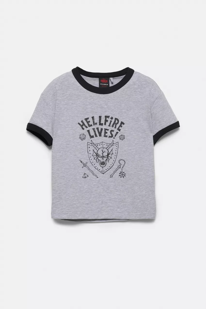 PULL&BEAR Футболка "Stranger Things ", серый меланж
