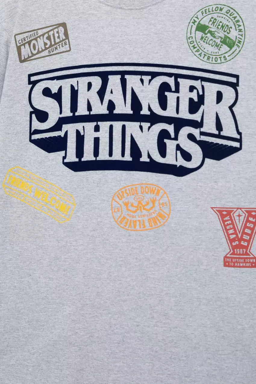 PULL&BEAR Футболка в полоску "Stranger Things" серый меланж